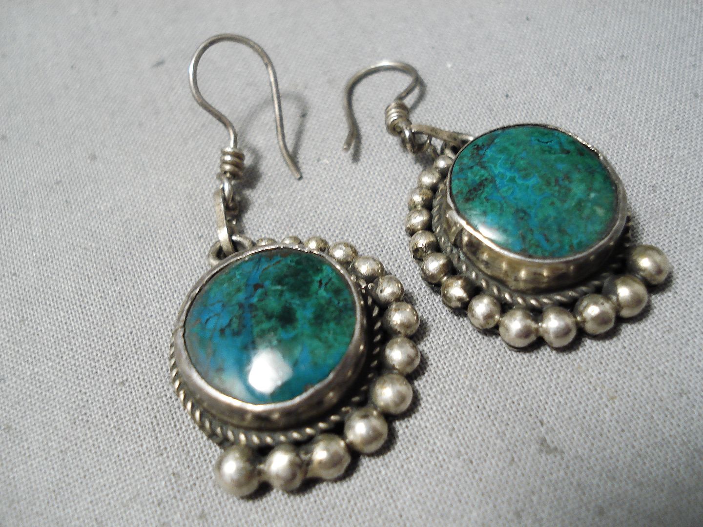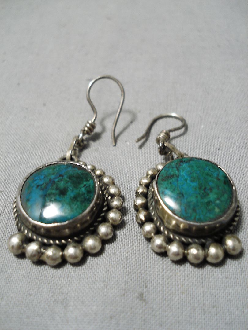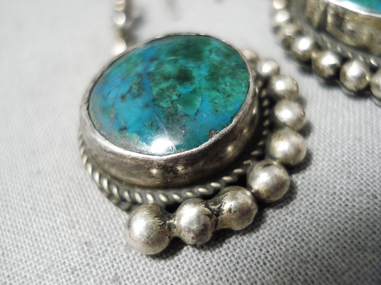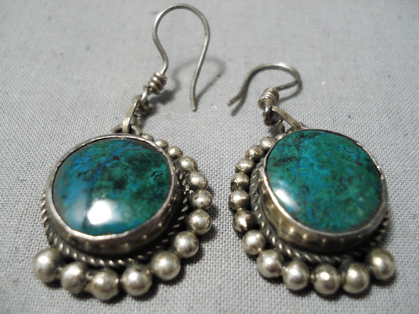 Fabulous Vintage Native American Navajo Turquoise Sterling Silver Earrings Old