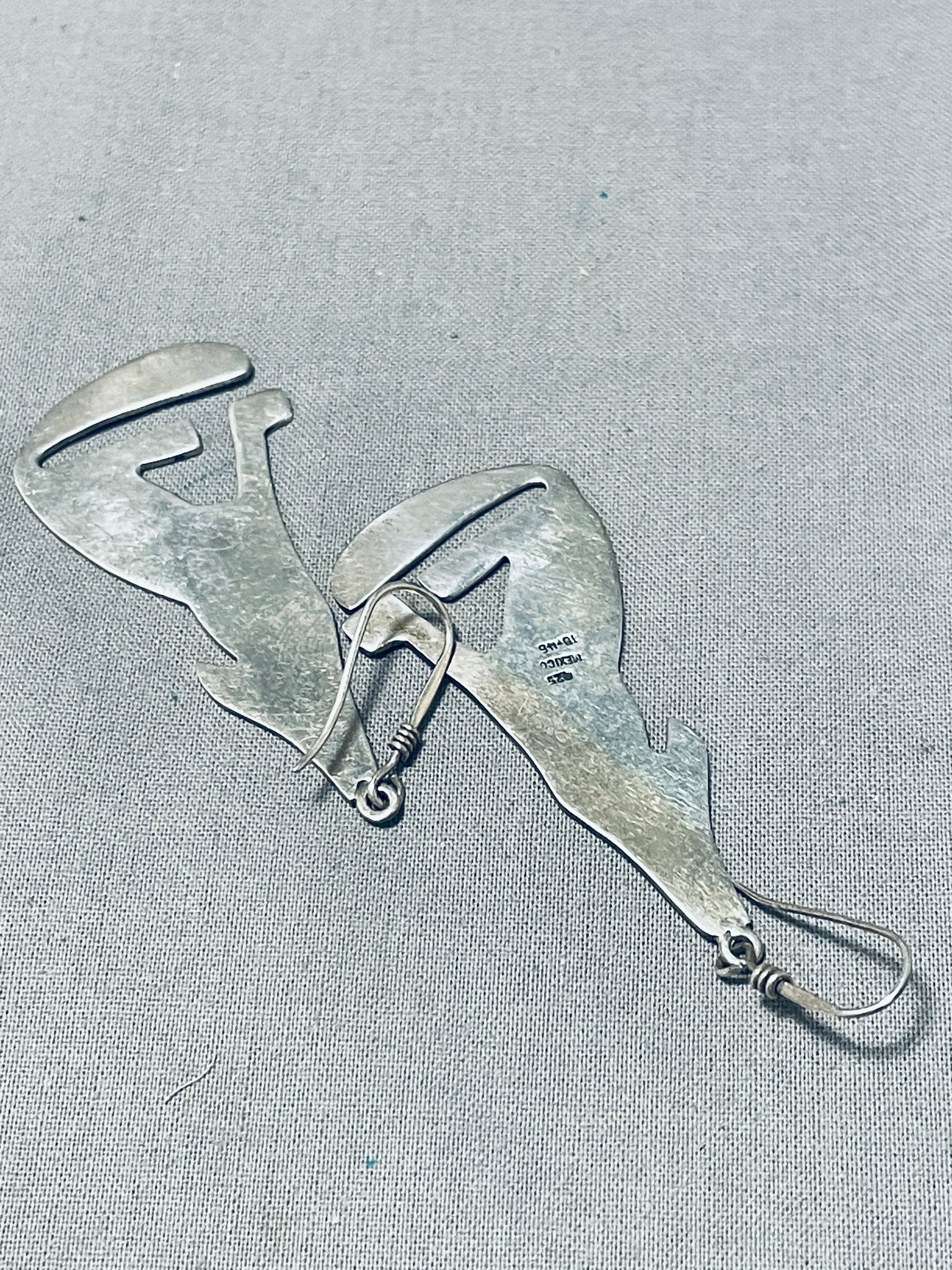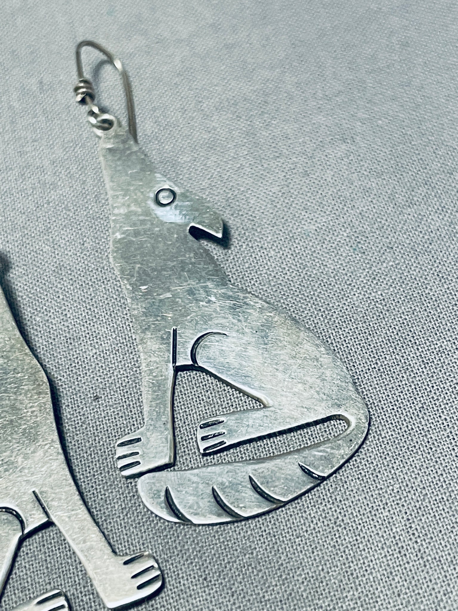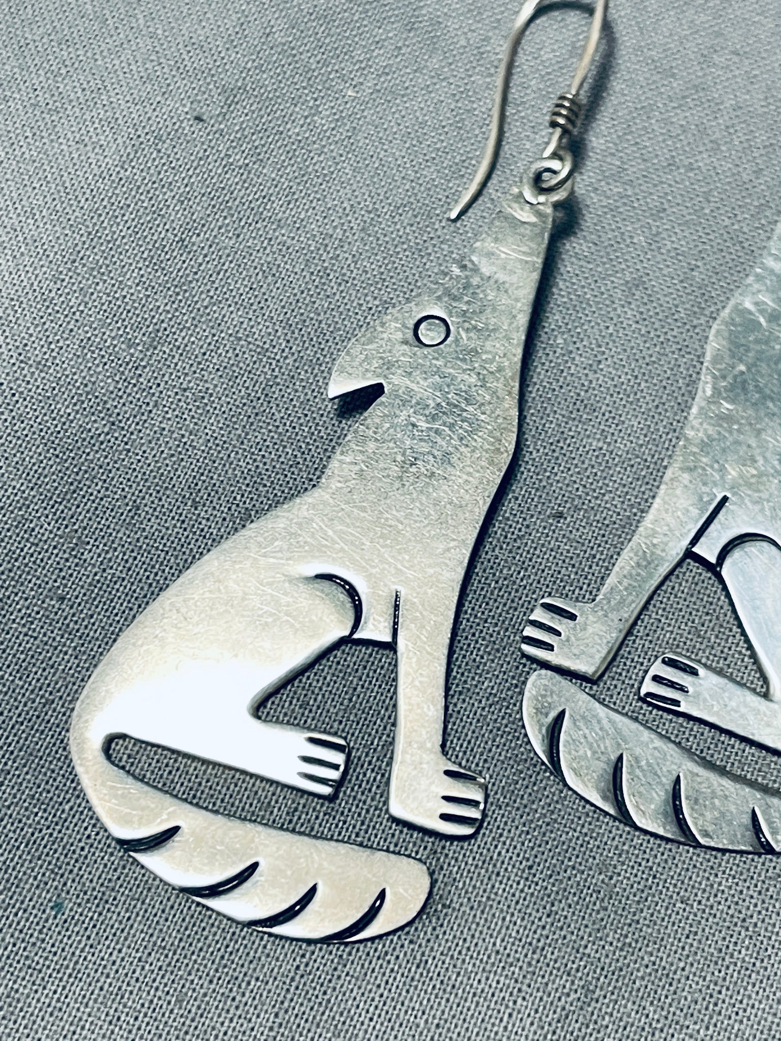 Fabulous Vintage Navajo/ Mexican Sterling Silver Coyote Earrings