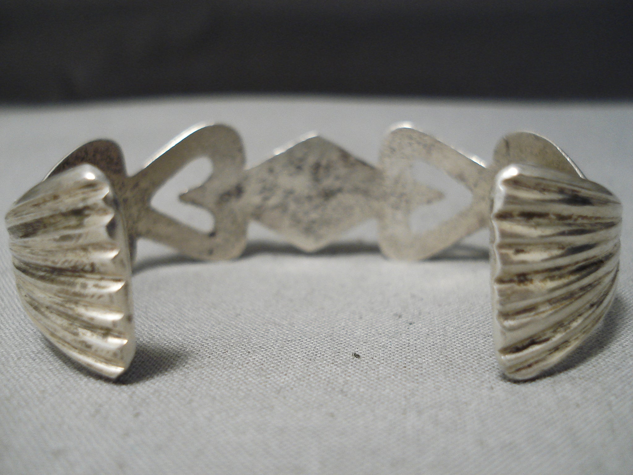 Fabulous Vintage Navajo Sterling Silver Bracelet Hearts Native American Old