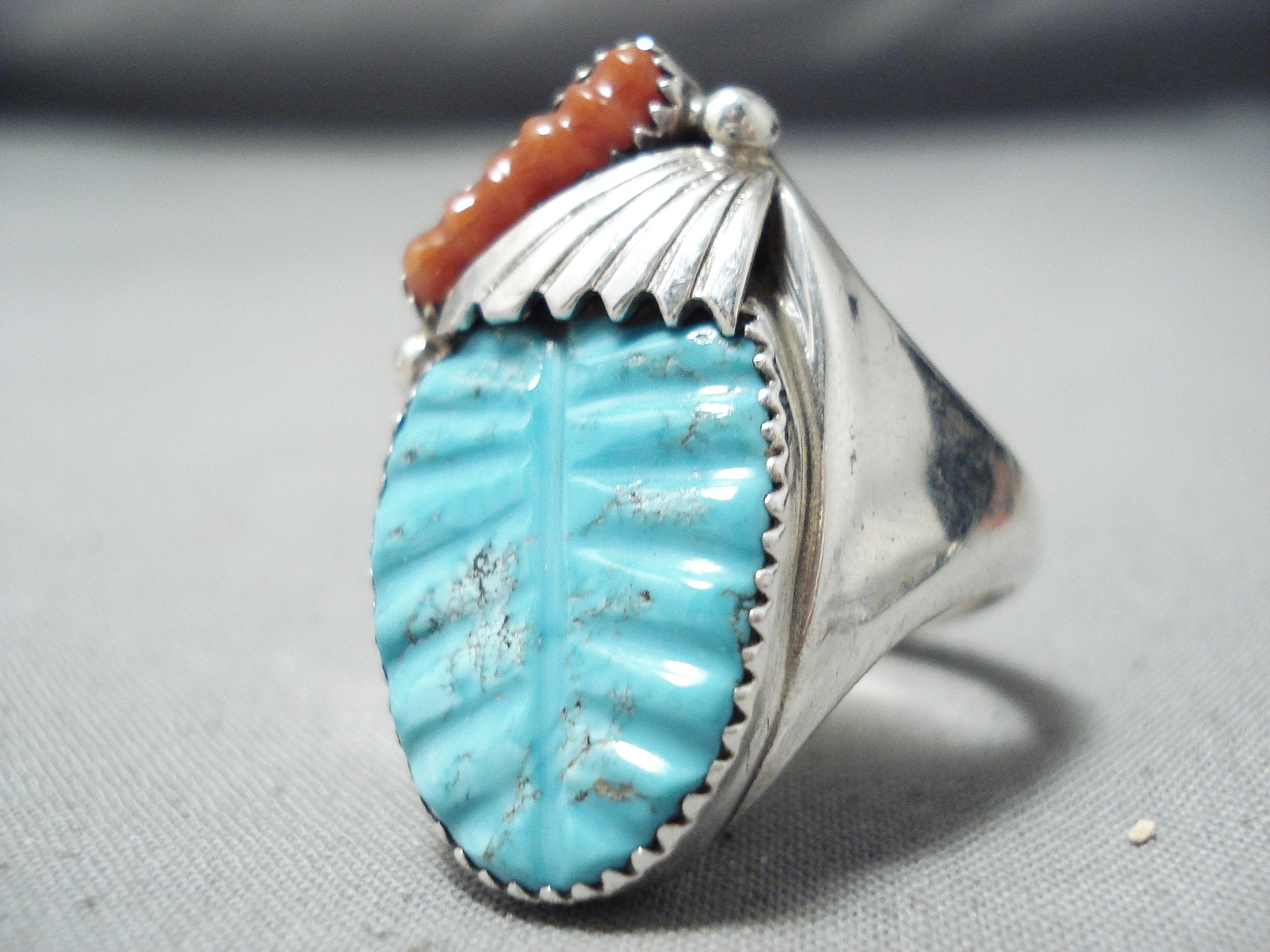 Fabulous Zuni Turquoise Coral Sterling Silver Ring Native American