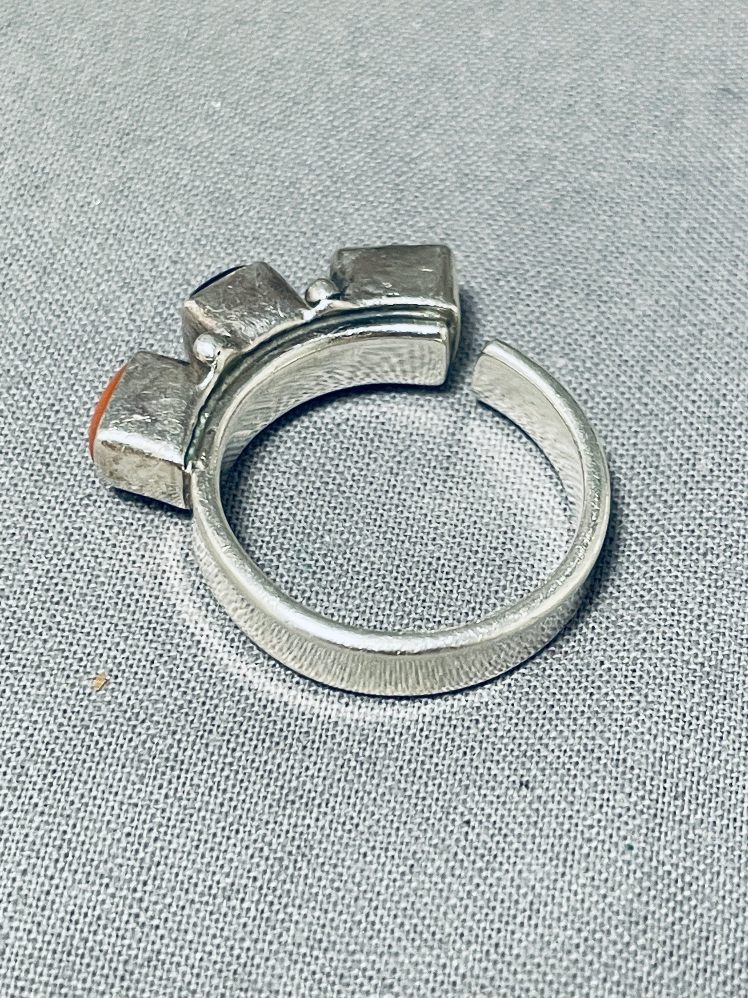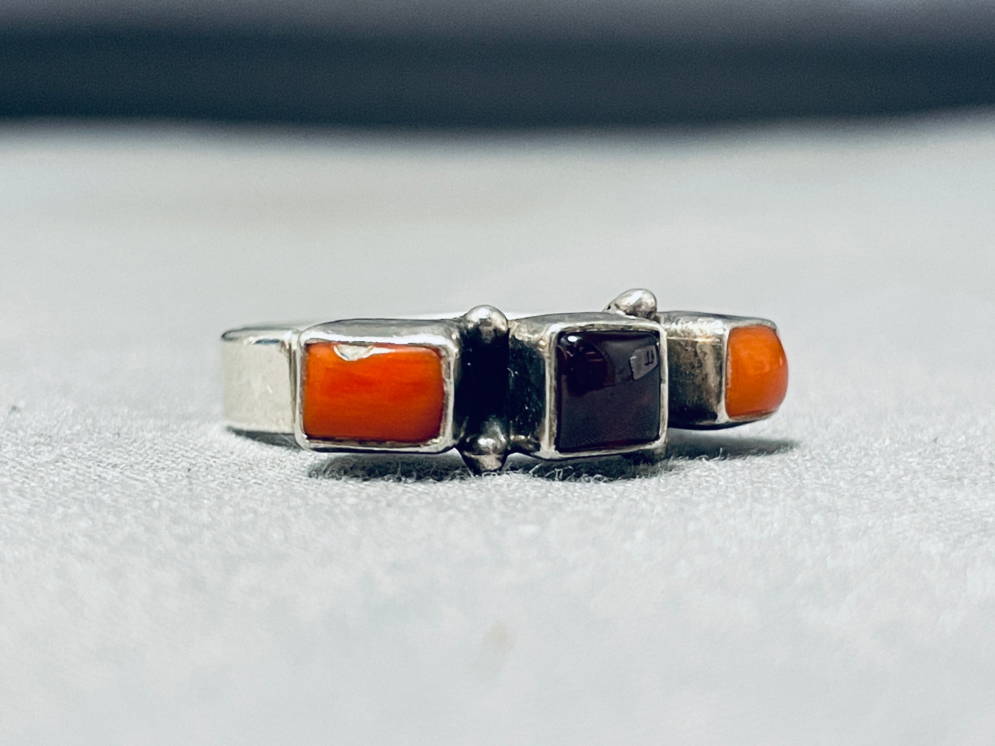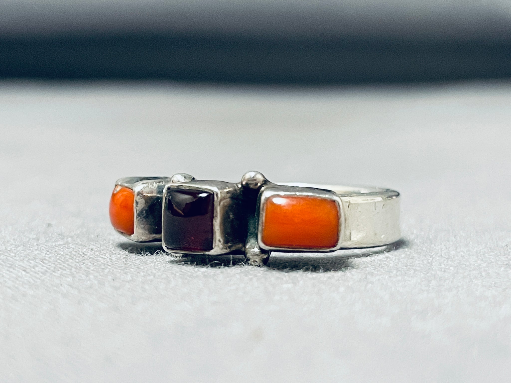 Fantastic Native American Navajo Coral & Garnet Sterling Silver Ring
