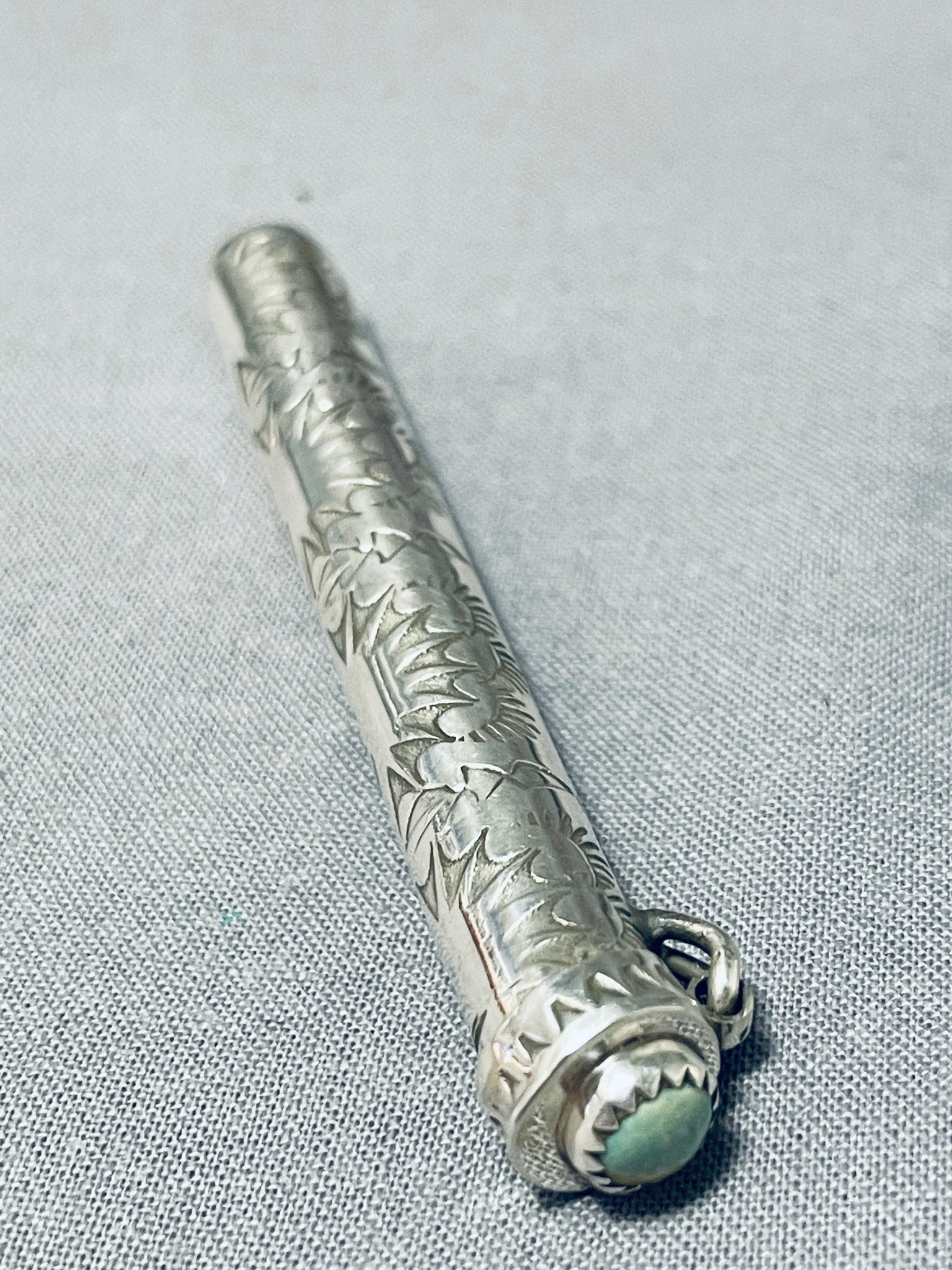 Fantastic Native American Navajo Royston Turquoise Sterling Silver Toothpick Holder Signed