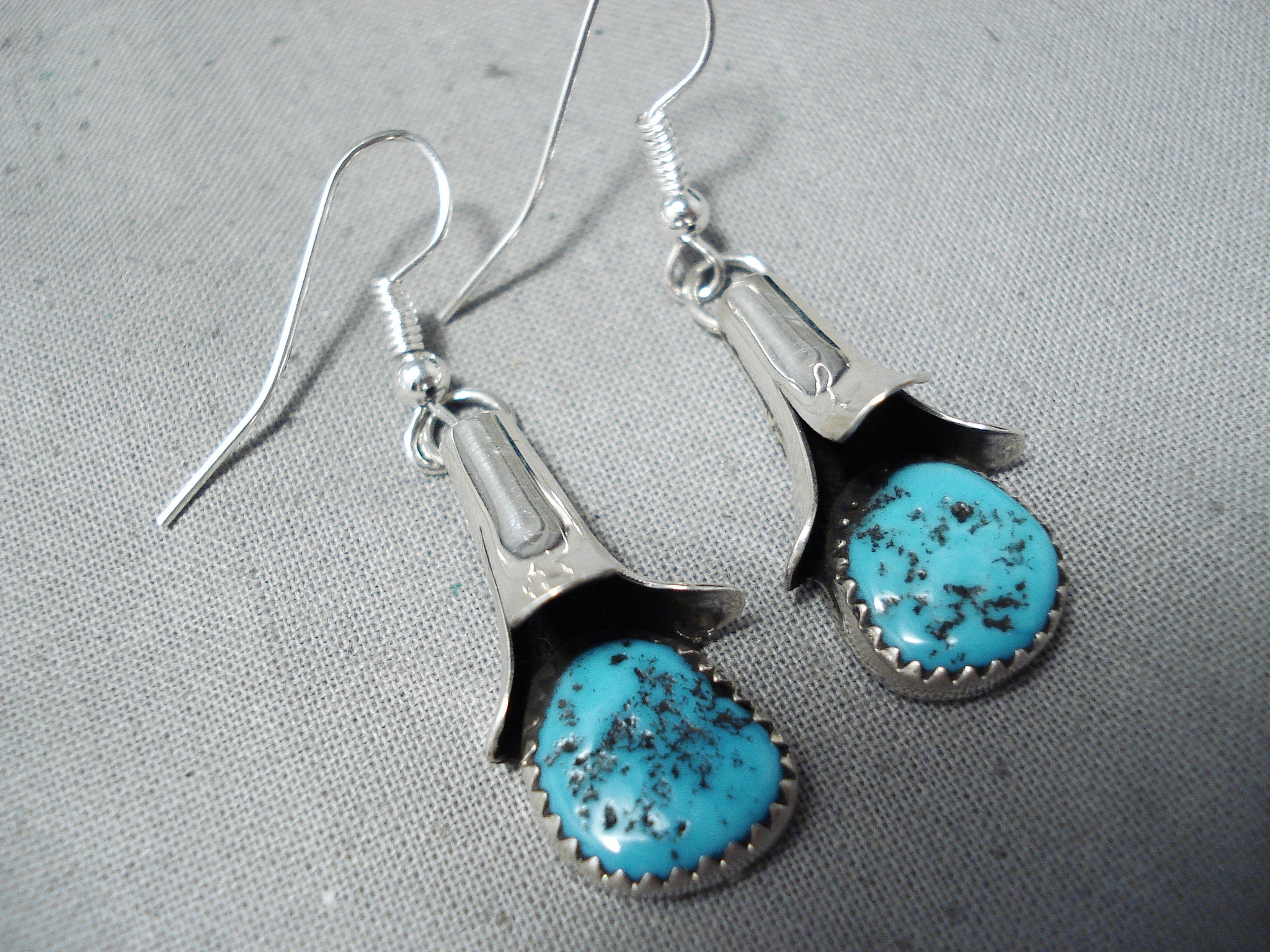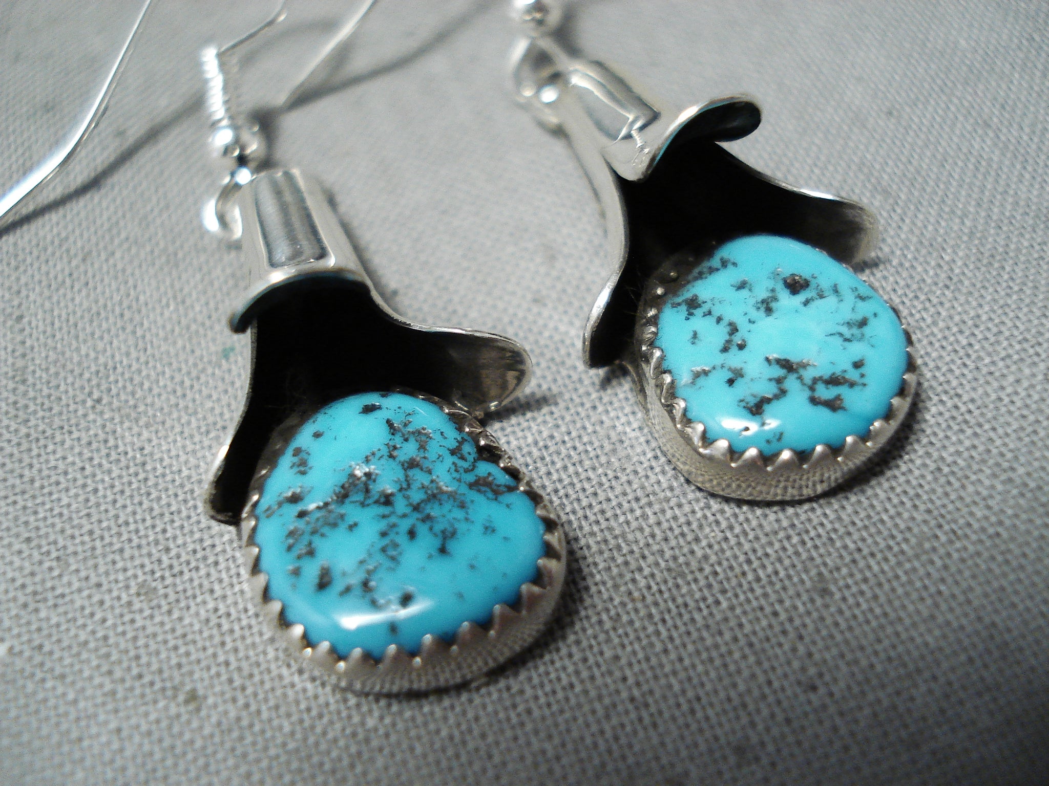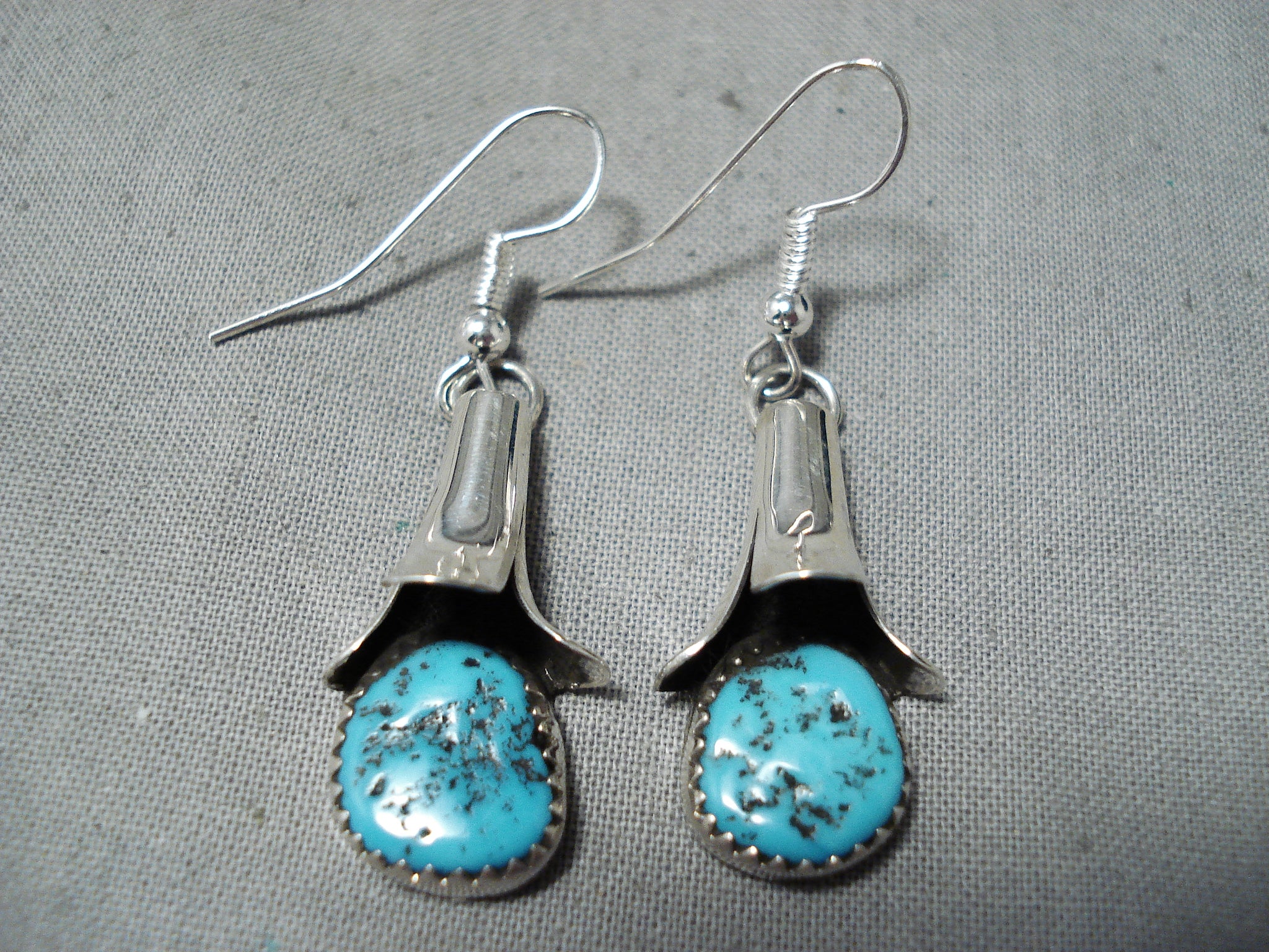Fantastic Navajo Turquoise Sterling Silver Earrings Native American