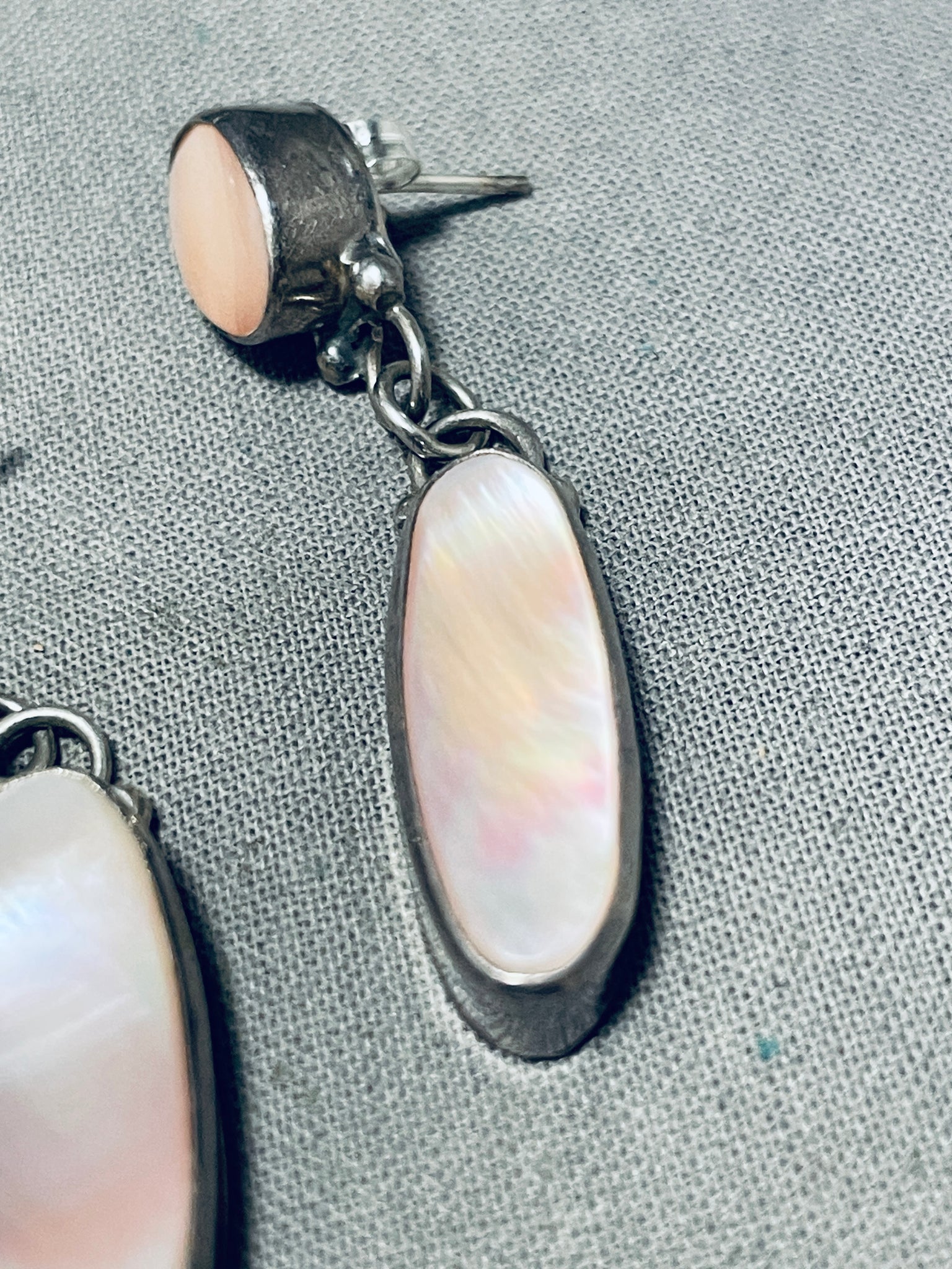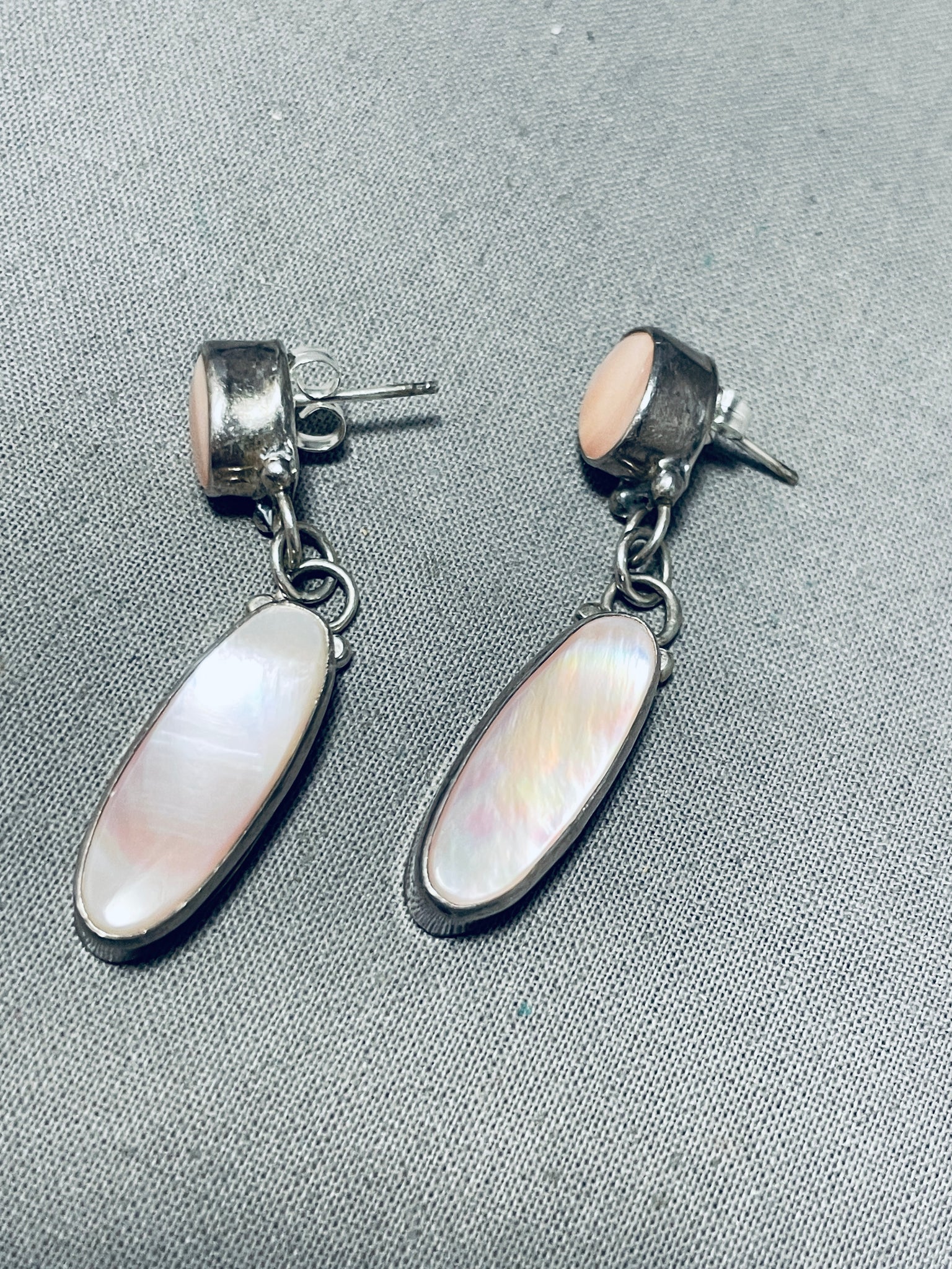 Fantastic Vintage Native American Navajo Mother Of Pearl Sterling Silver Earrings