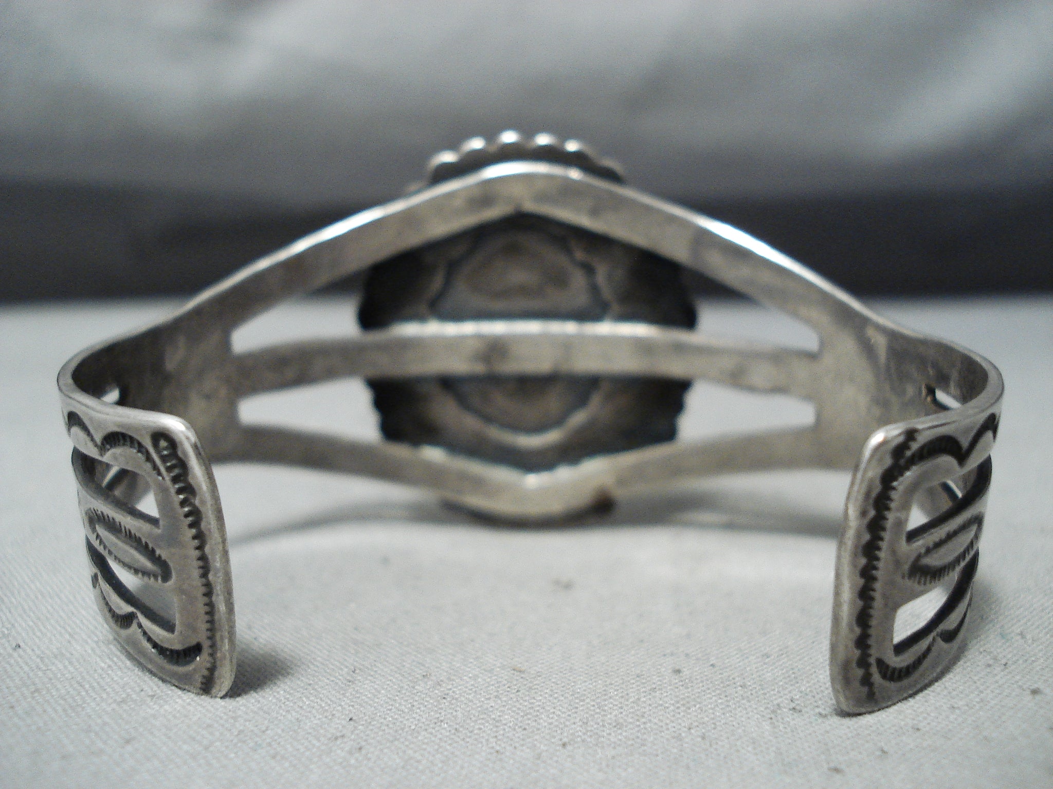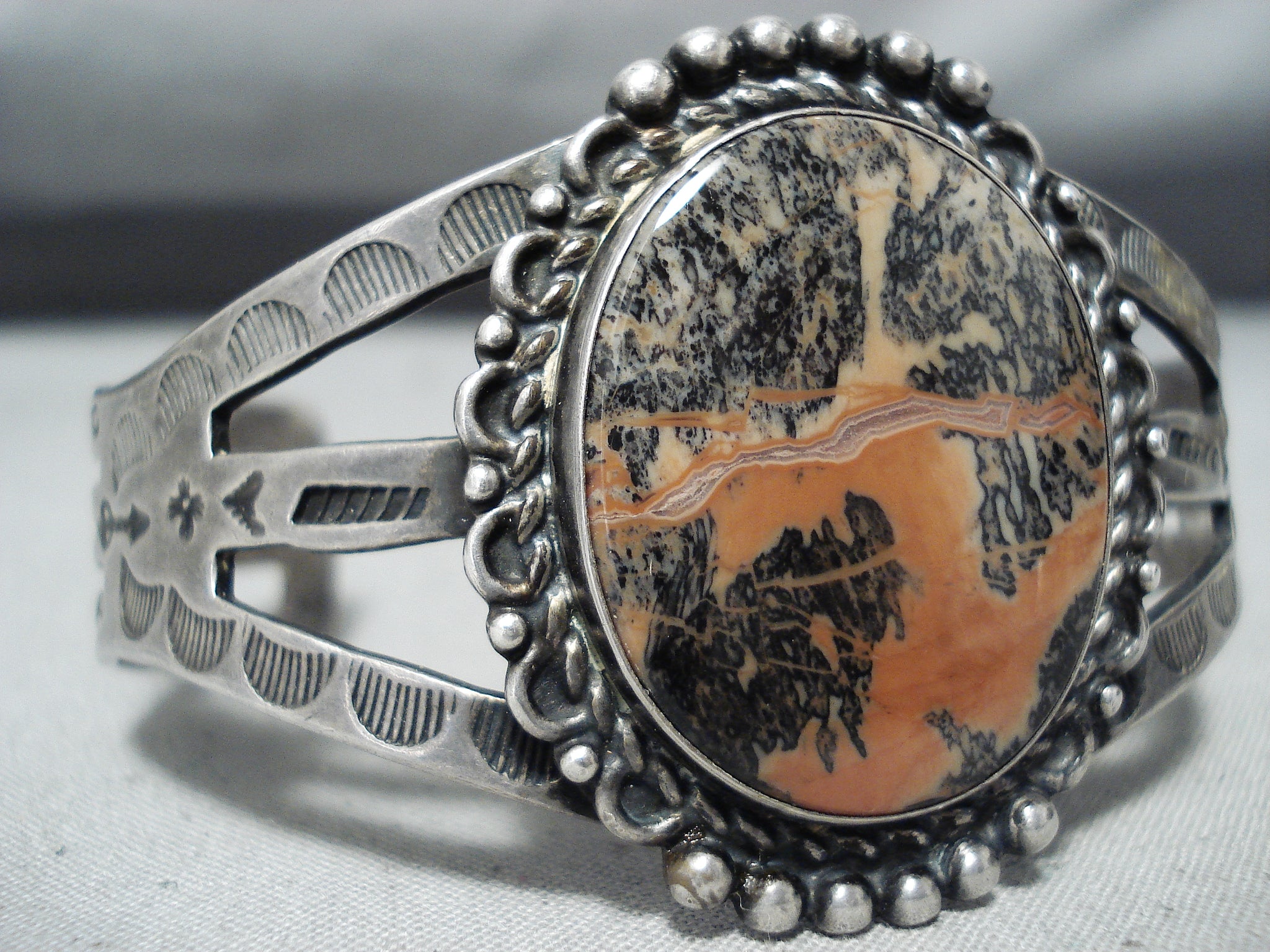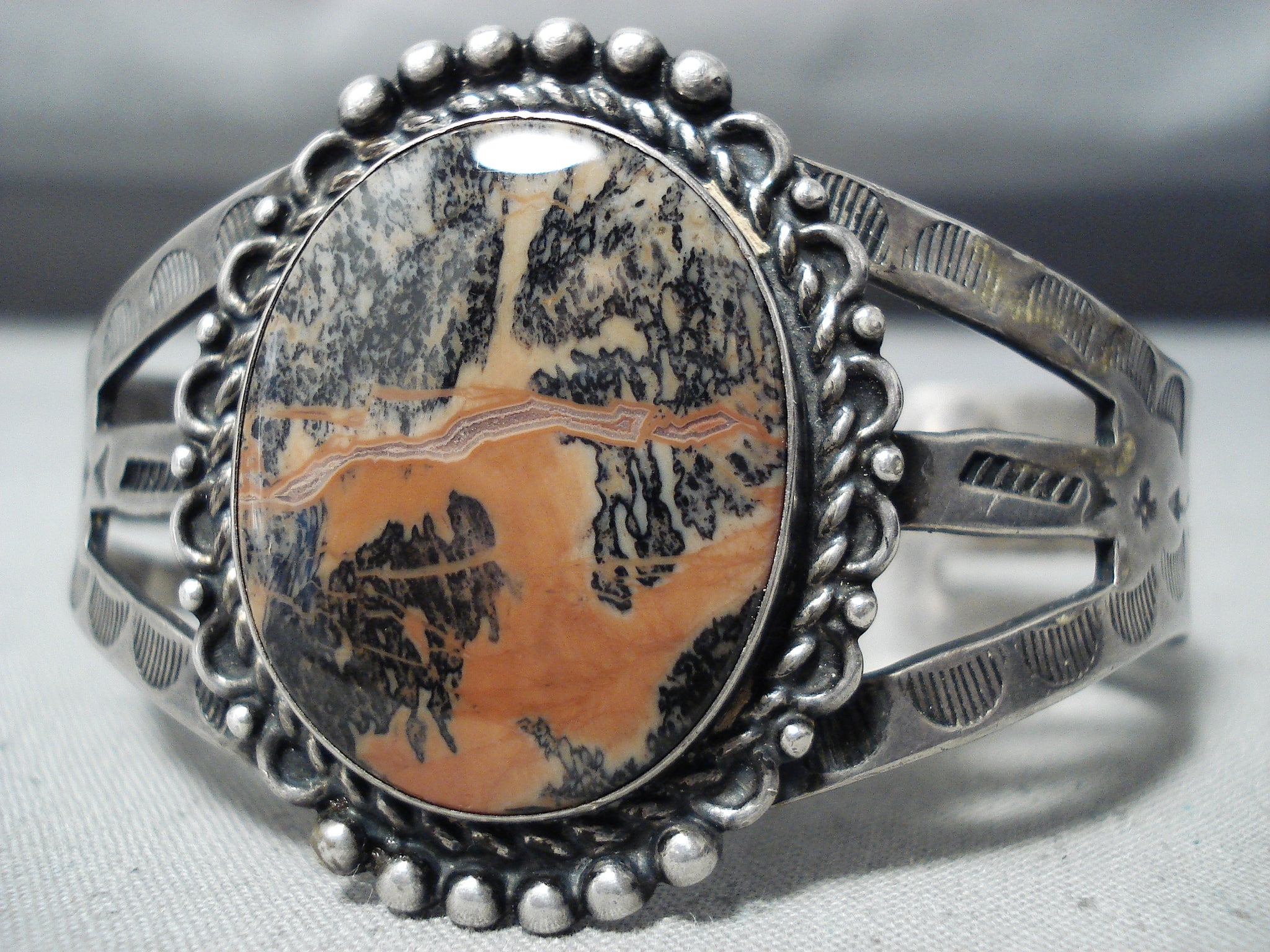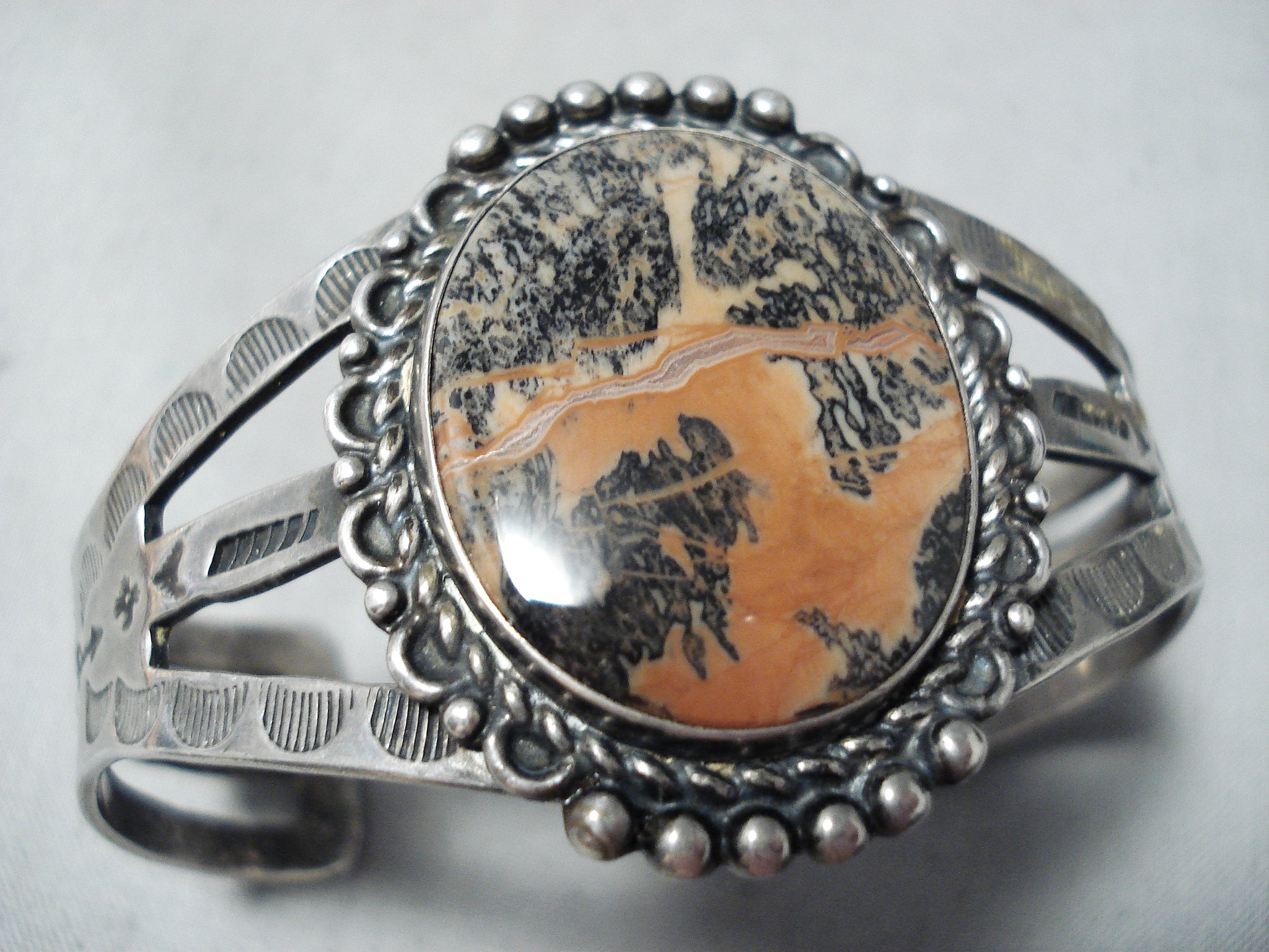 Fantastic Vintage Native American Navajo Petrified Wood Sterling Silver Bracelet Old