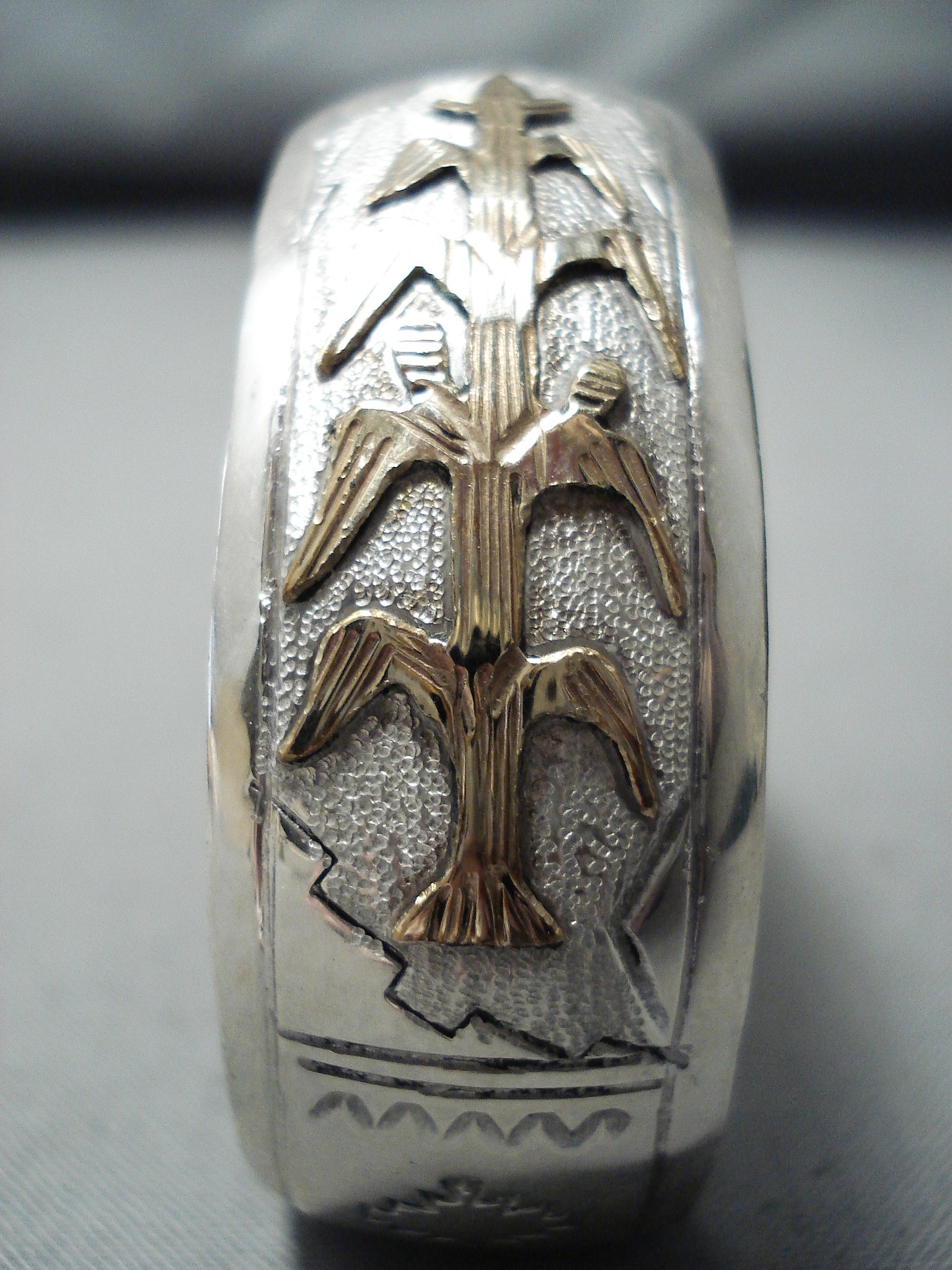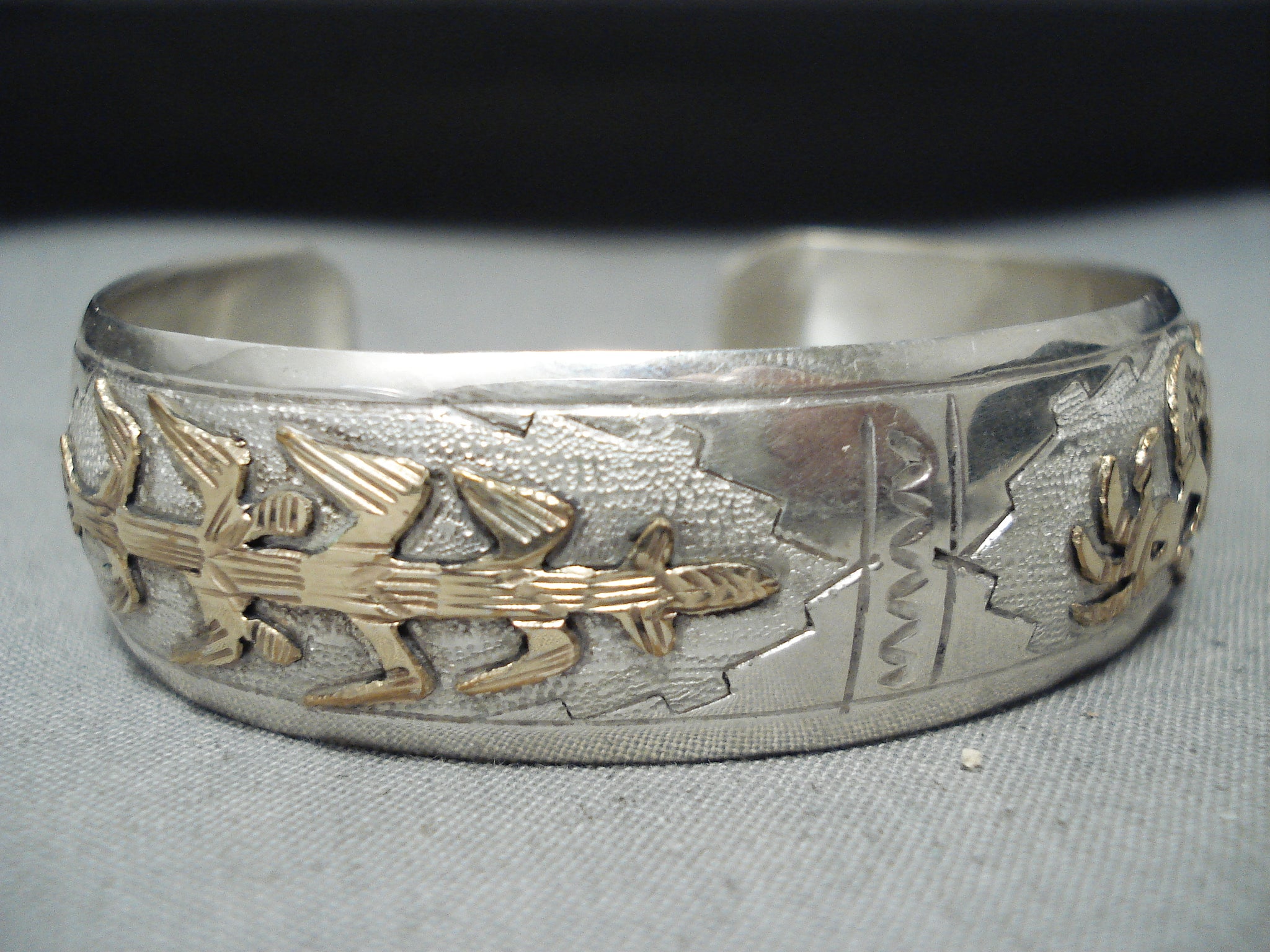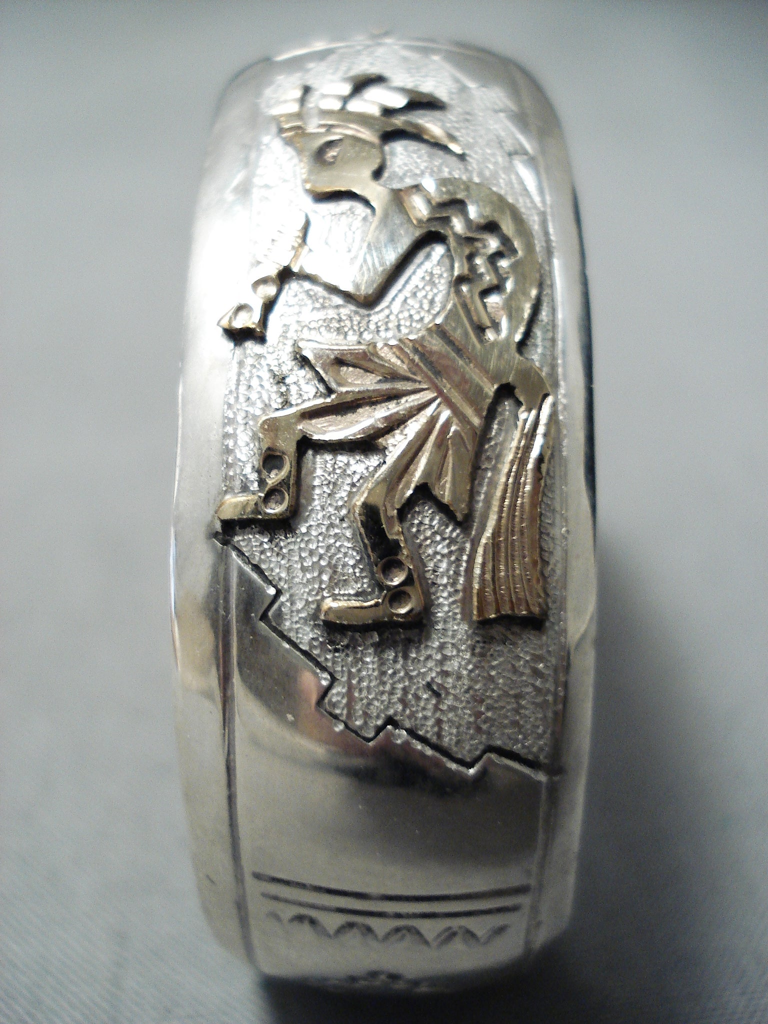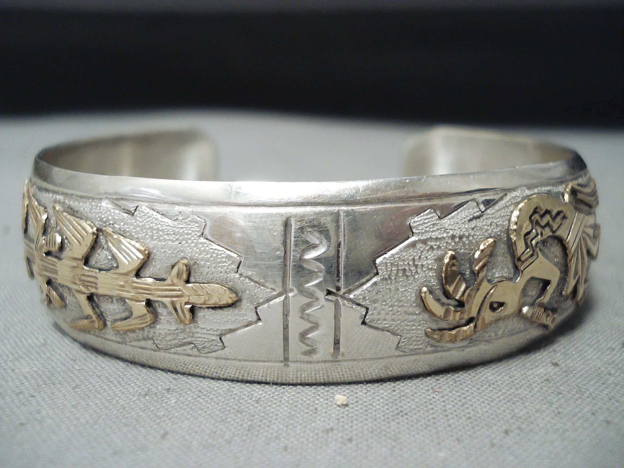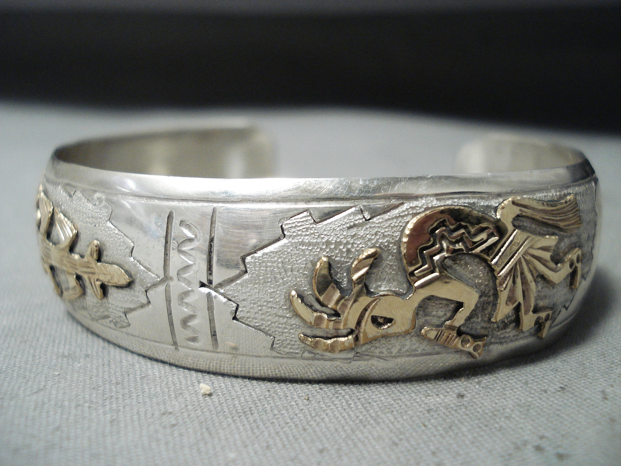 Fascinating Native American Navajo 12k Gold Fill Kokopelli Sterling Silver Bracelet