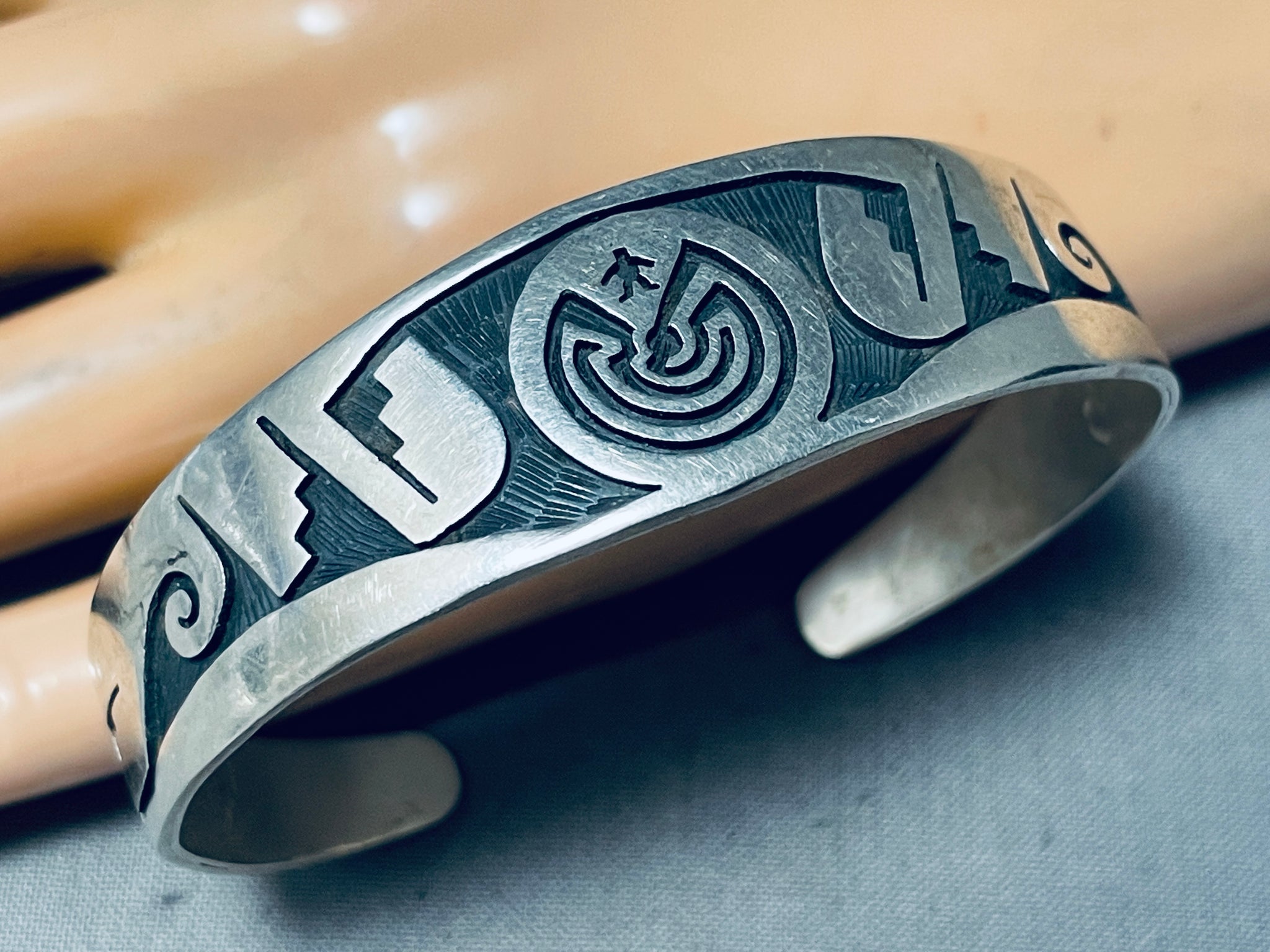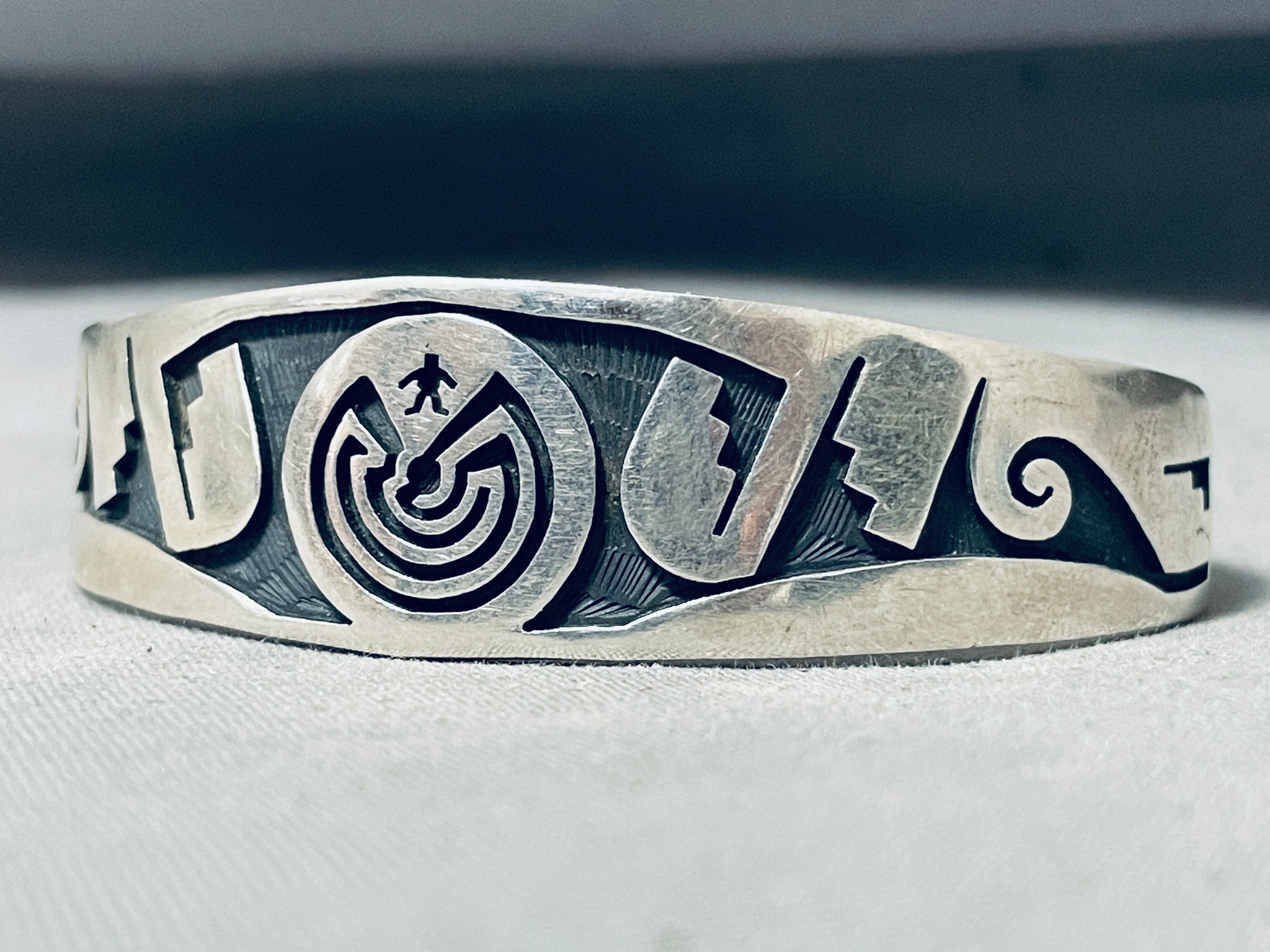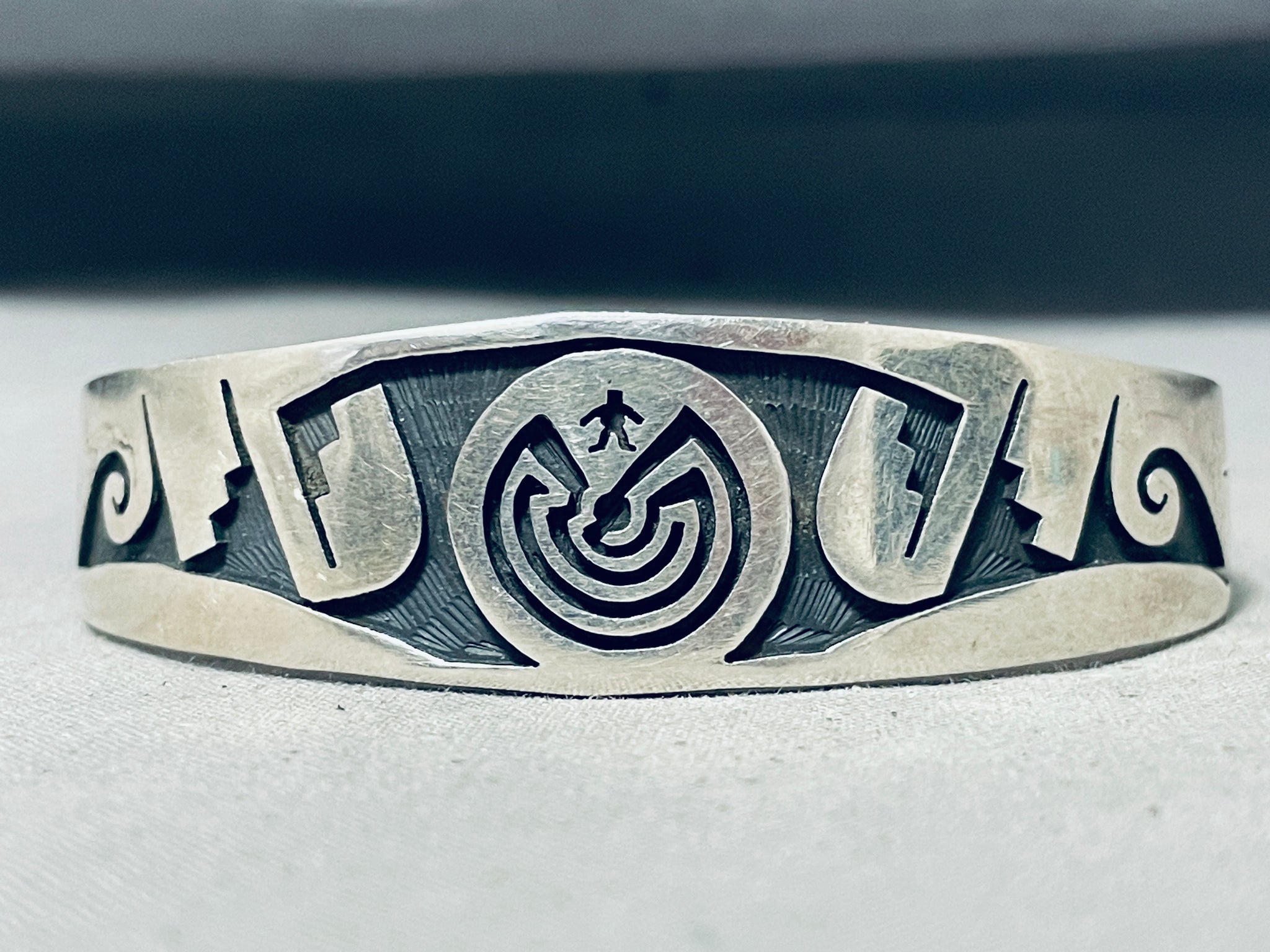 Fascinating Vintage Native American Hopi Sterling Silver Solid Bracelet
