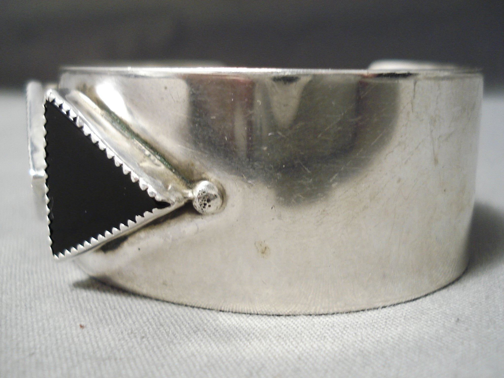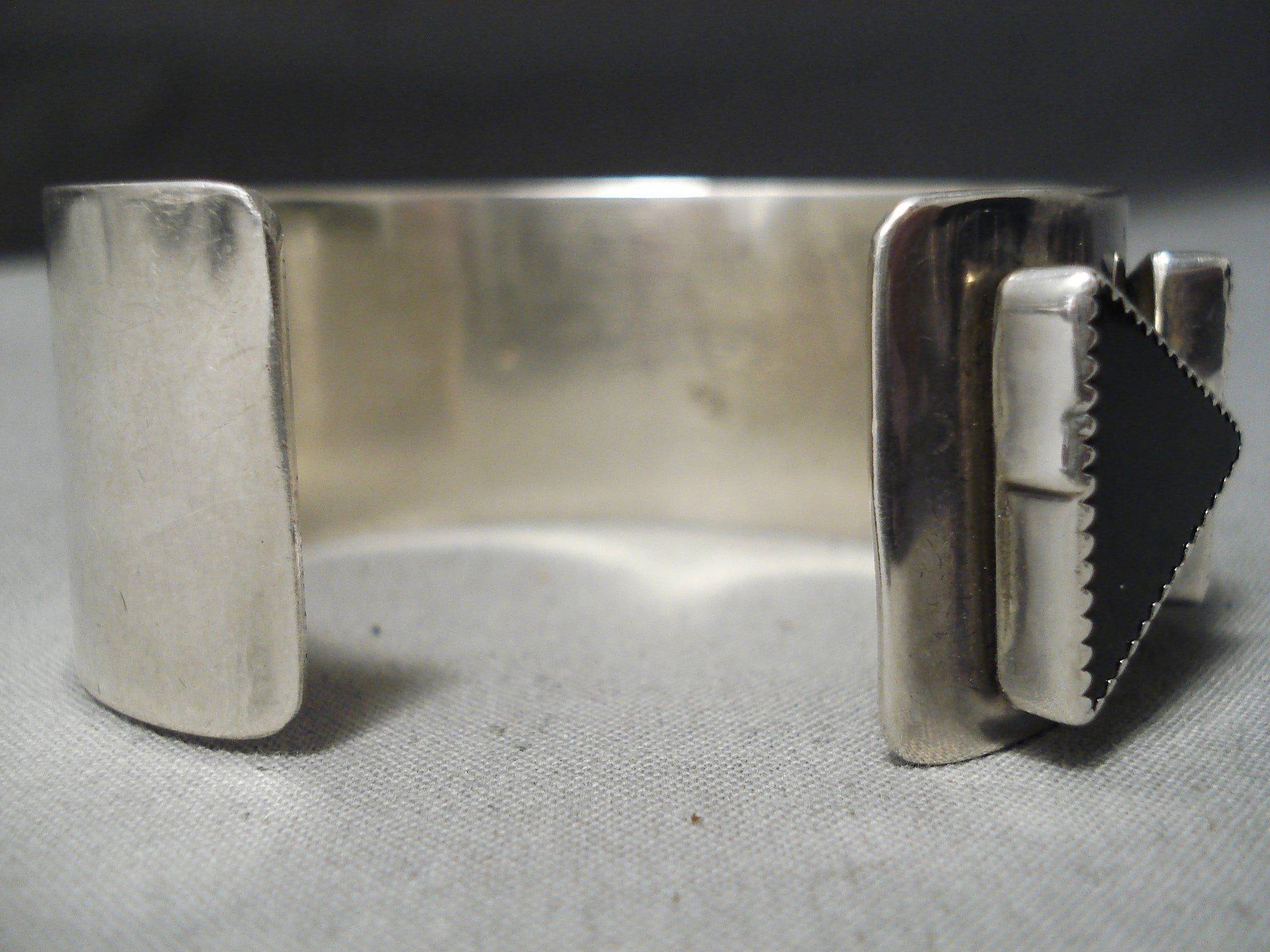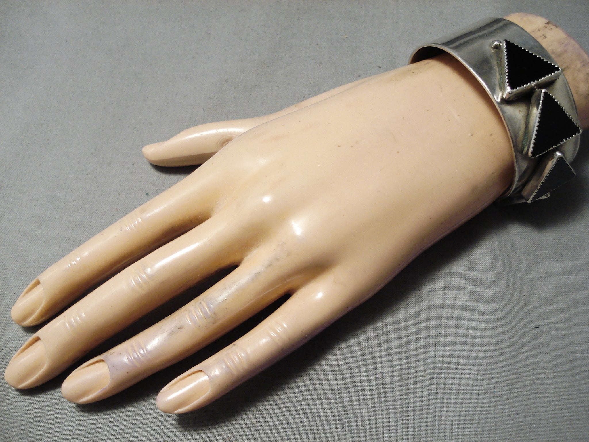 Fascinating Vintage Native American Navajo Black Onyx Sterling Silver Bracelet Old