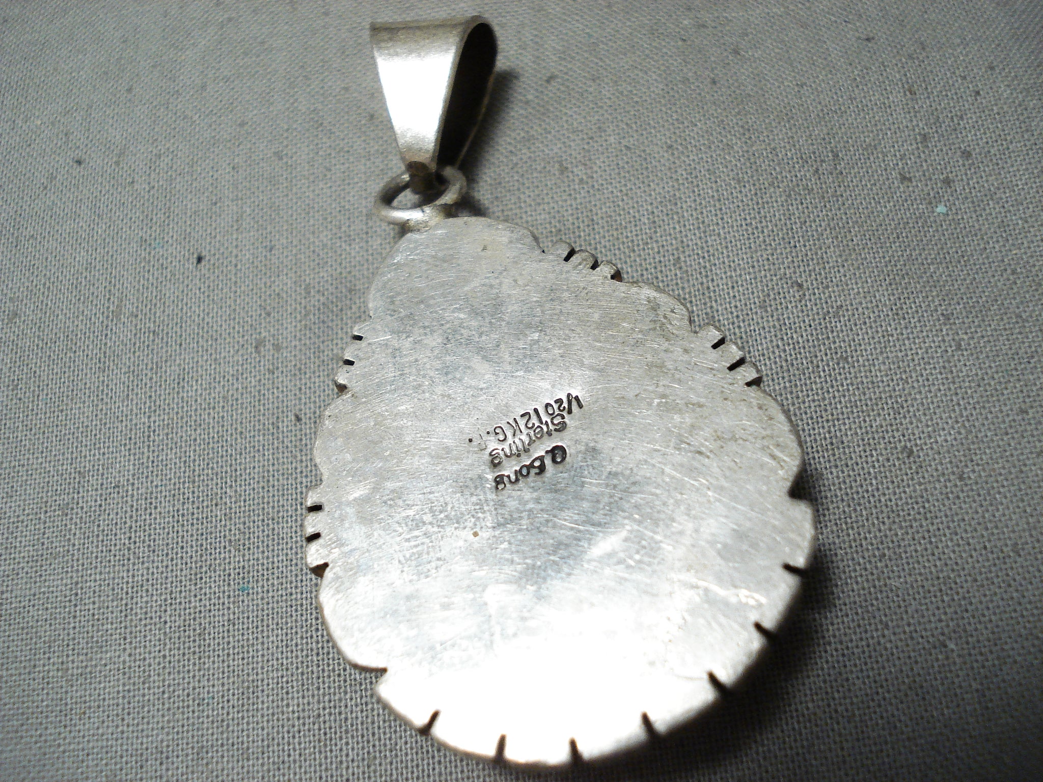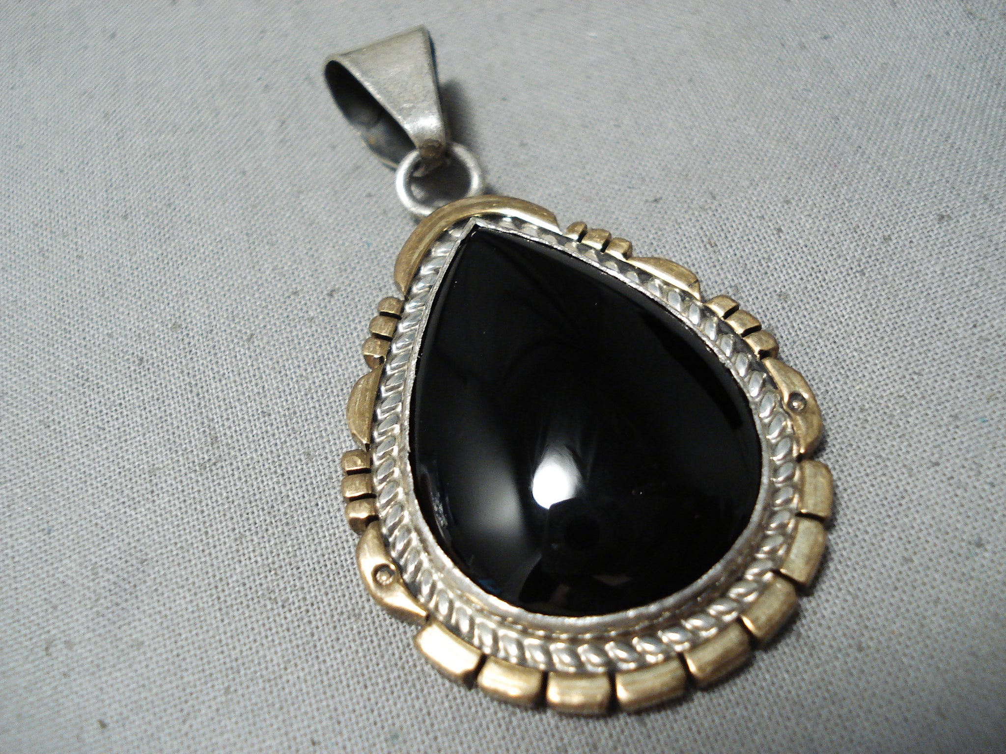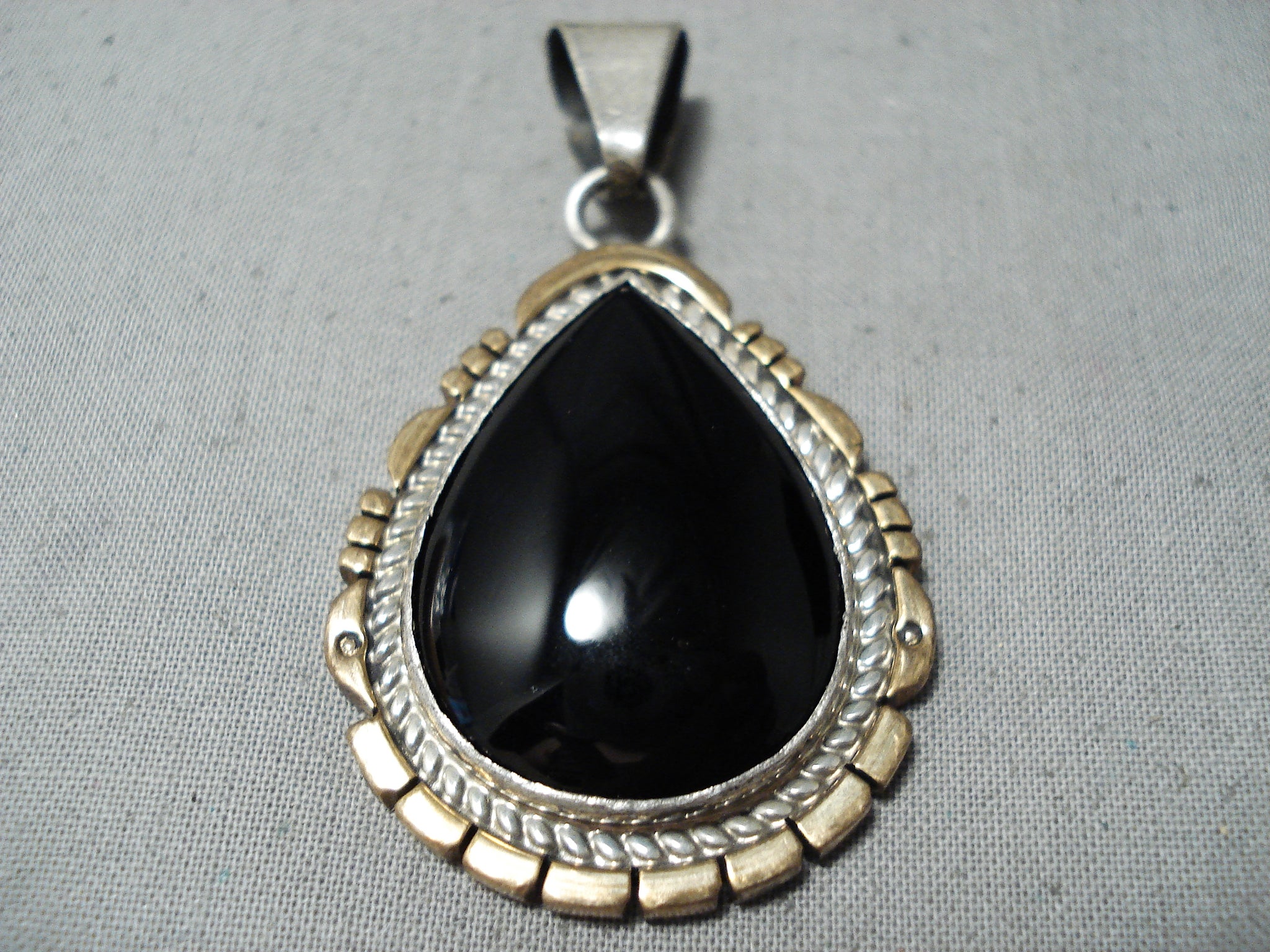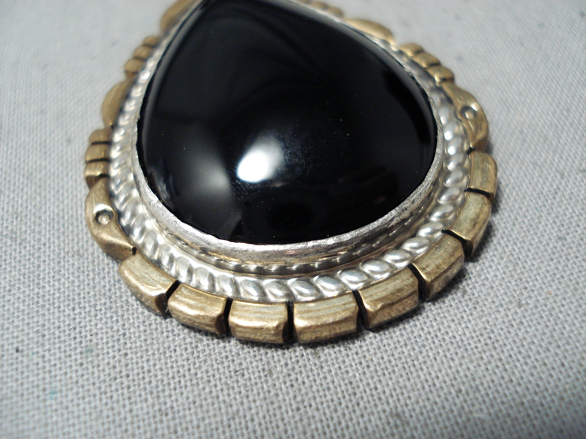 Fascinating Vintage Native American Navajo Black Onyx Sterling Silver & Gold Pendant Old