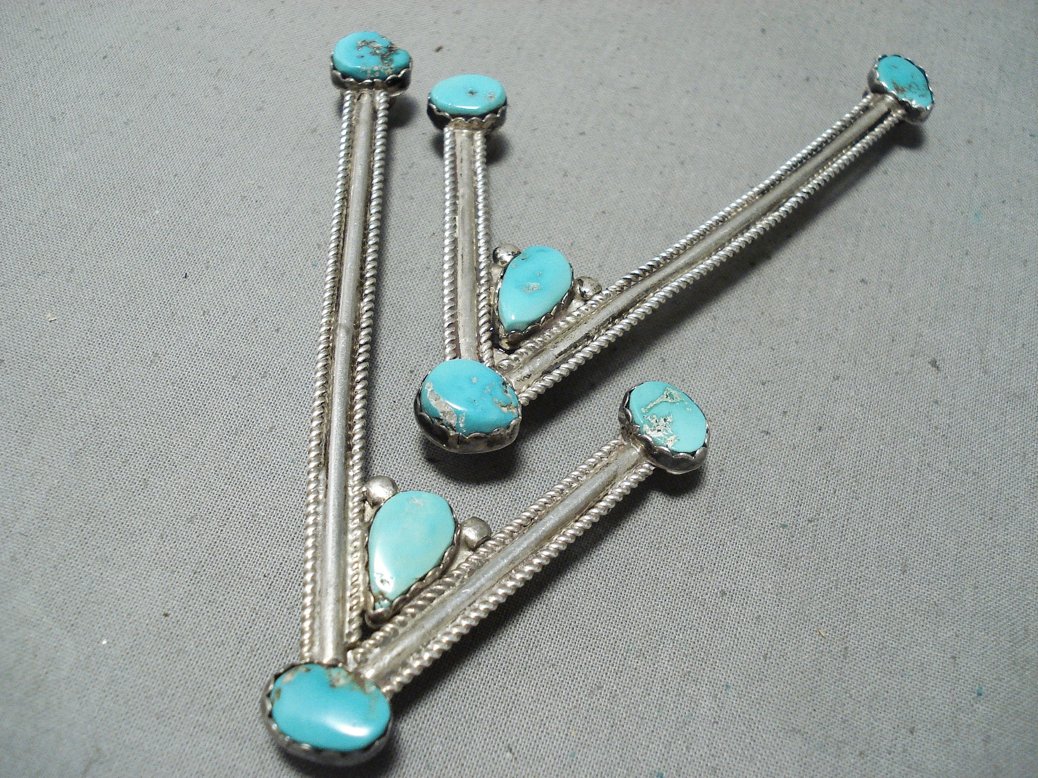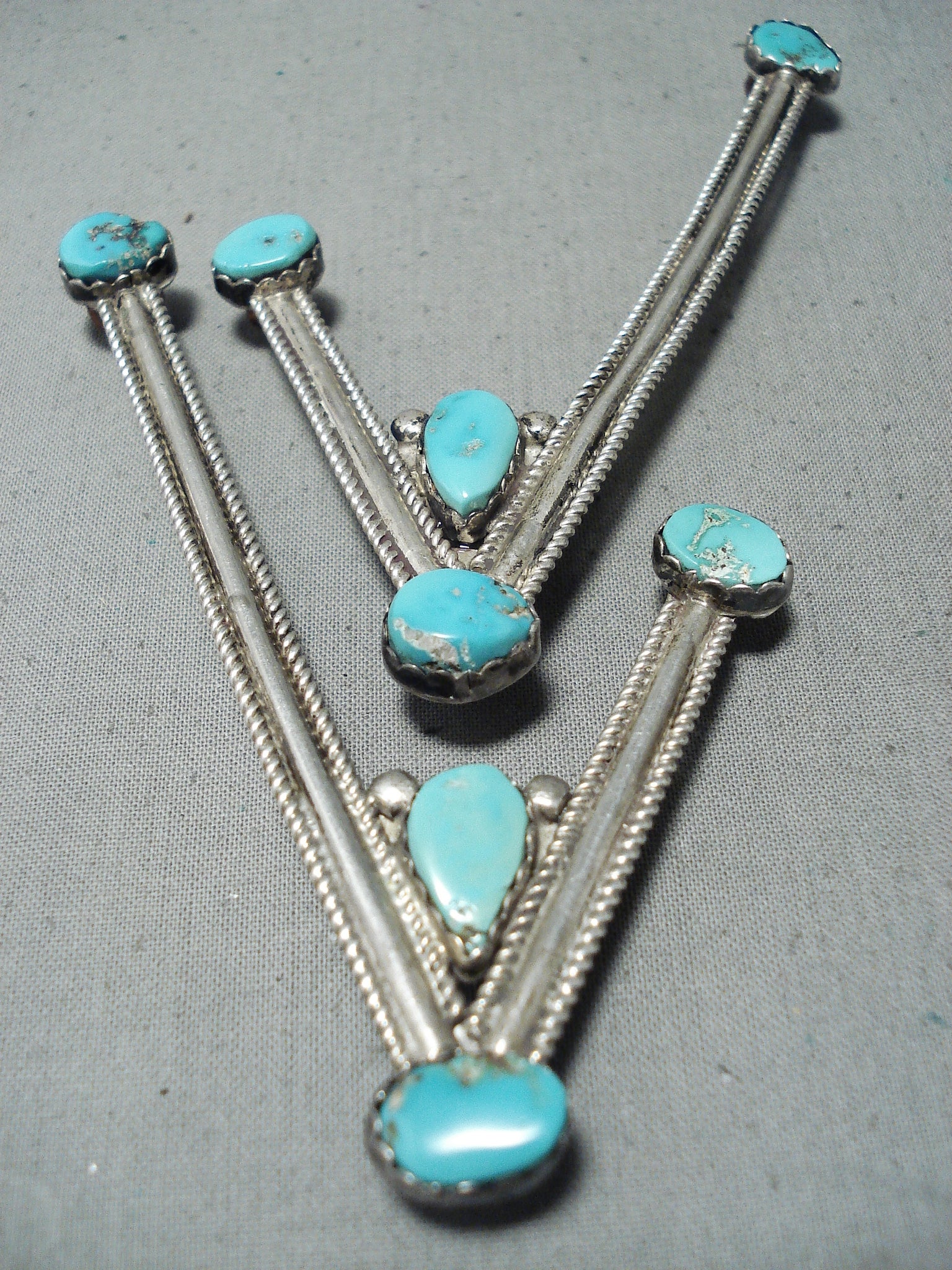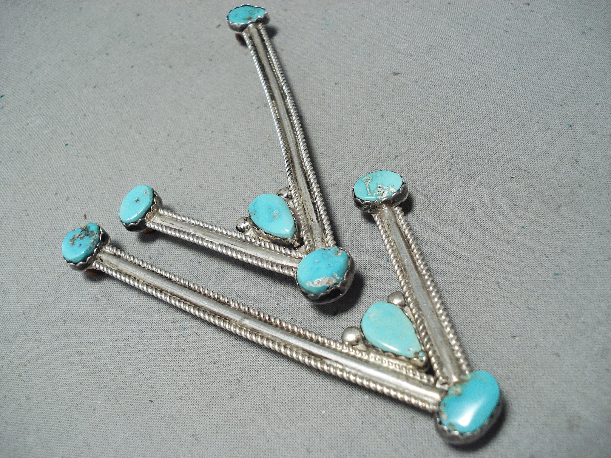 Fascinating Vintage Native American Navajo Kingman Sterling Silver Collar Pins Old