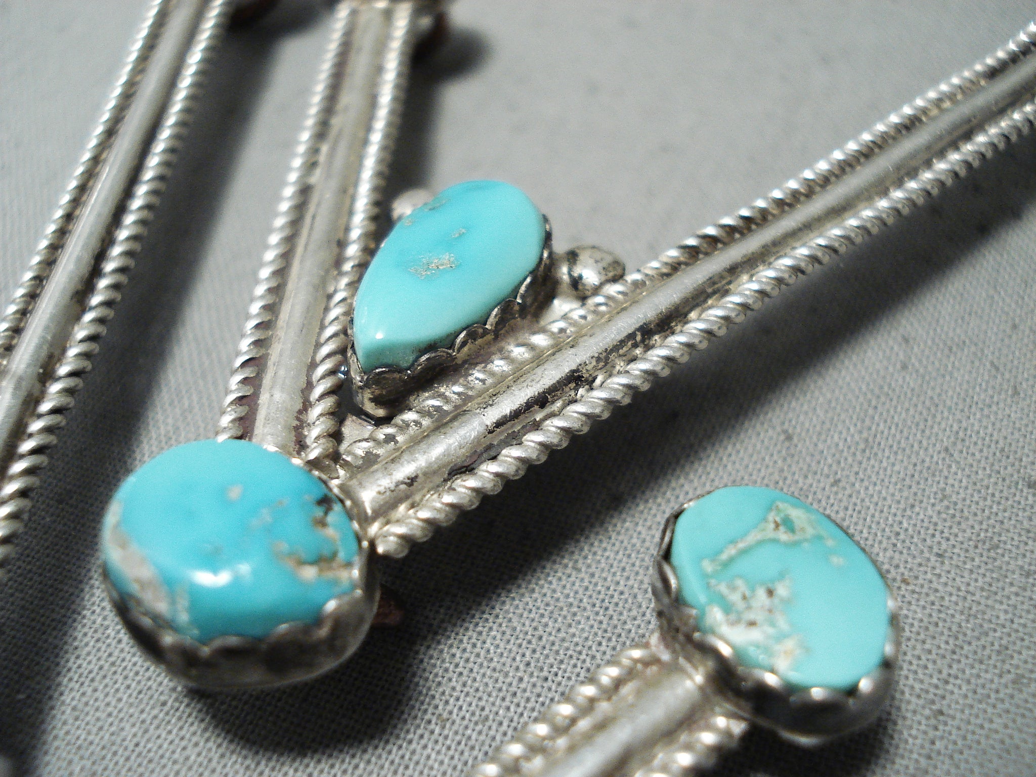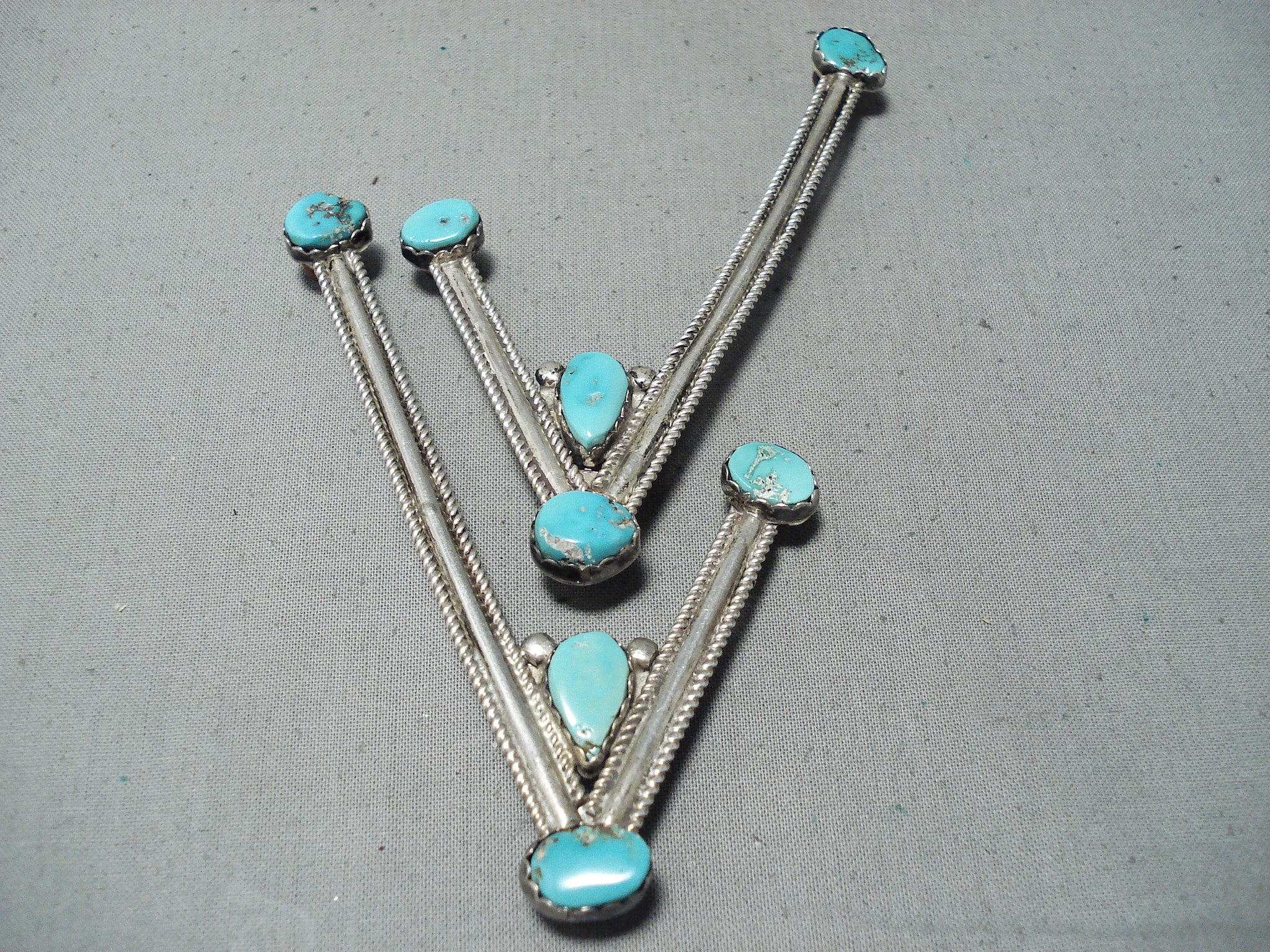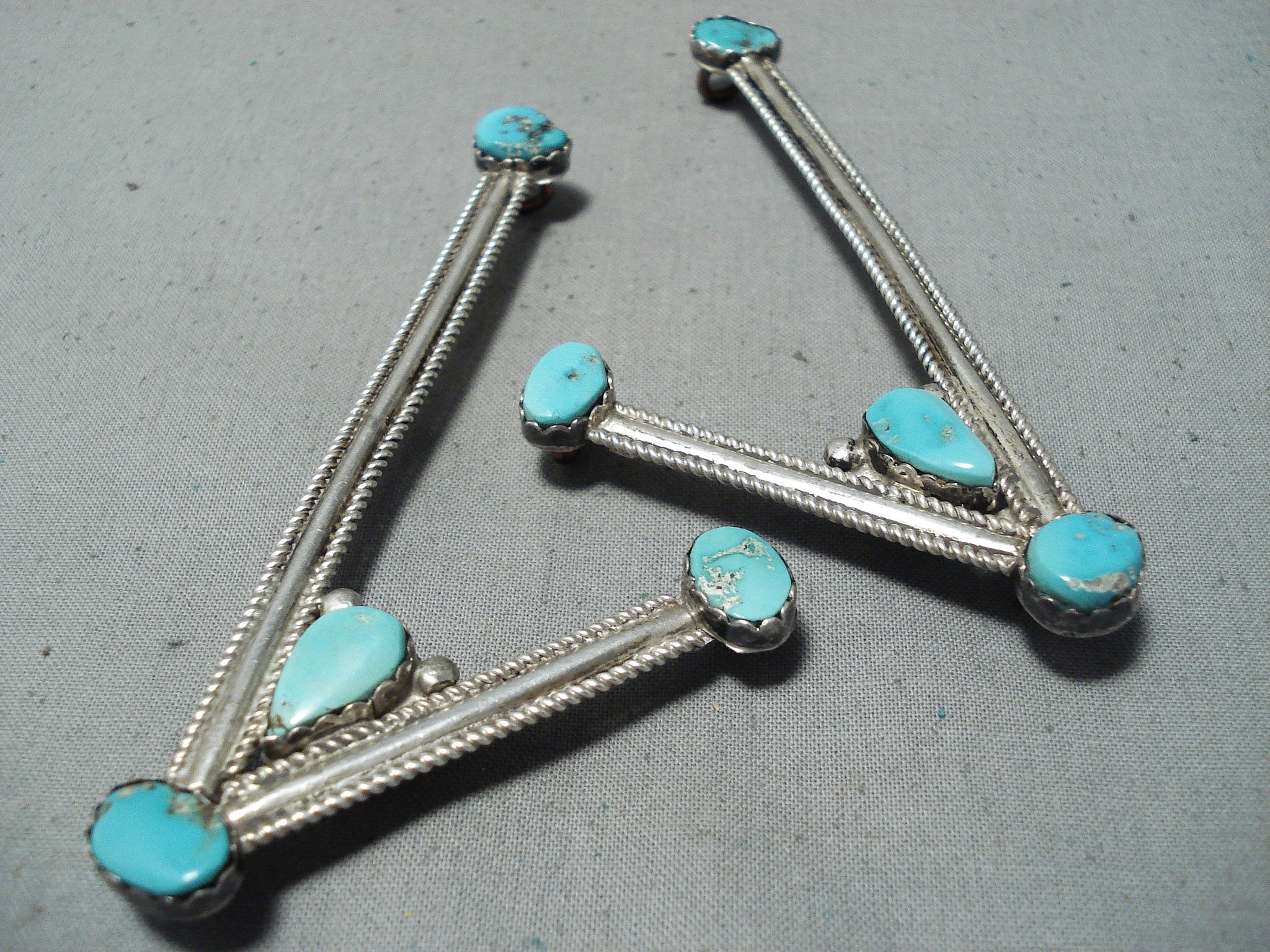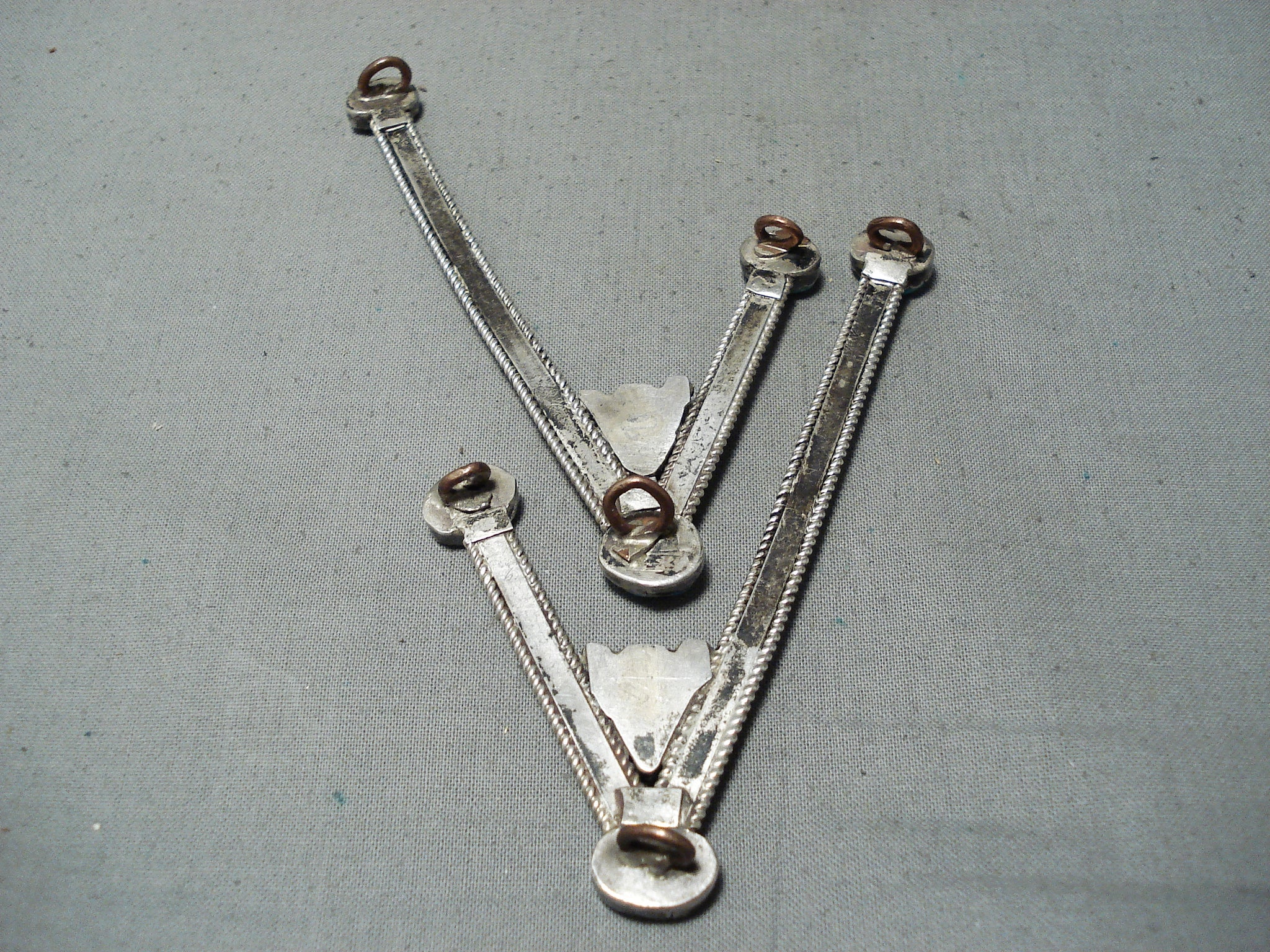 Fascinating Vintage Native American Navajo Kingman Sterling Silver Collar Pins Old