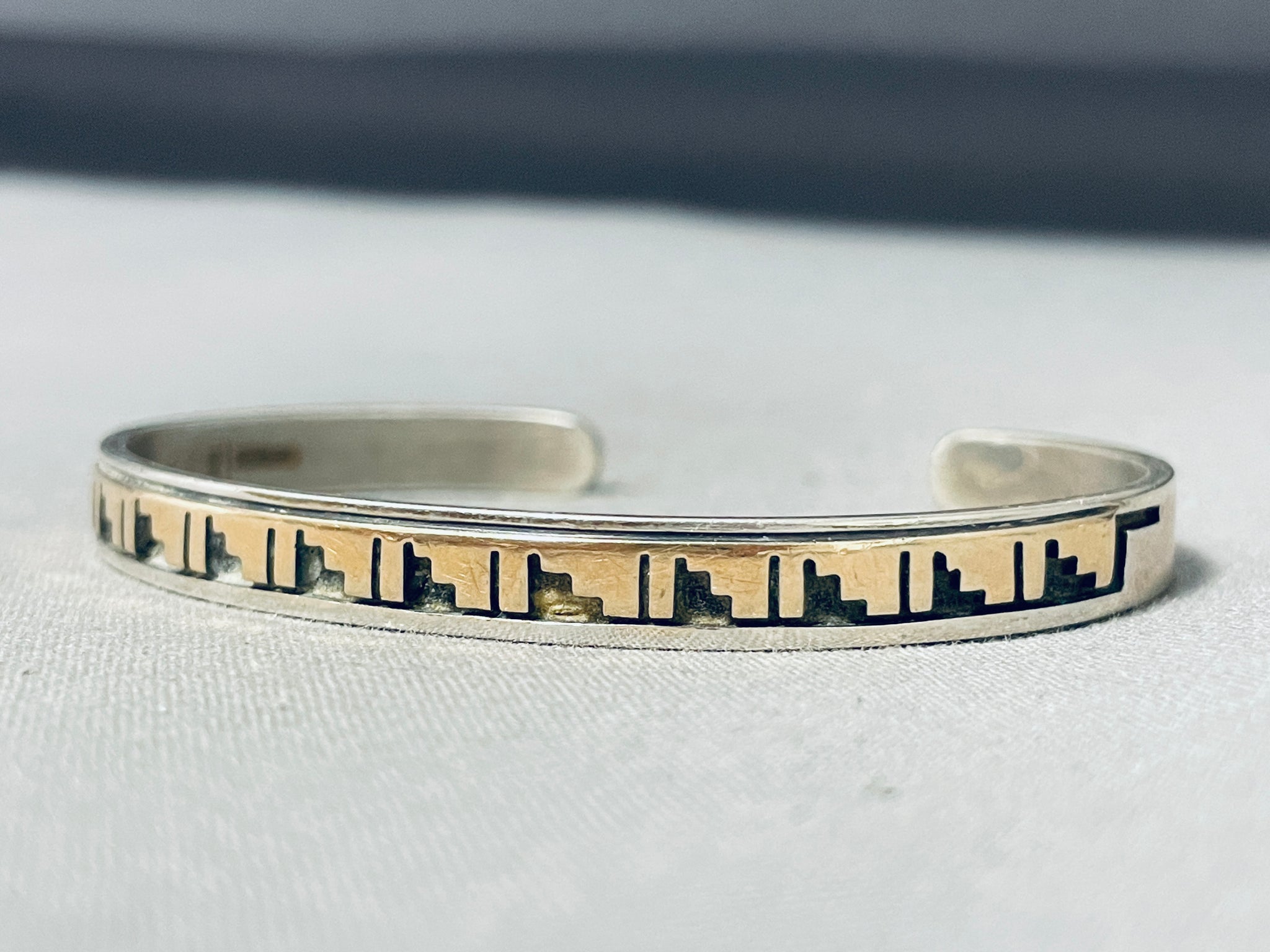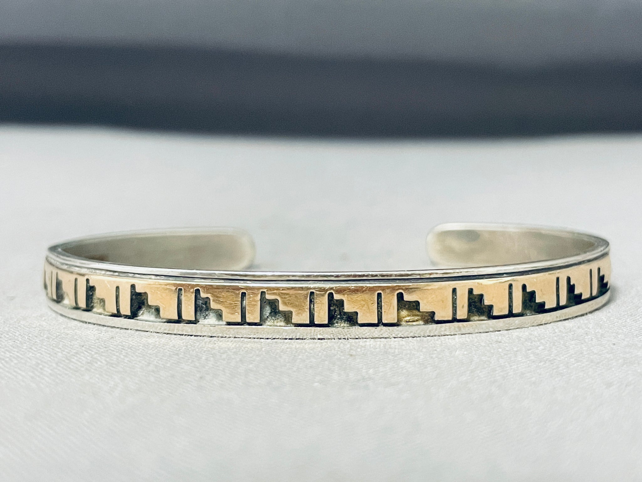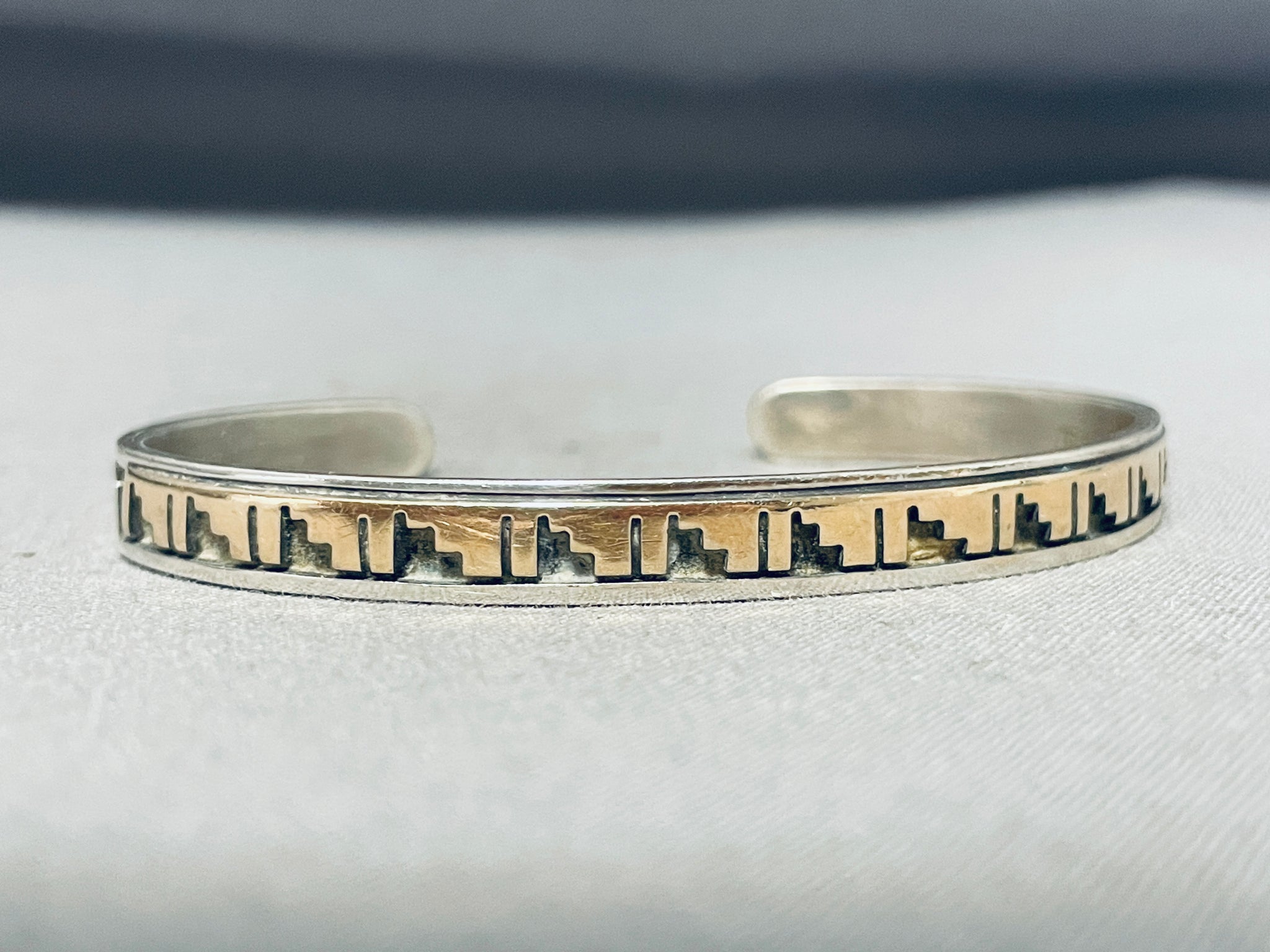 Fascinating Vintage Native American Navajo Sterling Silver & 14k Gold Bracelet Signed