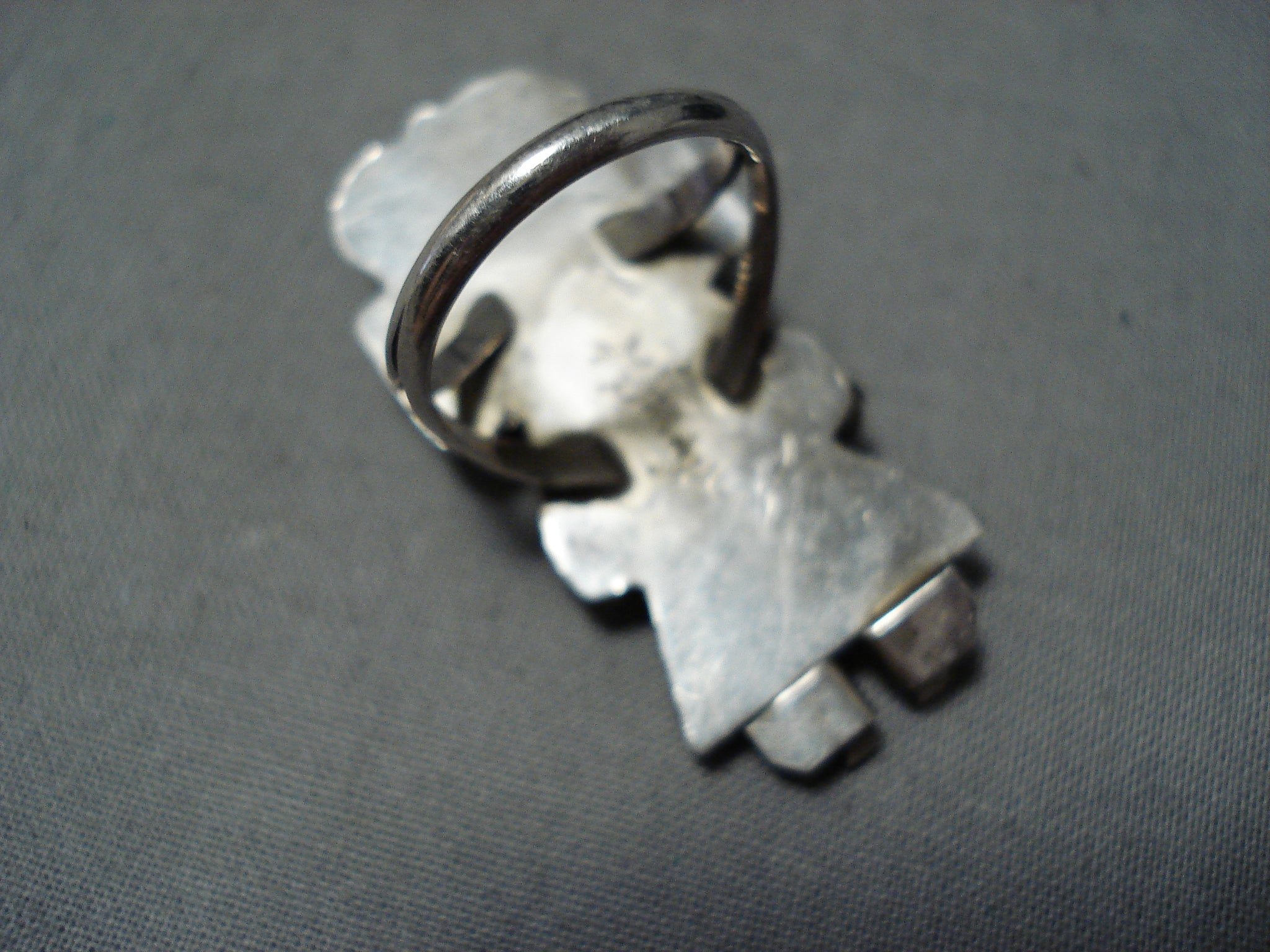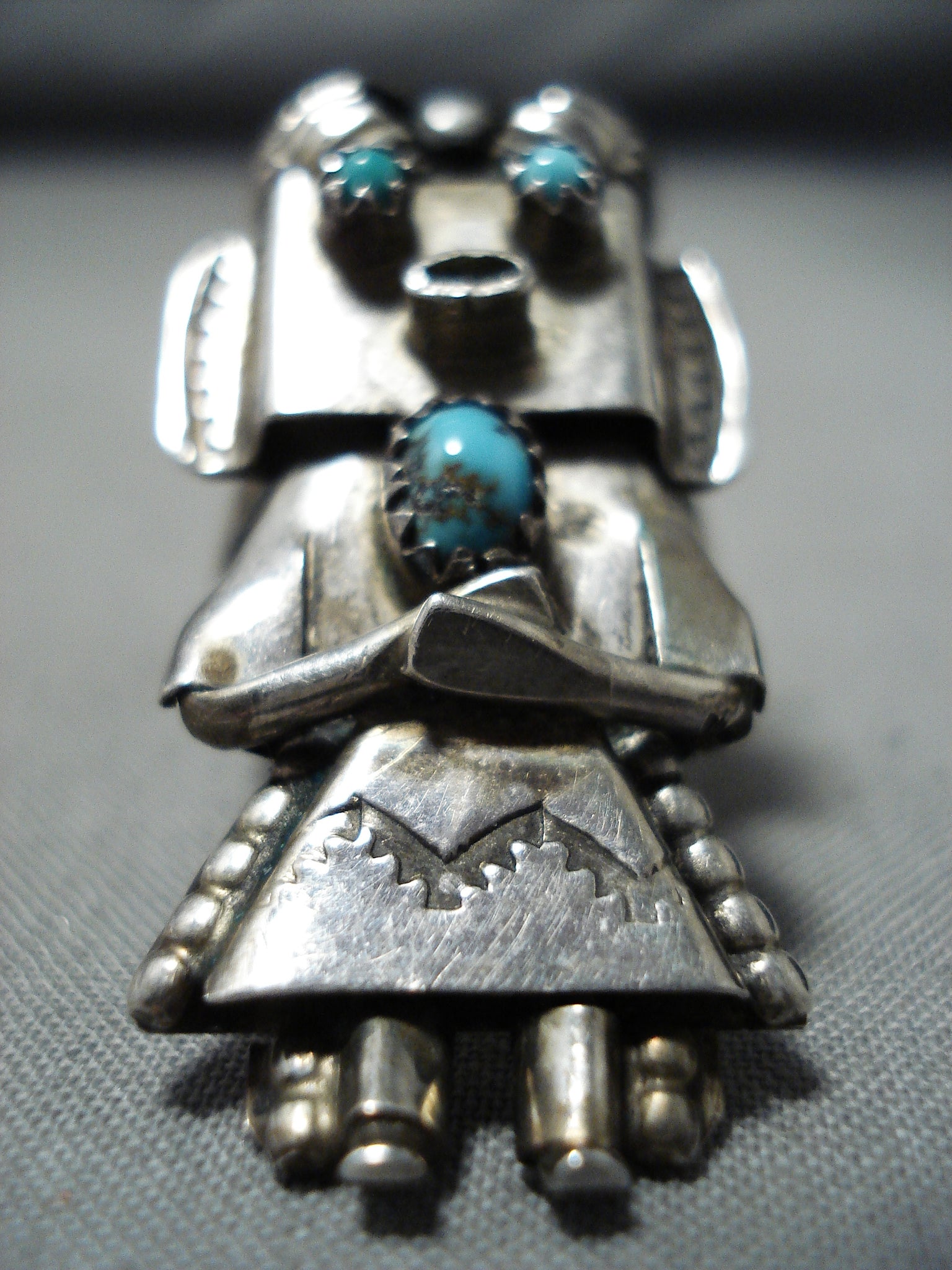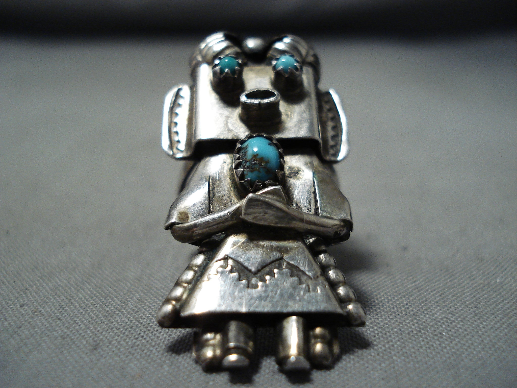 Fascinating Vintage Native American Navajo Turquoise Sterling Silver Kachina Ring Old