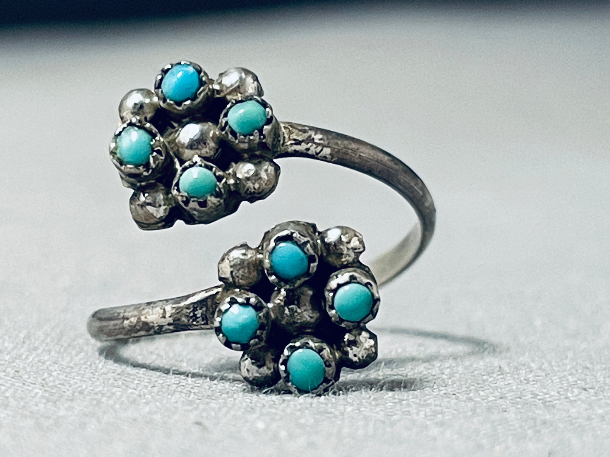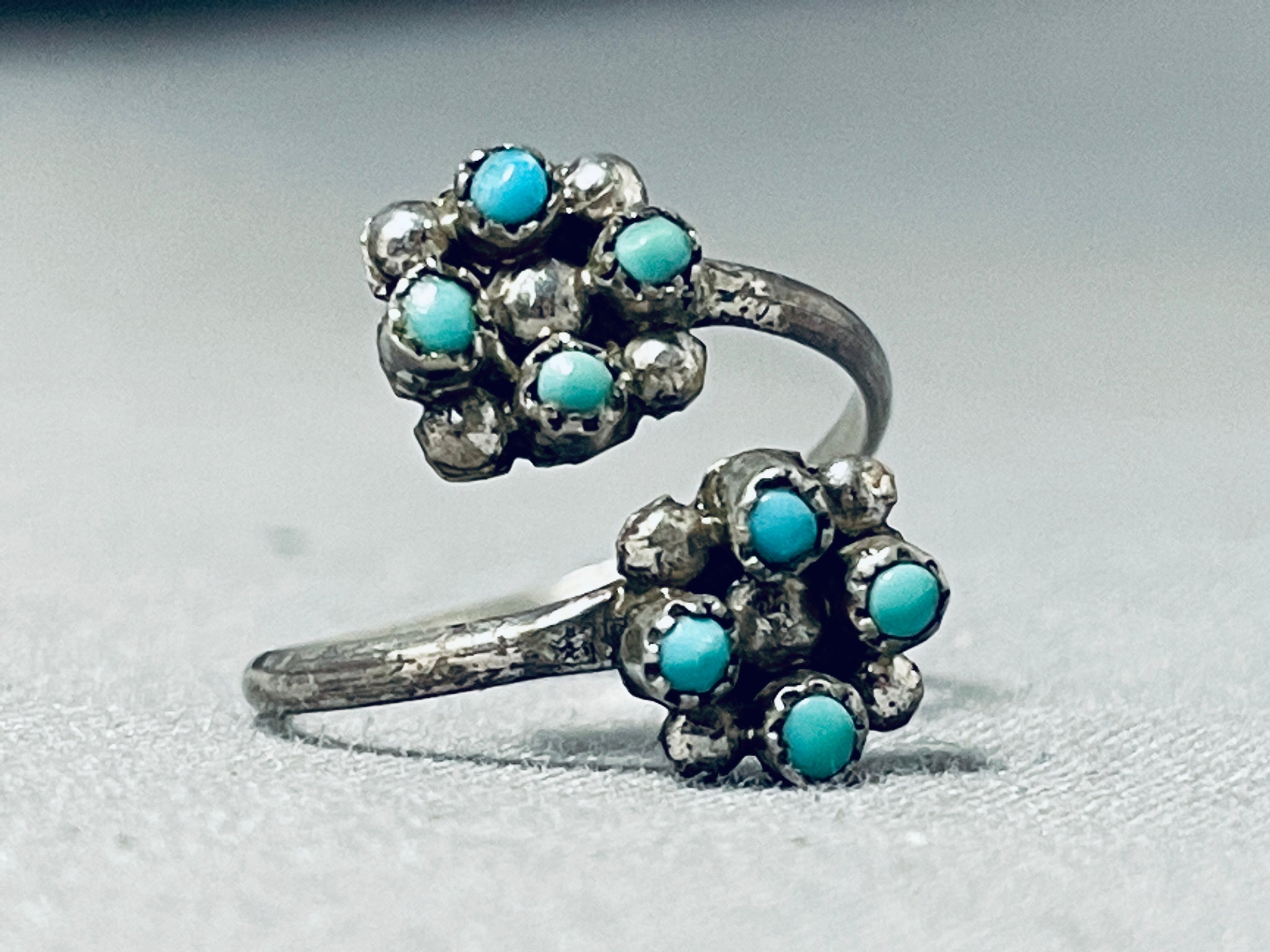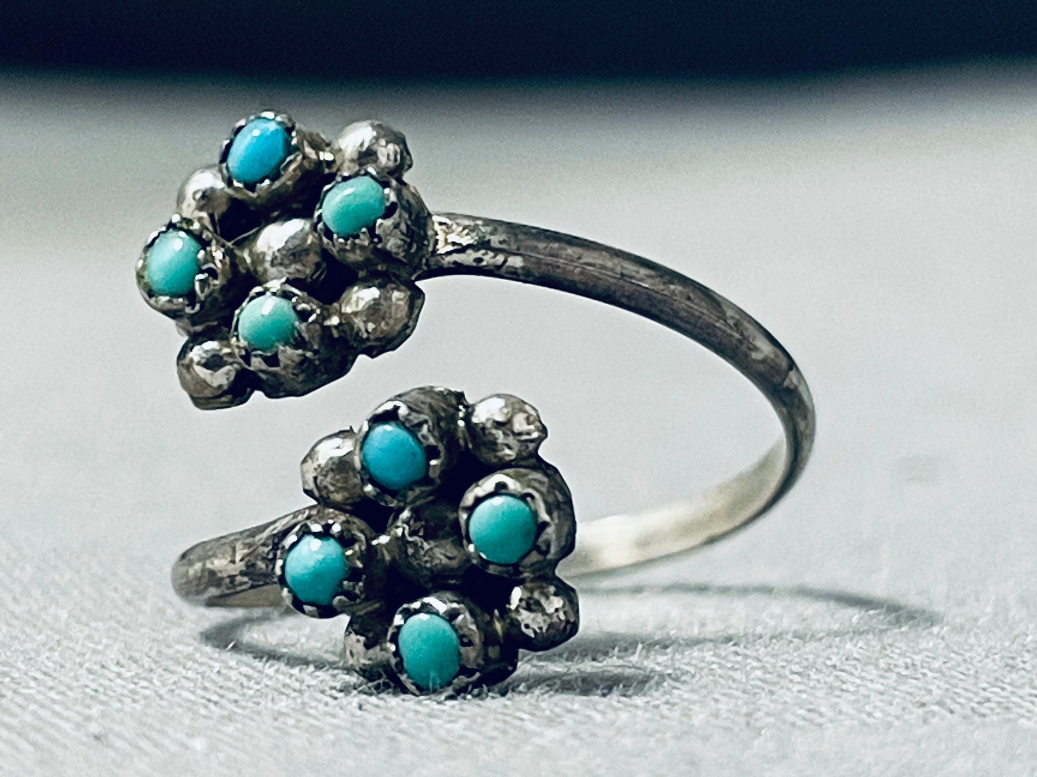 Flower Twist Vintage Native American Zuni Snake Eyes Turquoise Sterling Silver Ring
