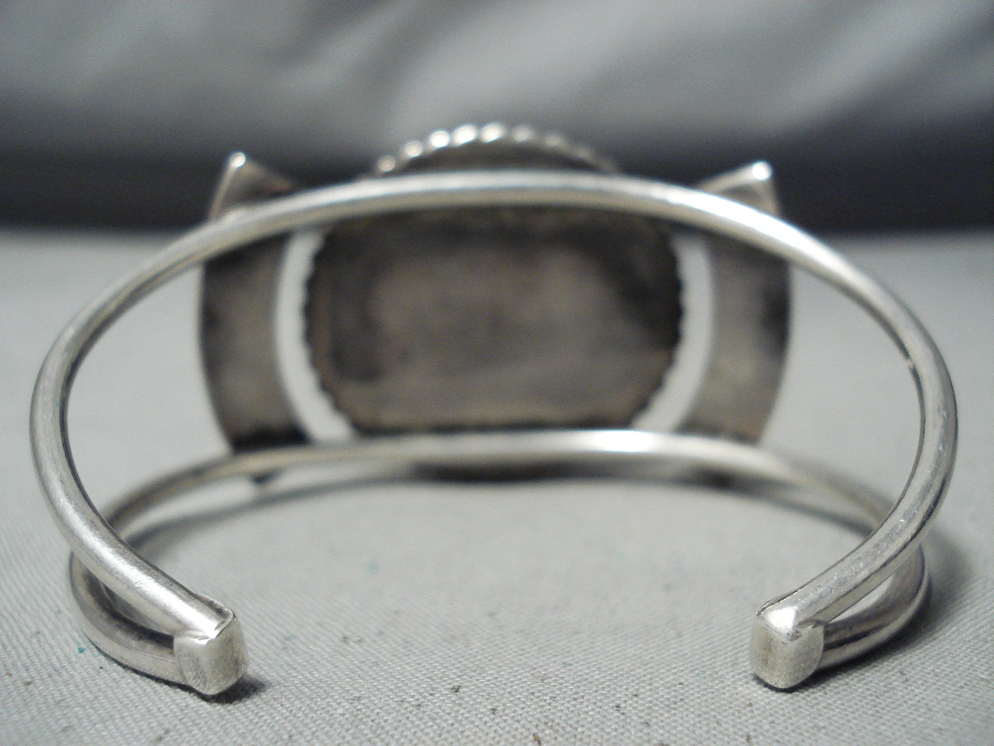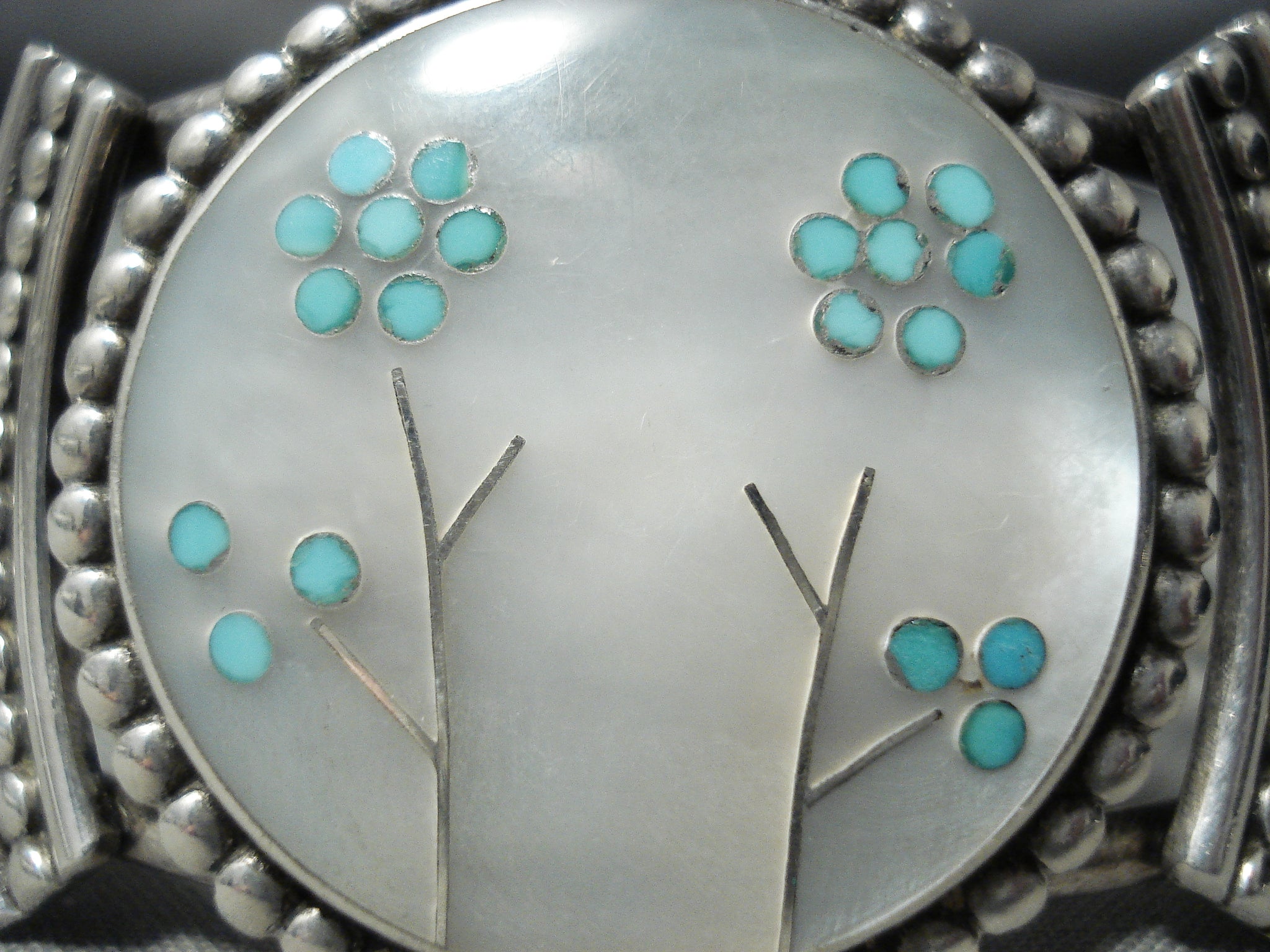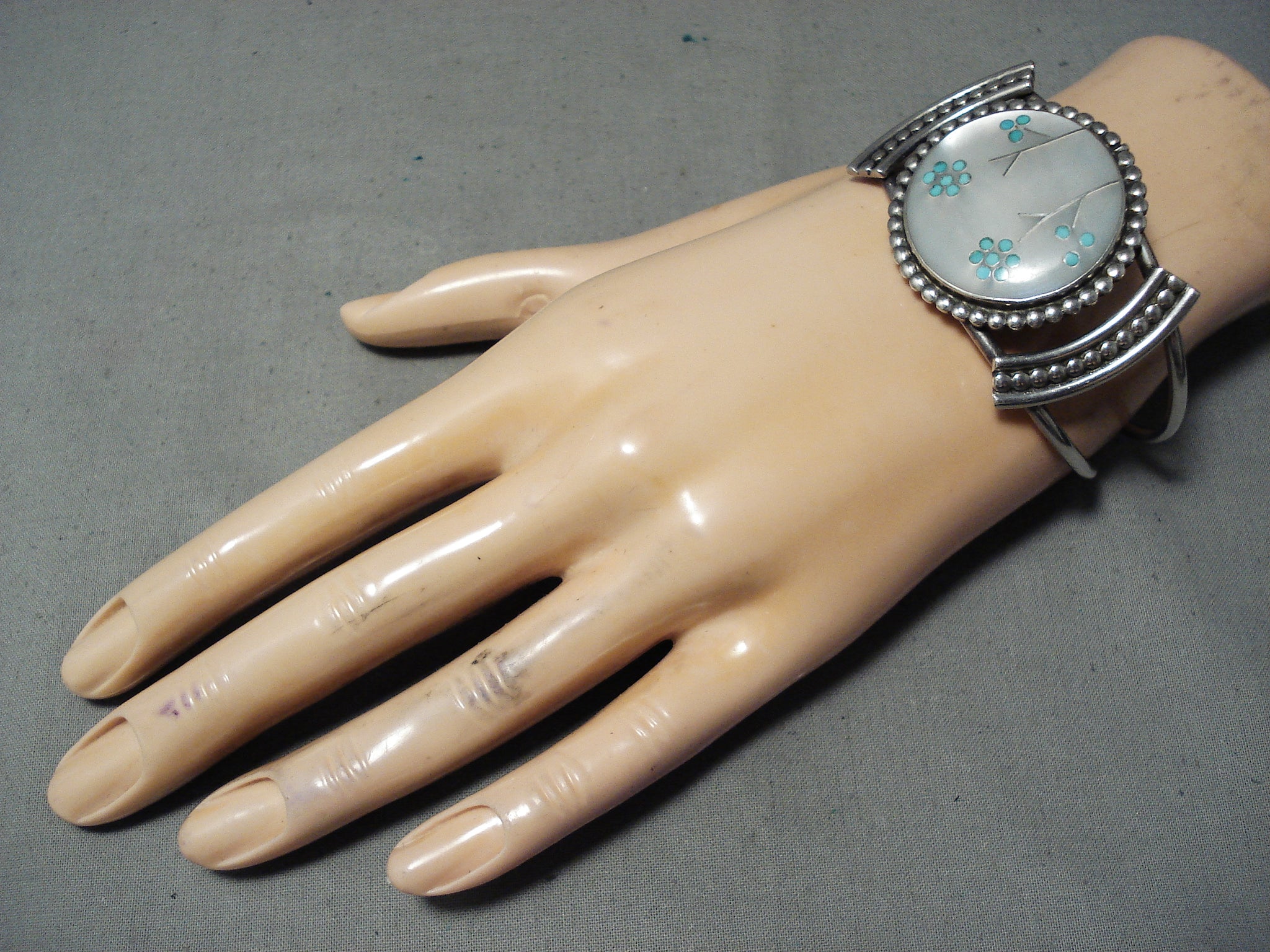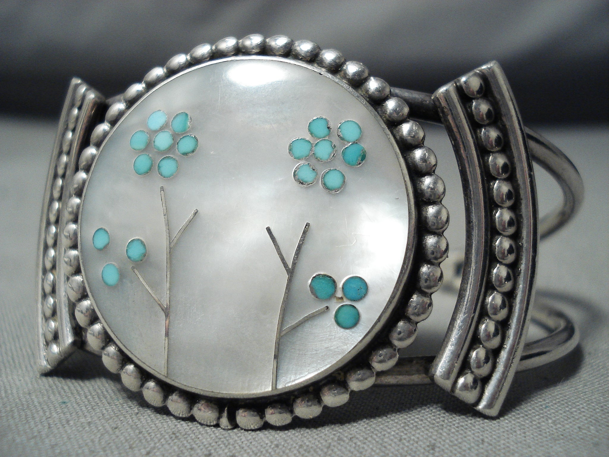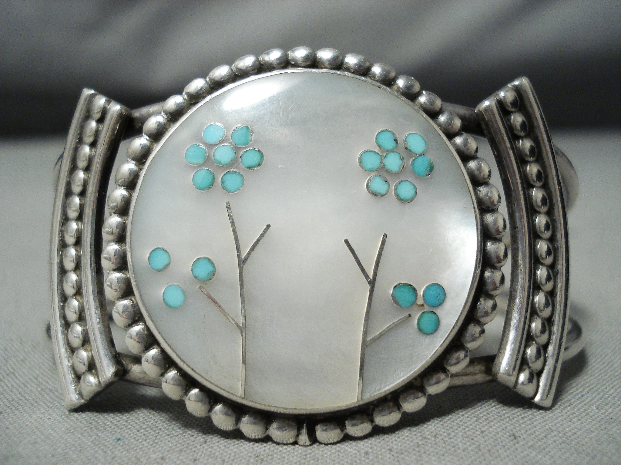 Flowers Of Turquoise Vintage Native American Zuni Sterling Silver Bracelet Old