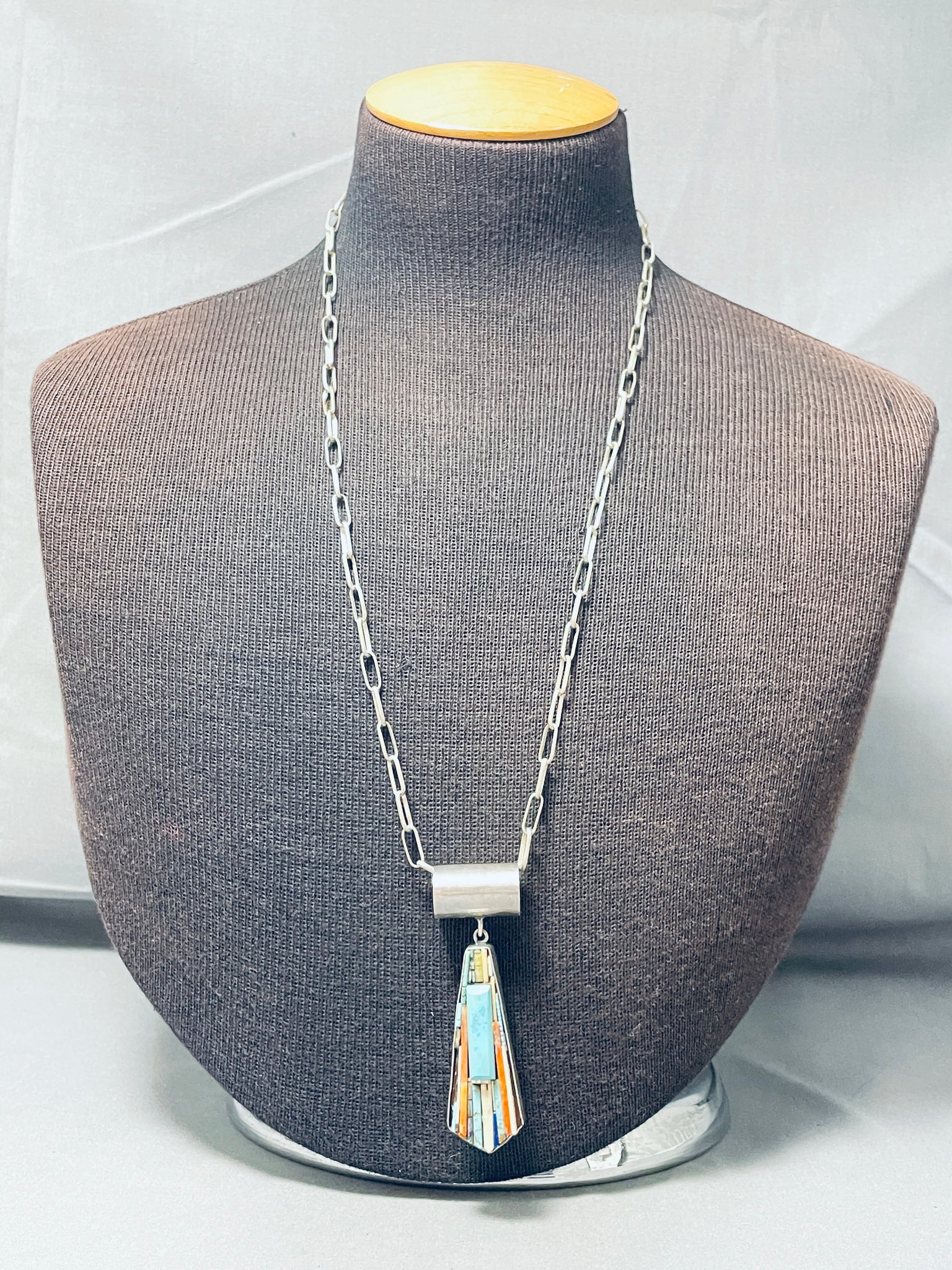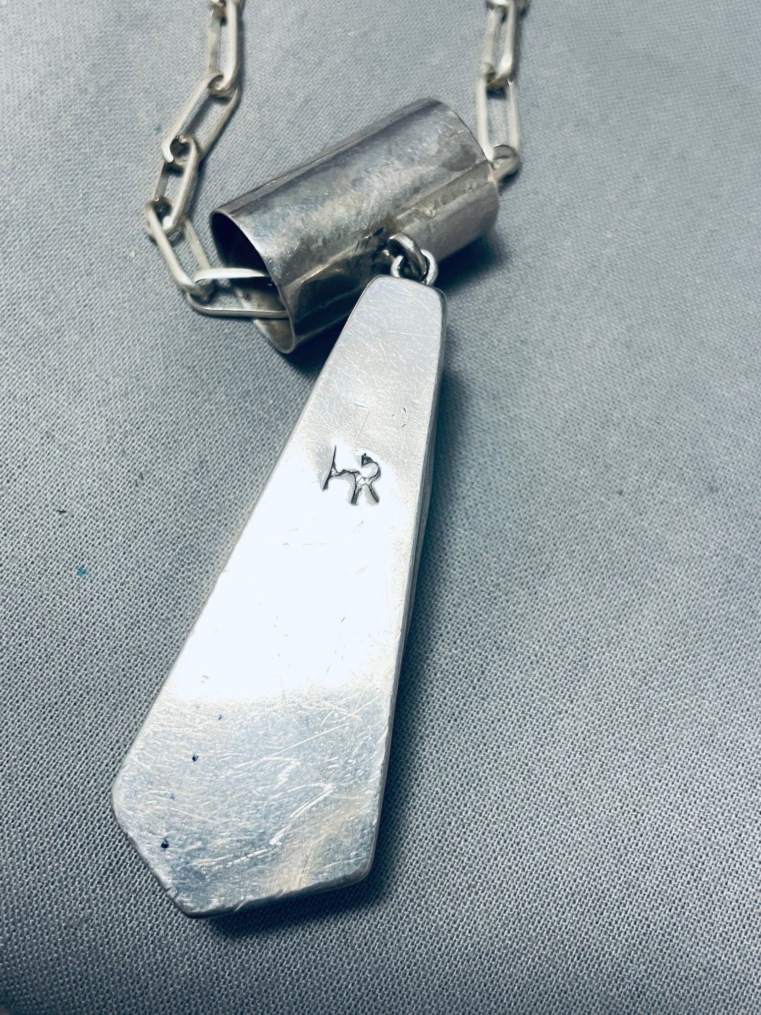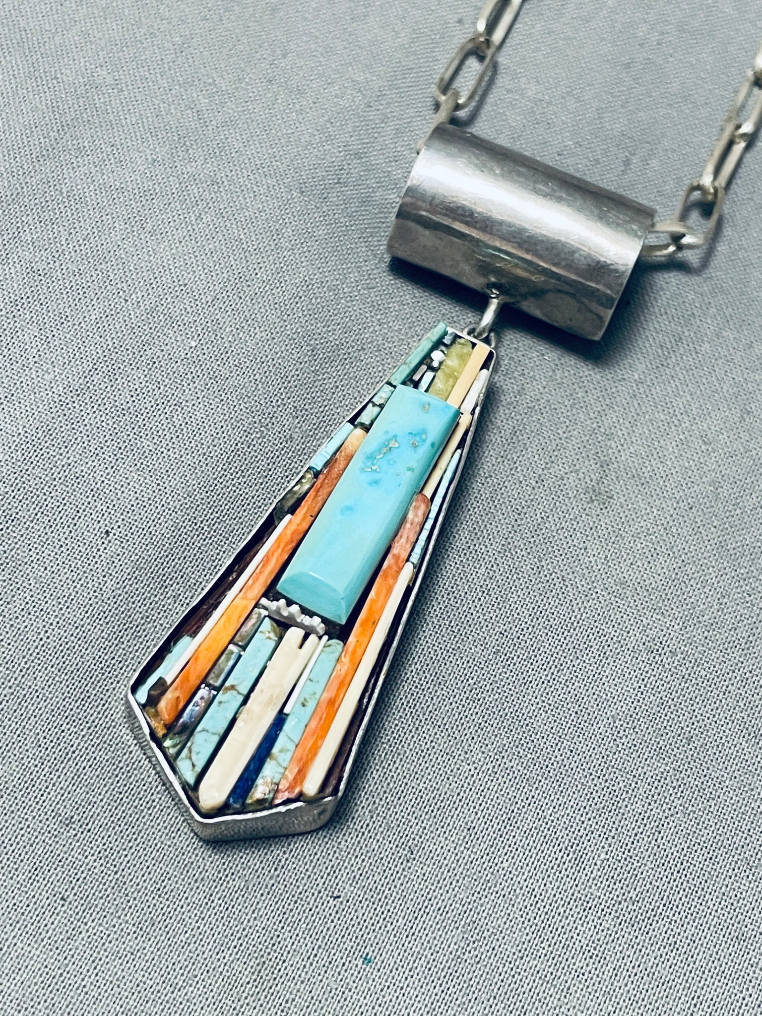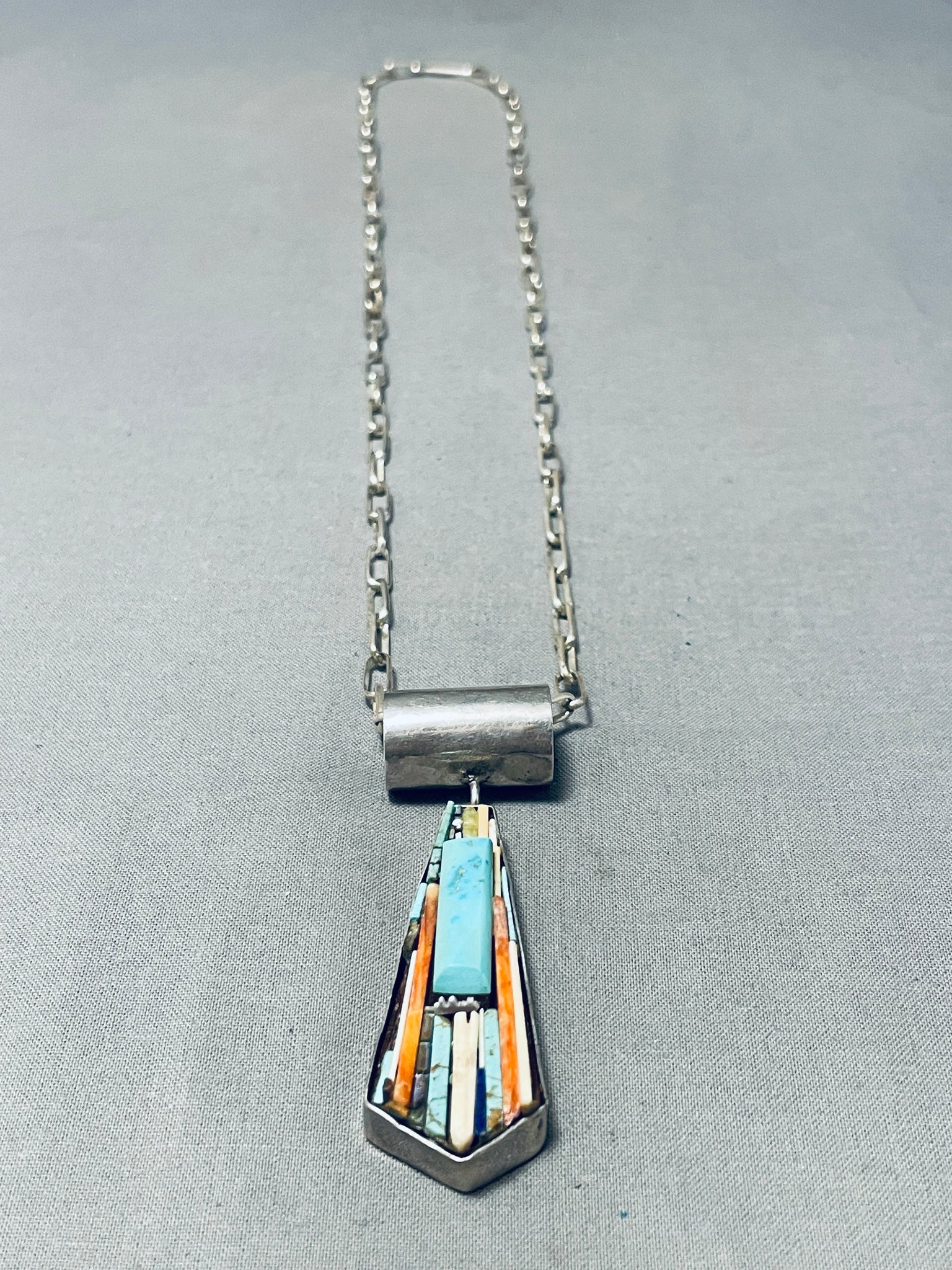 Focused Precise Artist Detail Vintage Native American Navajo Turquoise Sterling Silver Necklace
