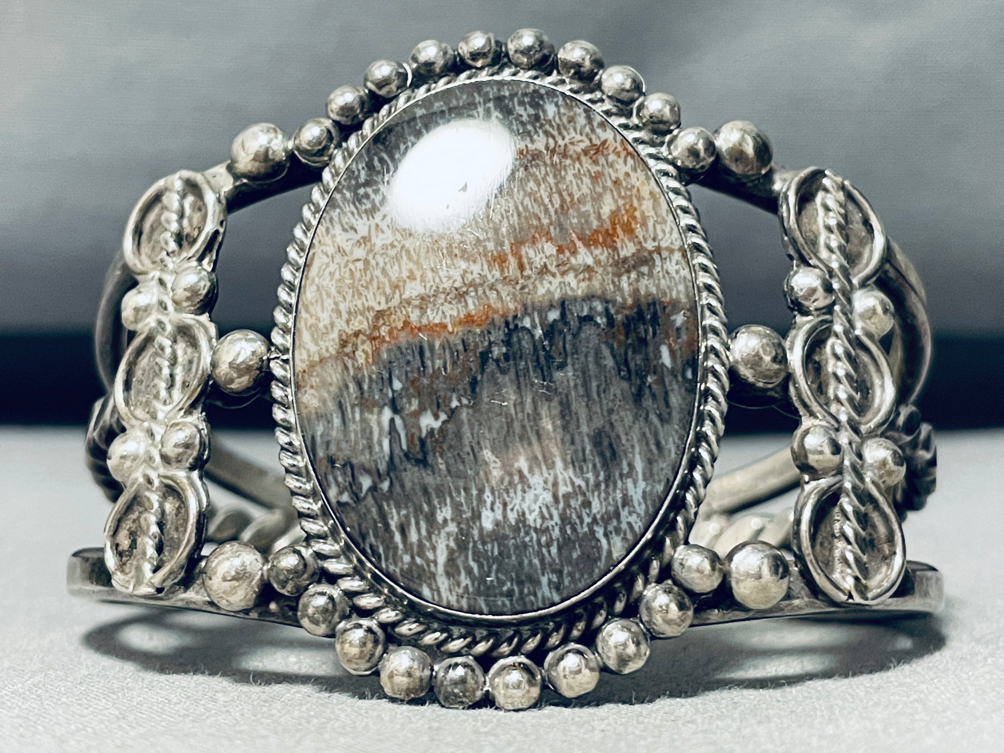 Foggy Petrified Wood Vintage Native American Navajo Sterling Silver Bracelet Old