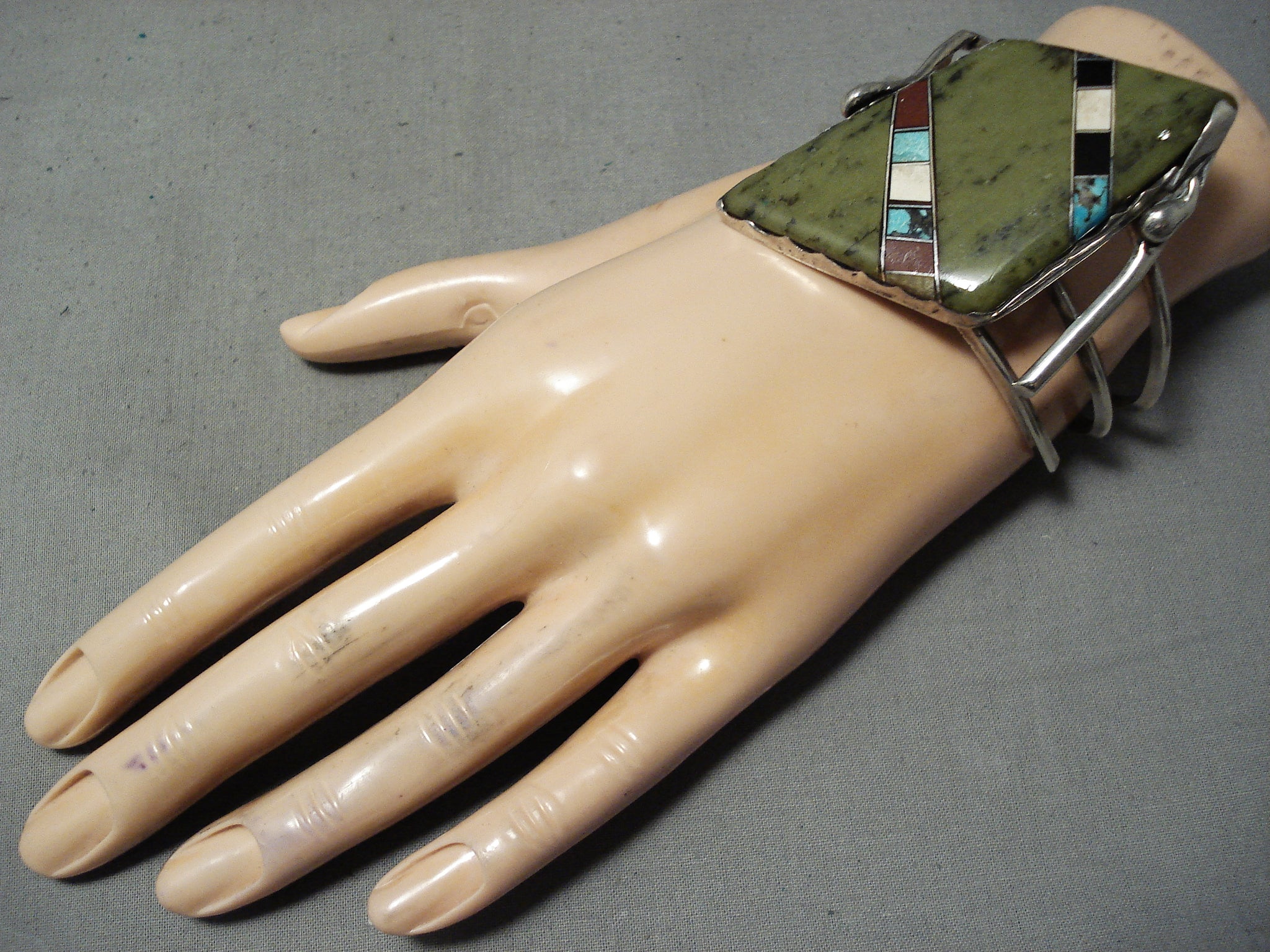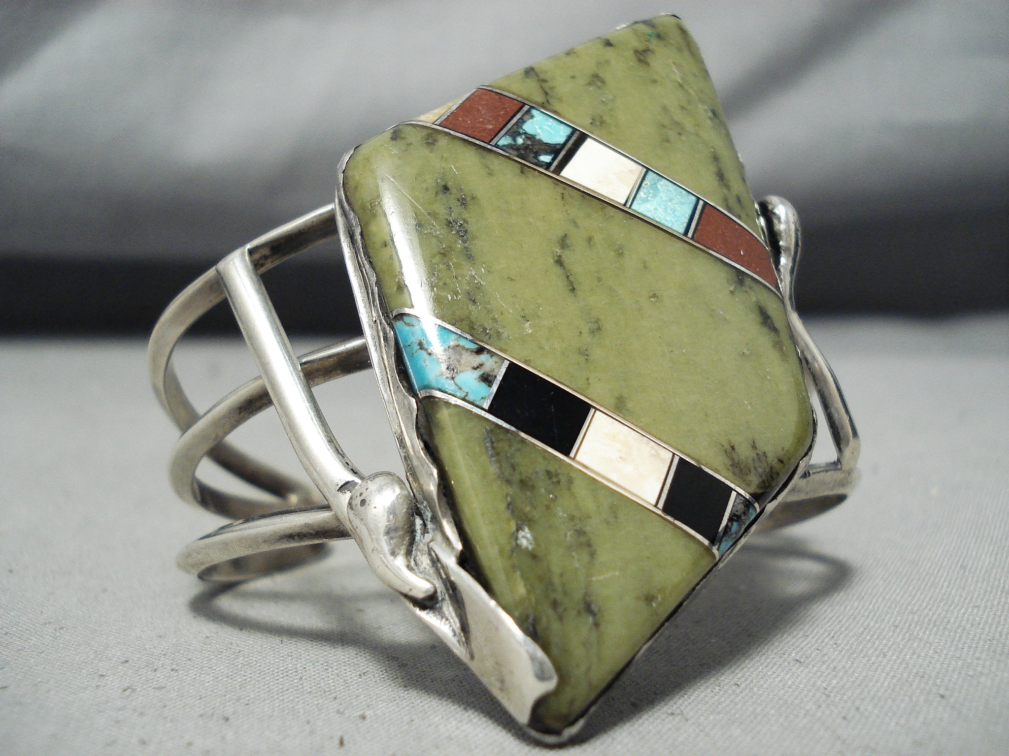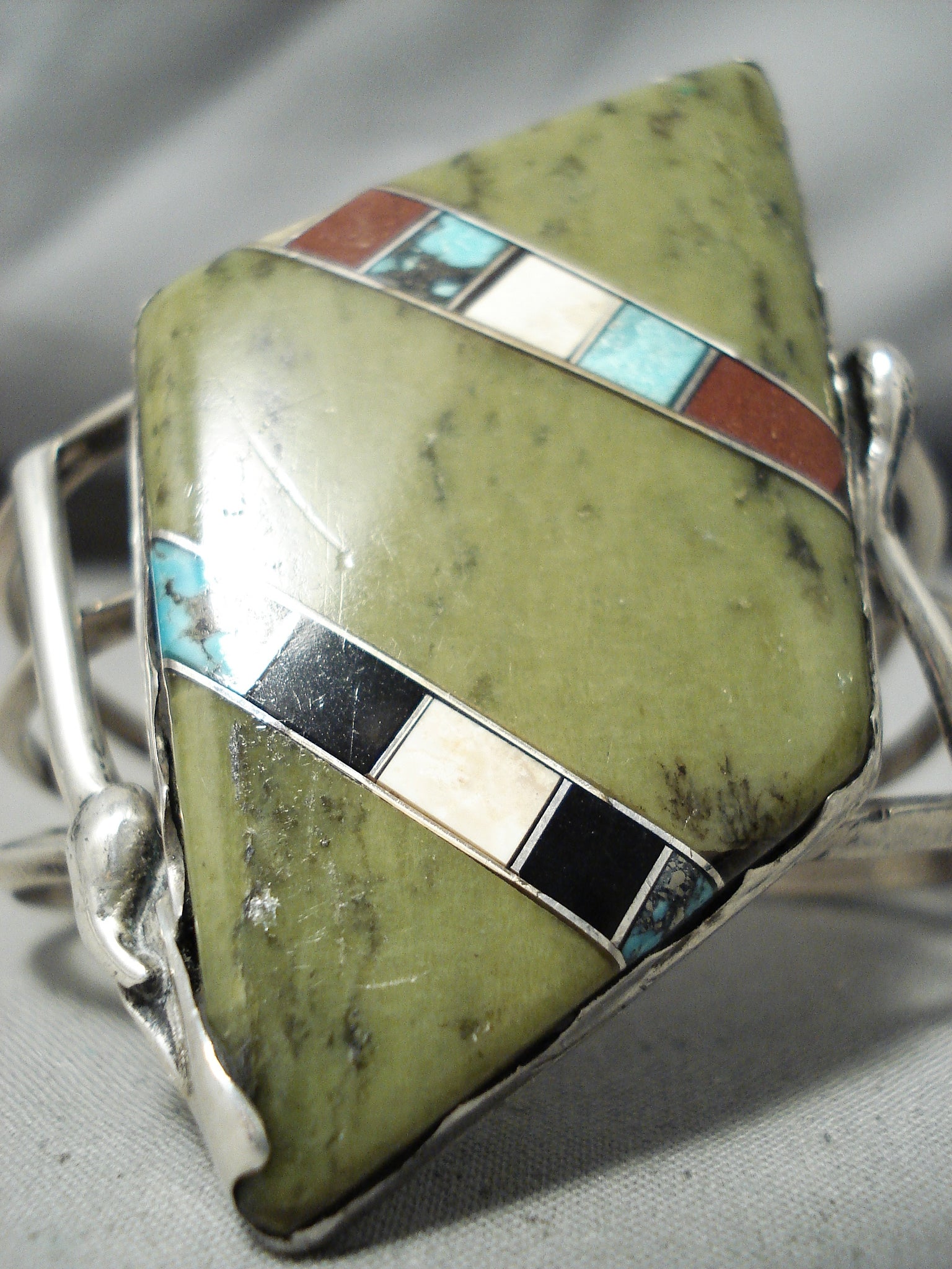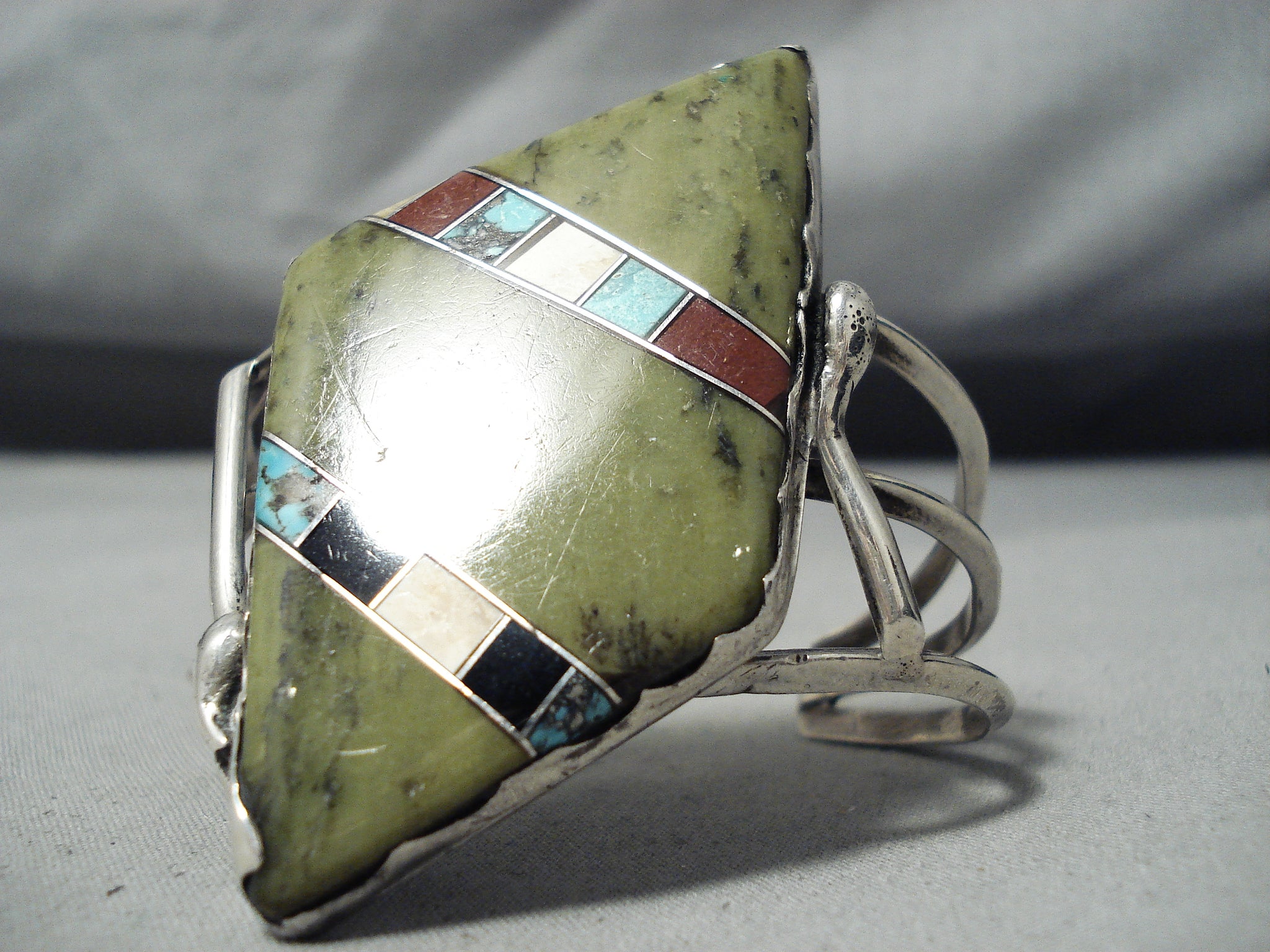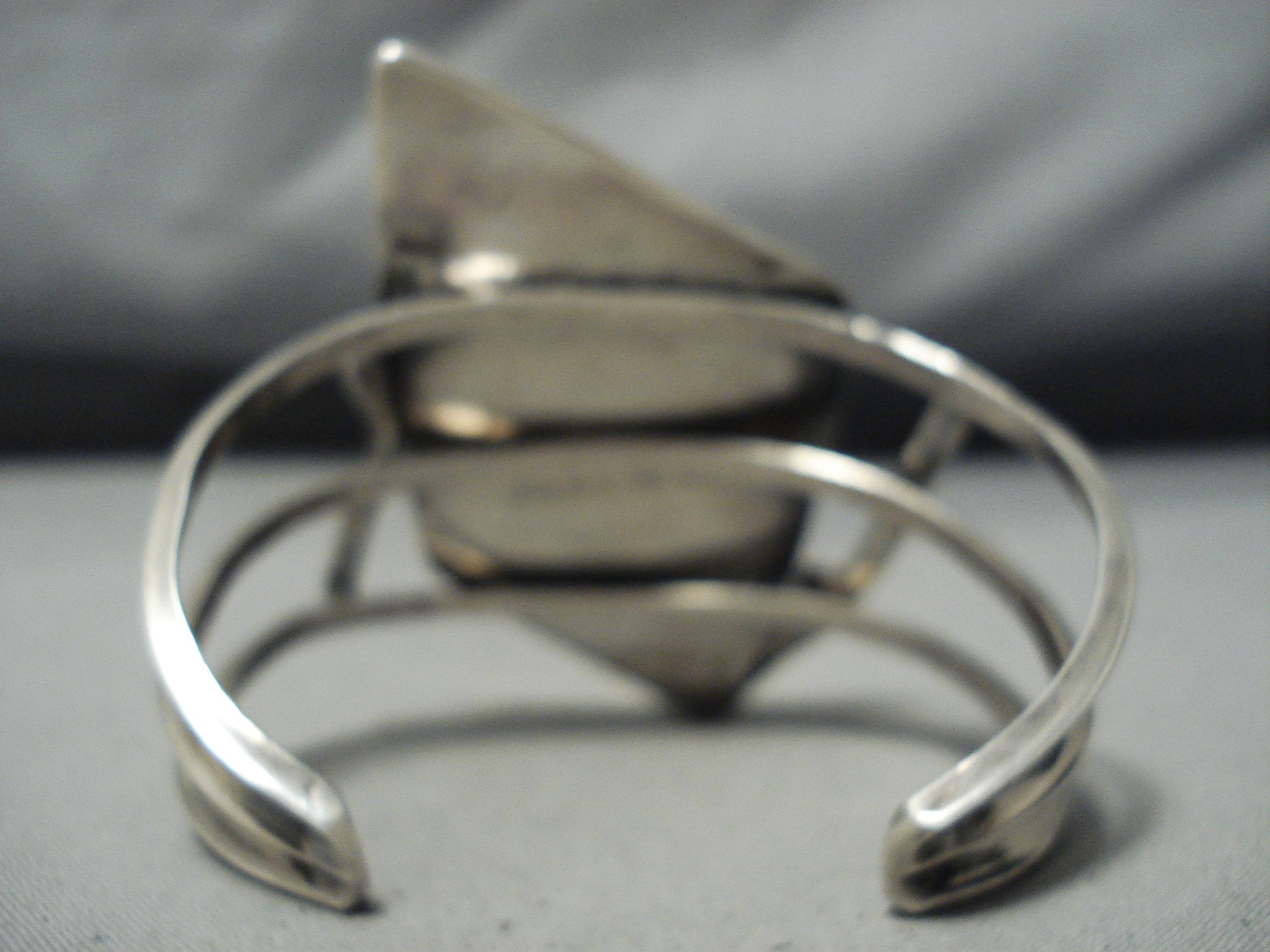 Gaint Vintage Native American Zuni Turquoise Signed Sterling Silver Turquoise Bracelet