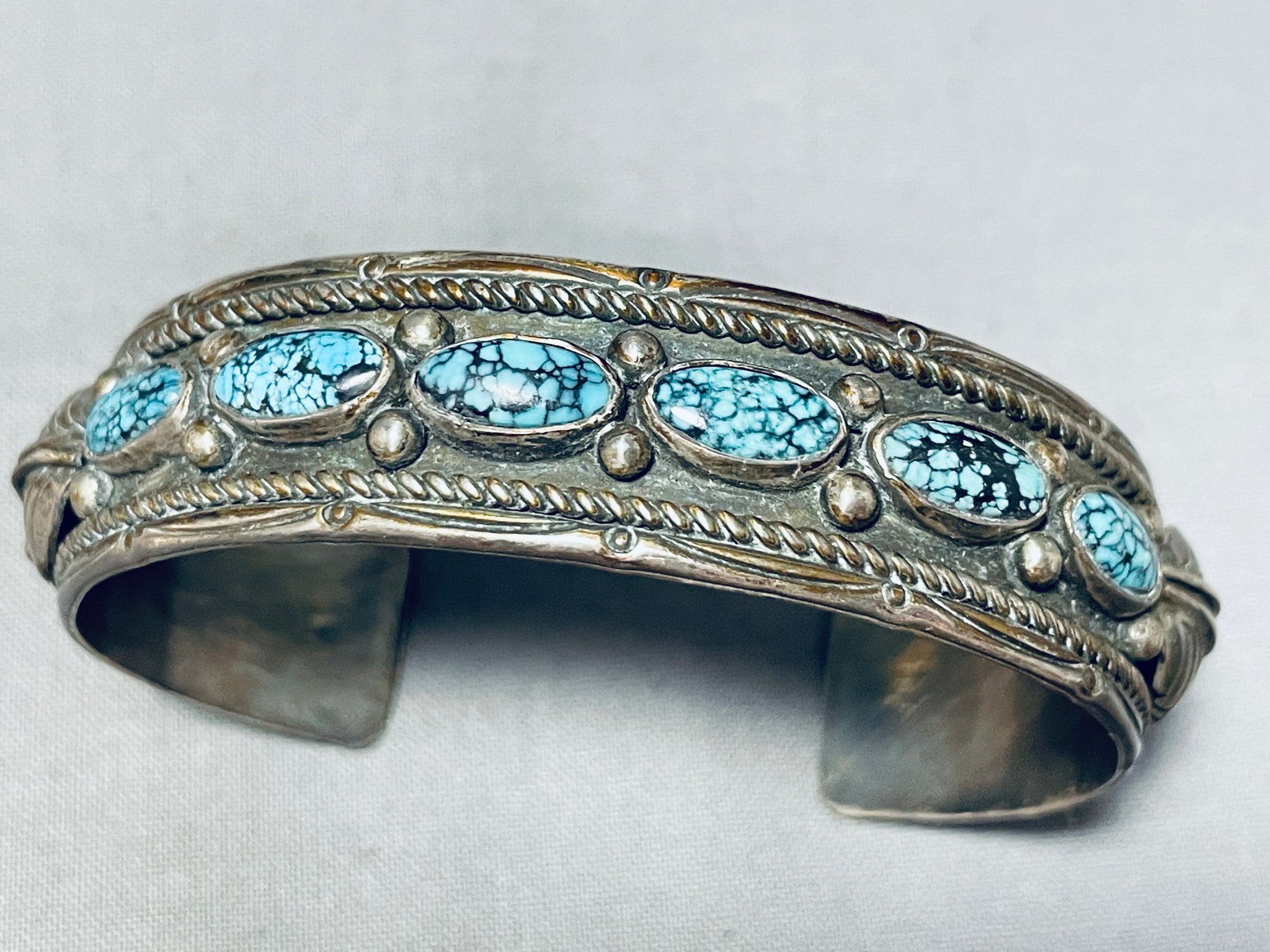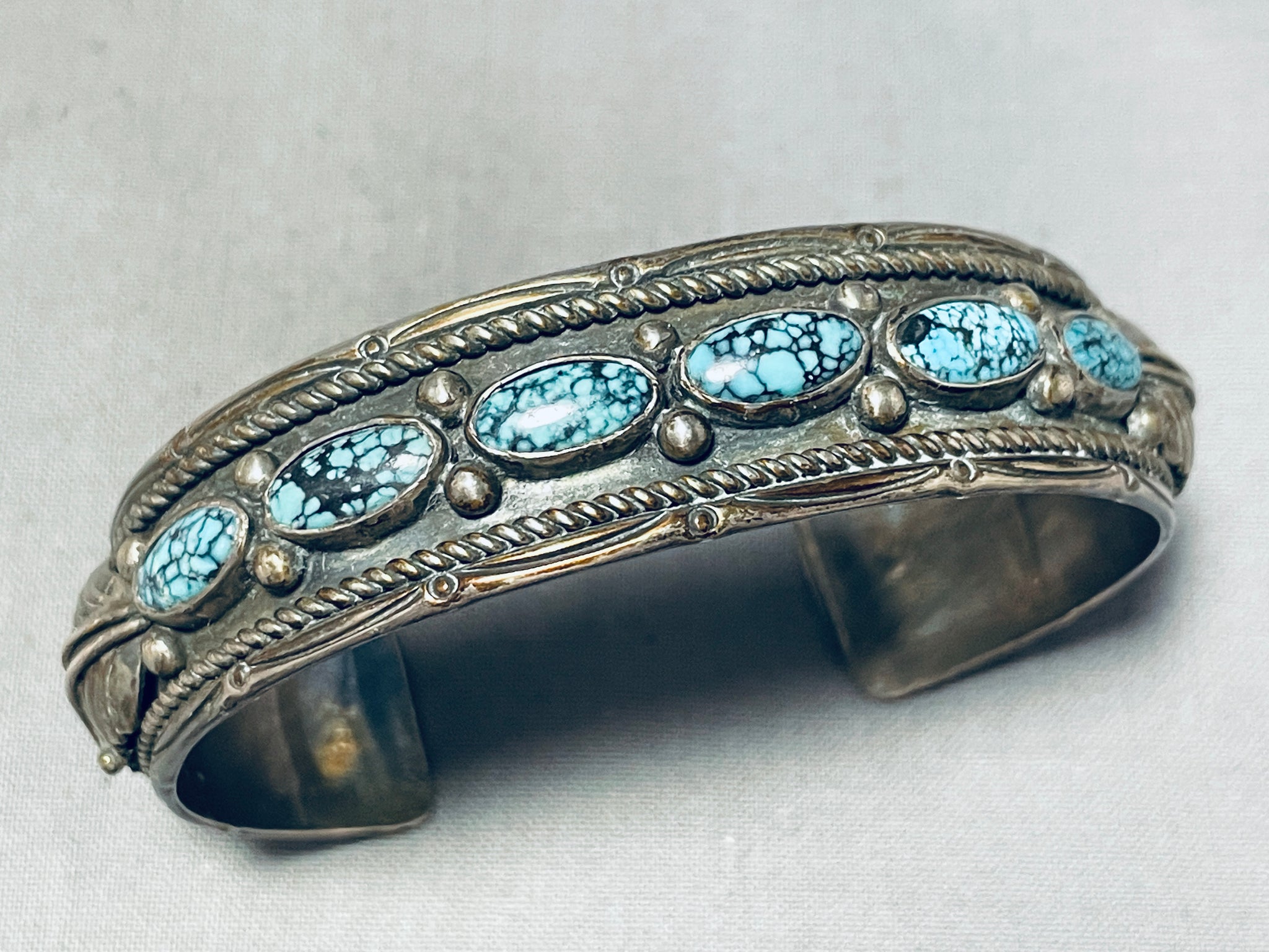 Gary Nez Superb Spiderweb Turquoise!! Vintage Native American Navajo Sterling Silver Bracelet