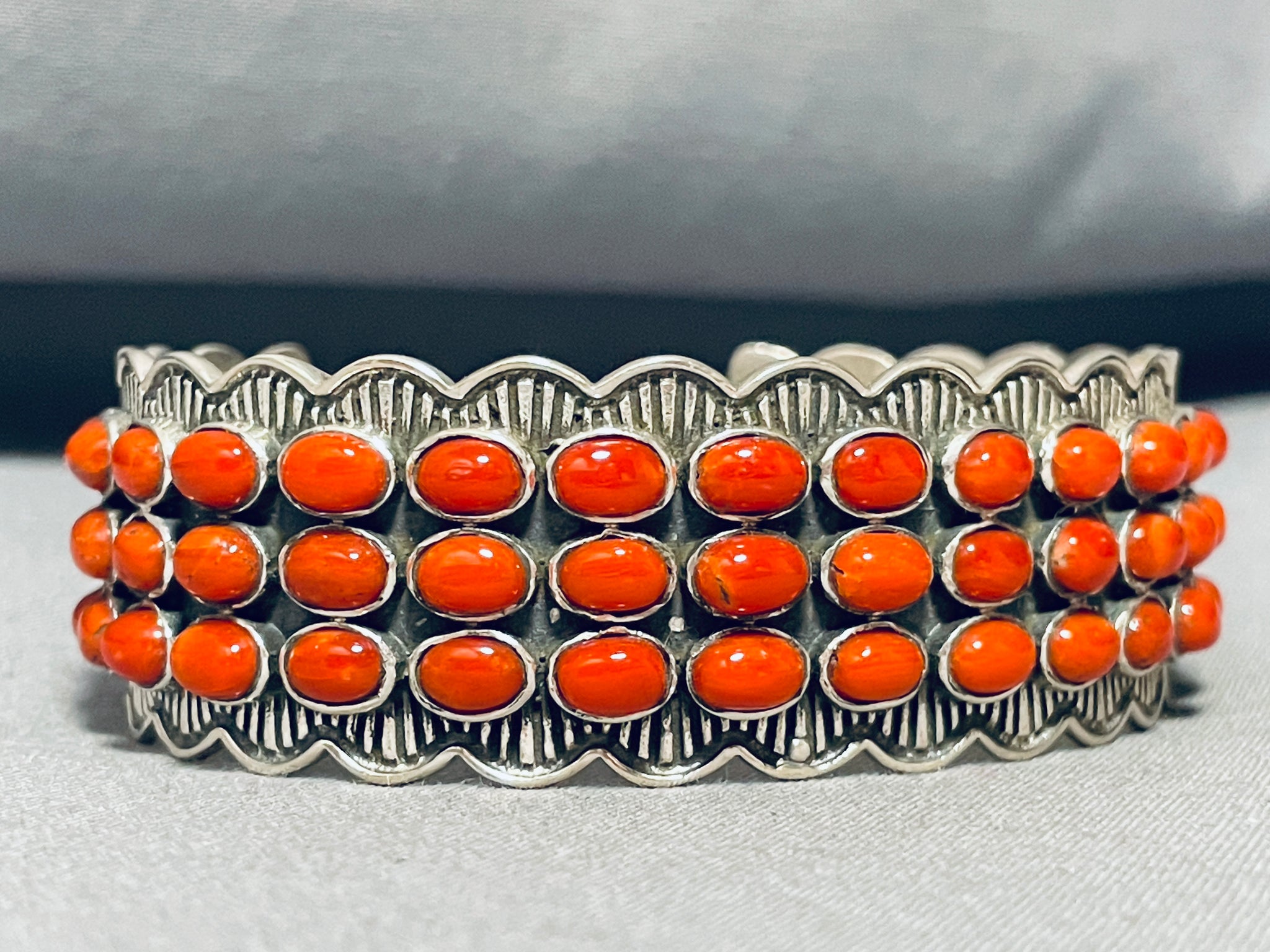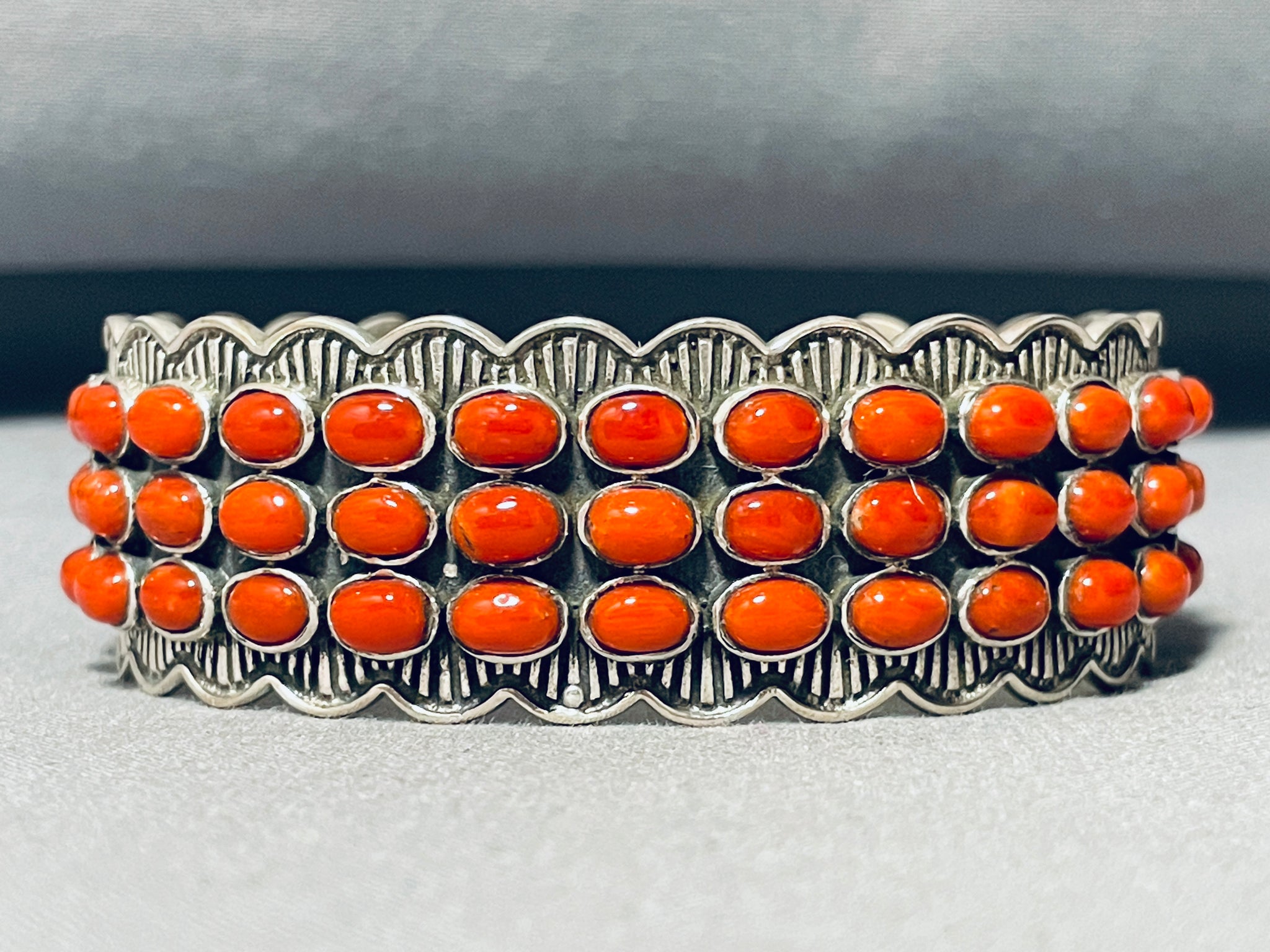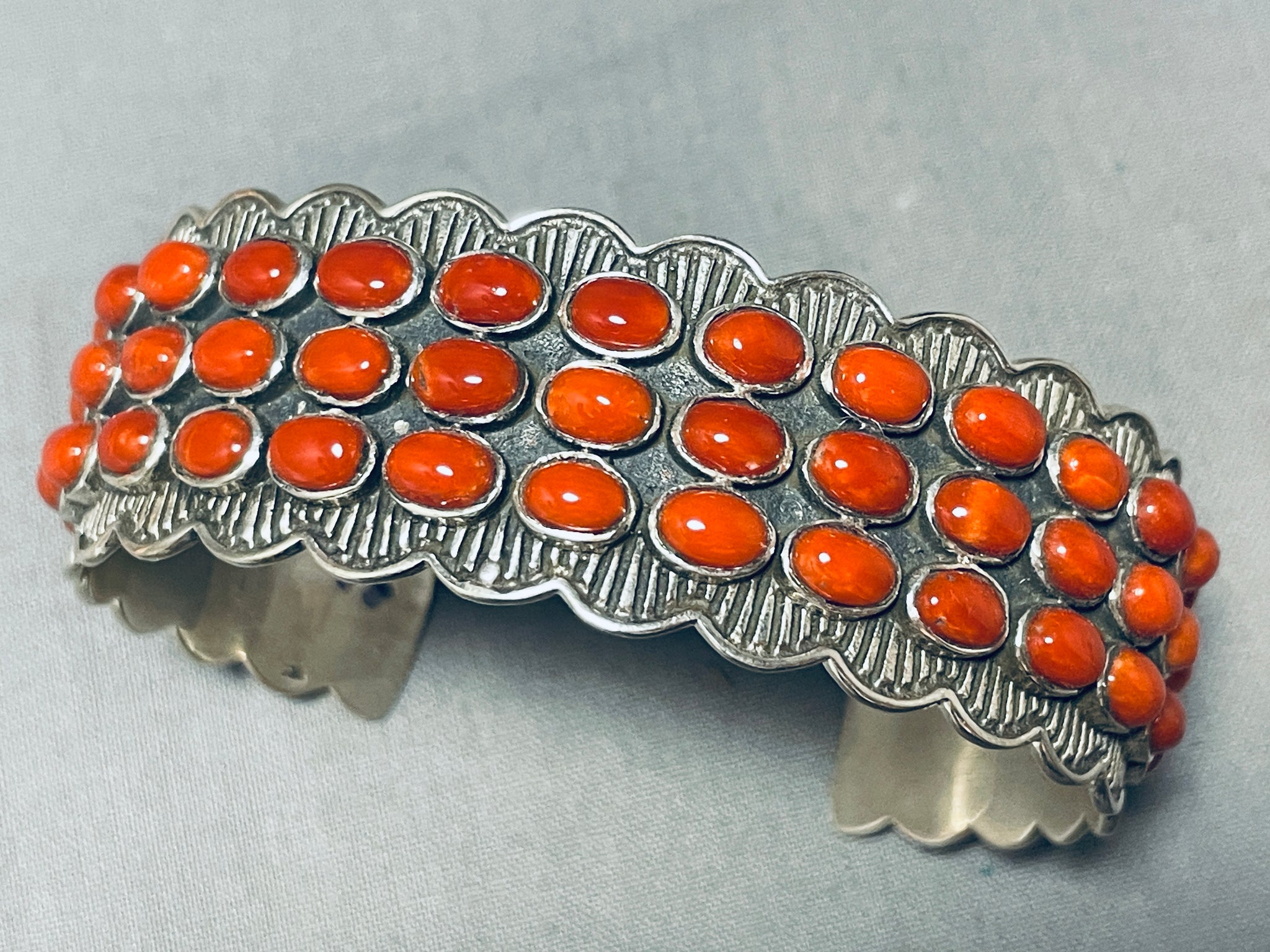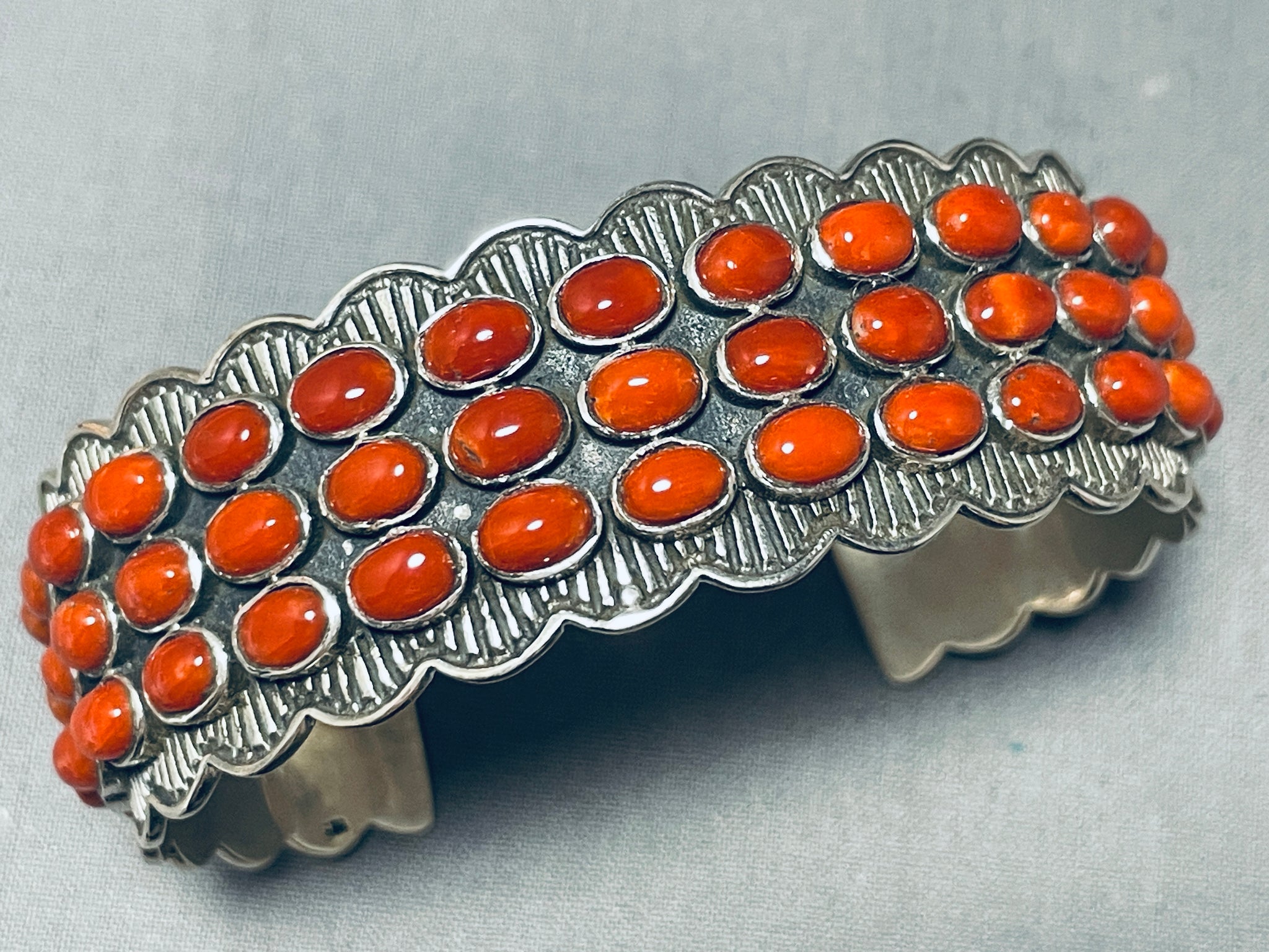 Gasp!! Fabulous Native American Navajo Circle Corals Sterling Silver Bracelet