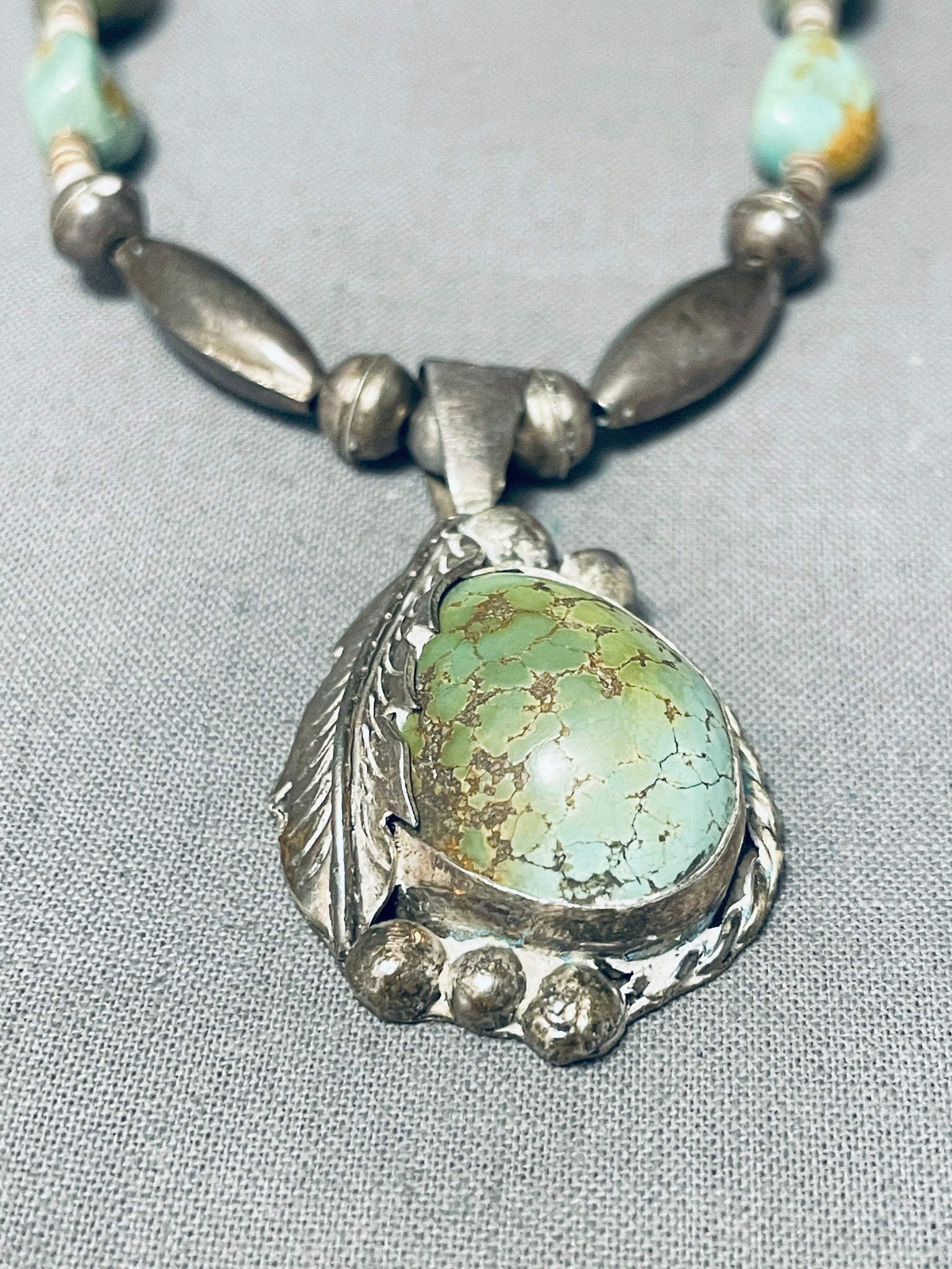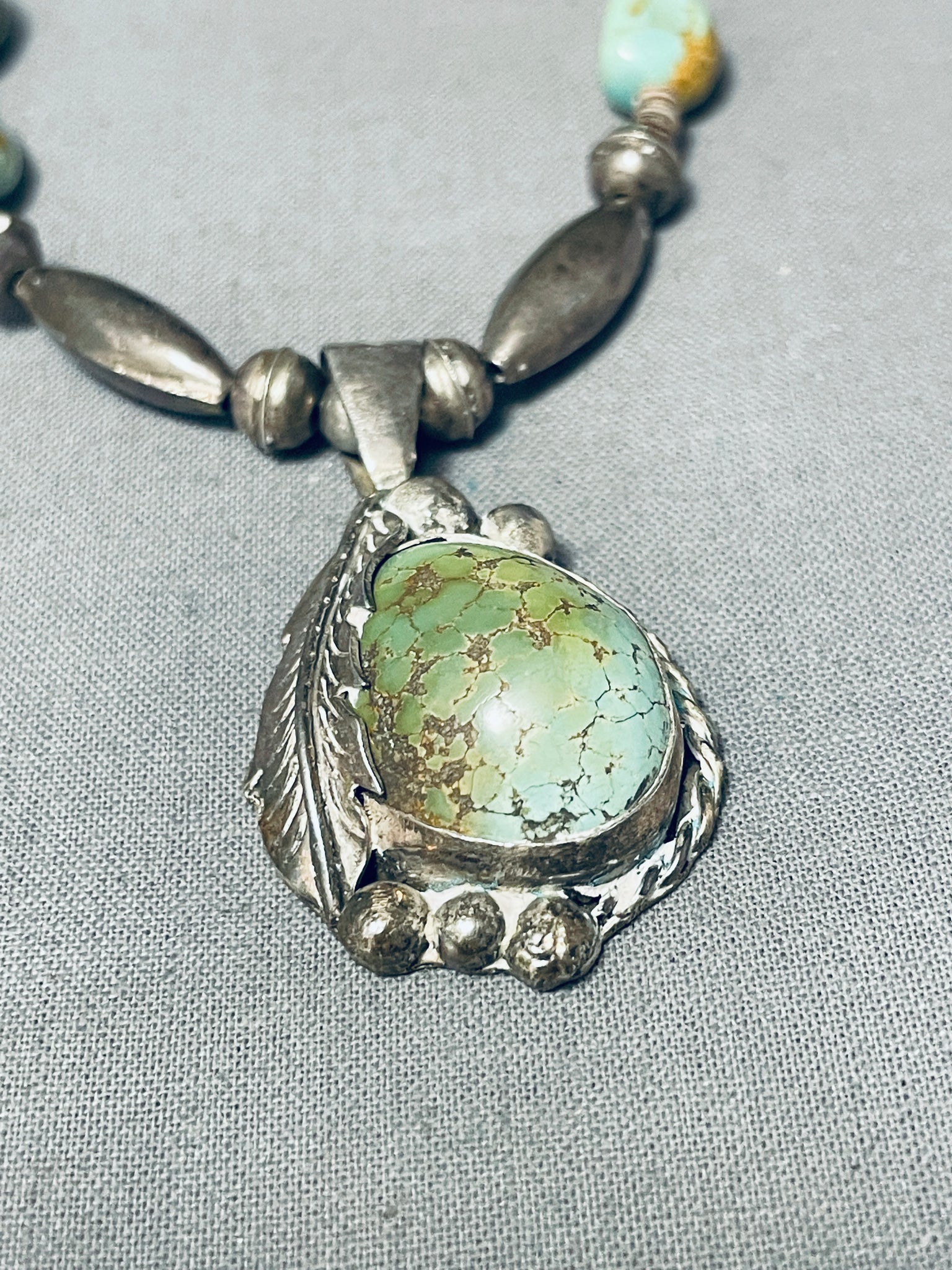 Gasp! Vintage Native American Navajo Royston Turquoise Sterling Silver Necklace