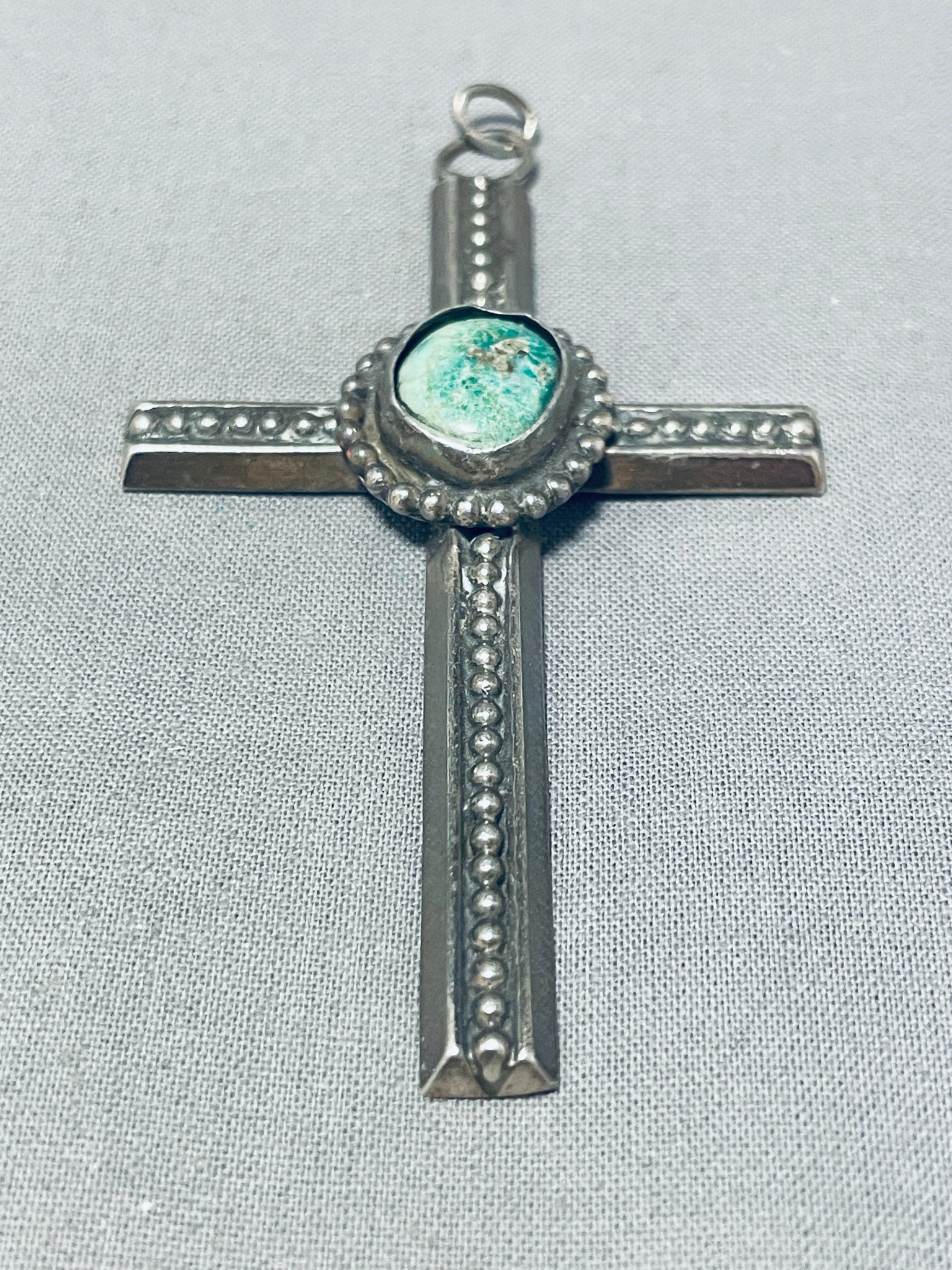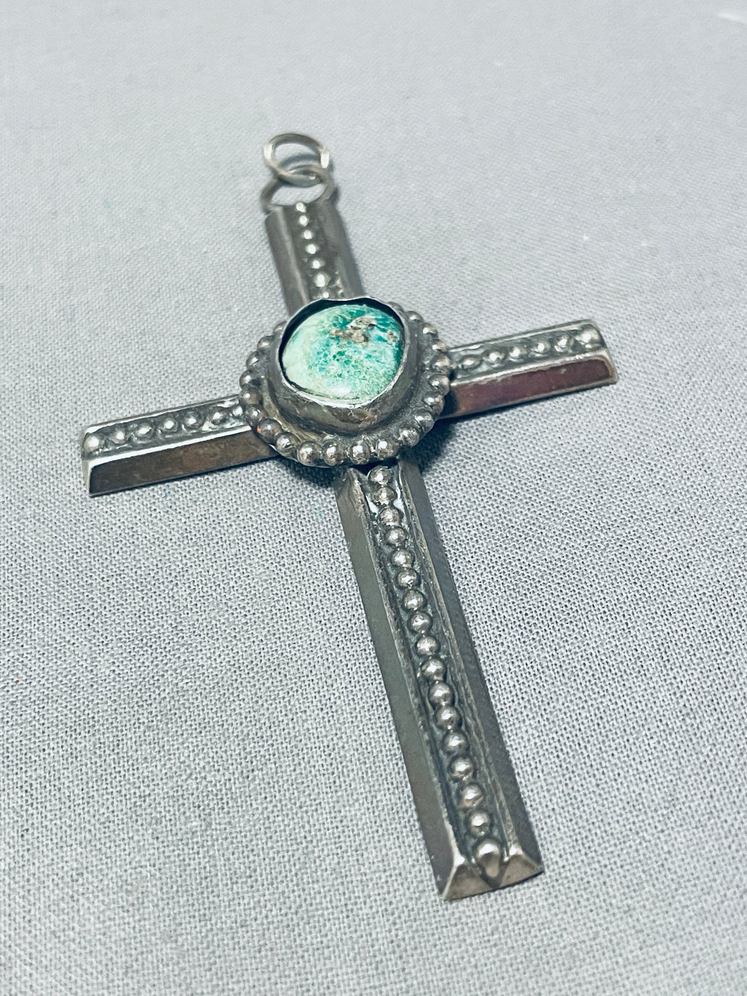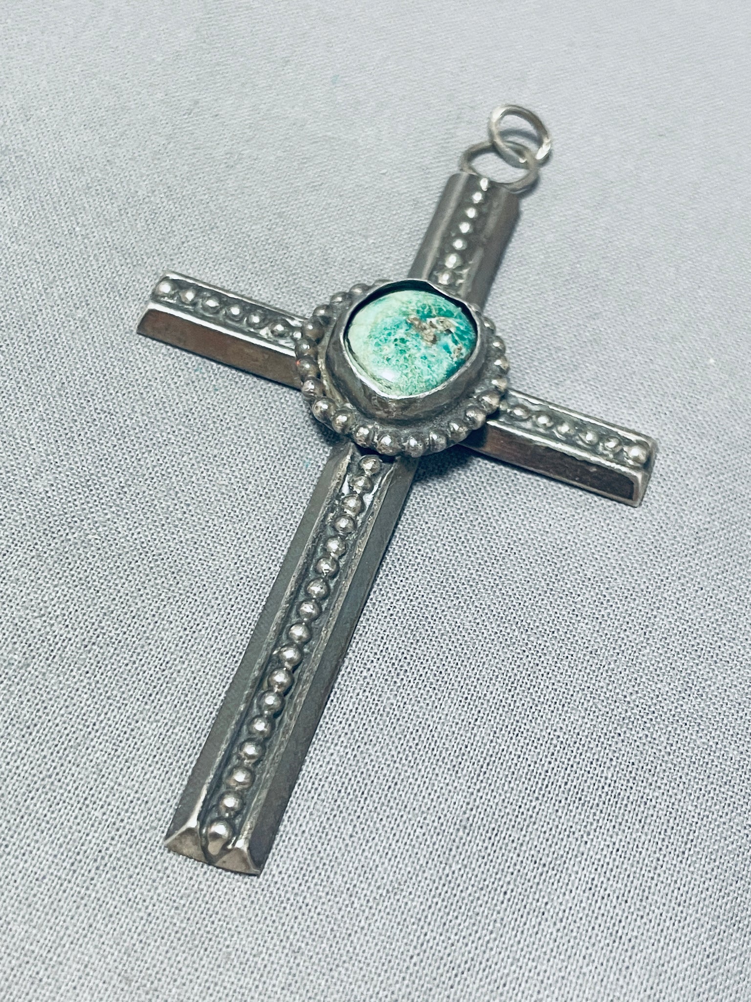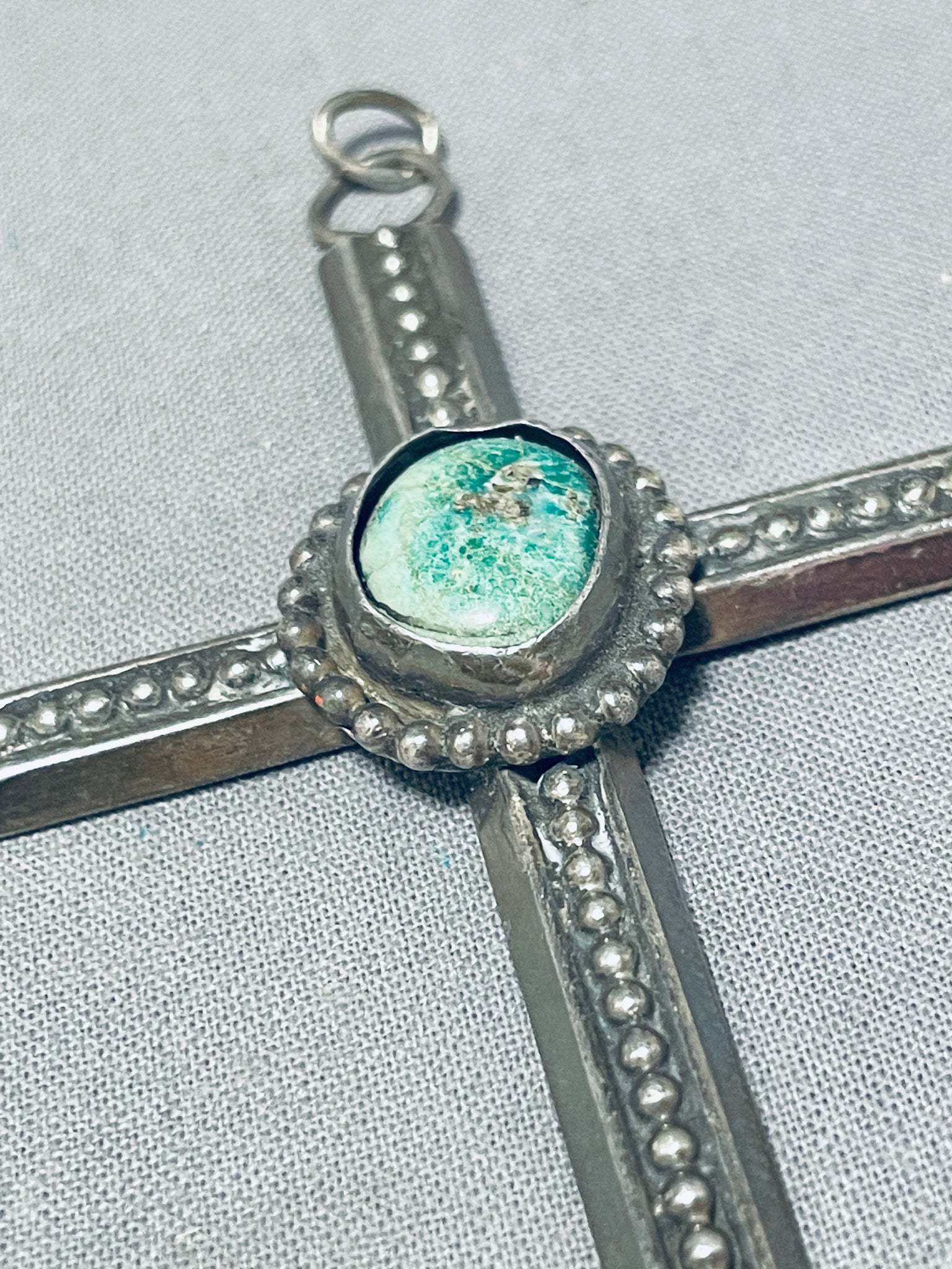 Genuine Vintage Native American Navajo Green Turquoise Sterling Silver Cross Pendant