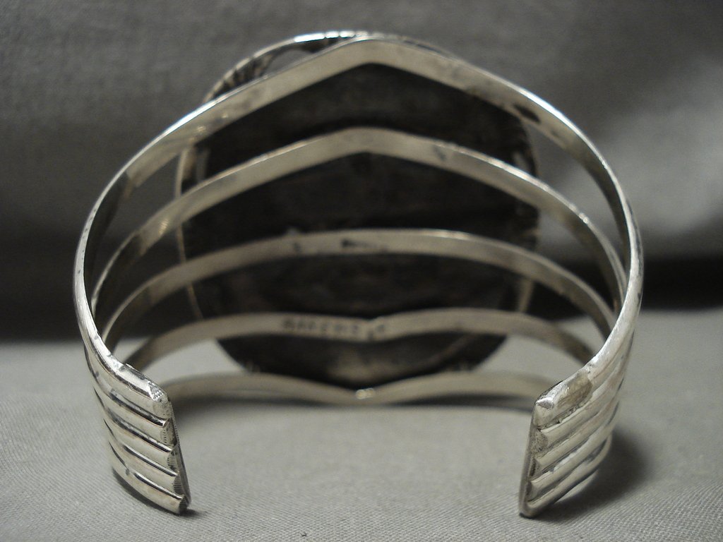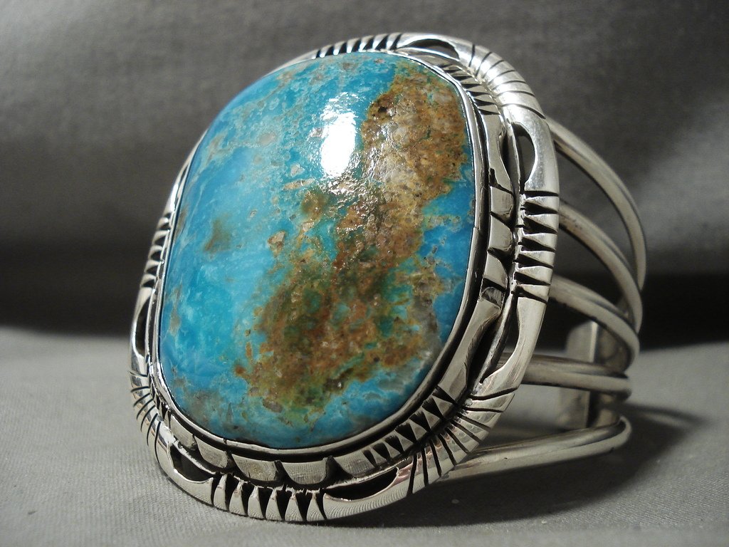 Giant Navajo Pilot Mntn Turquoise Native American Jewelry Silver Bracelet0 Wow!