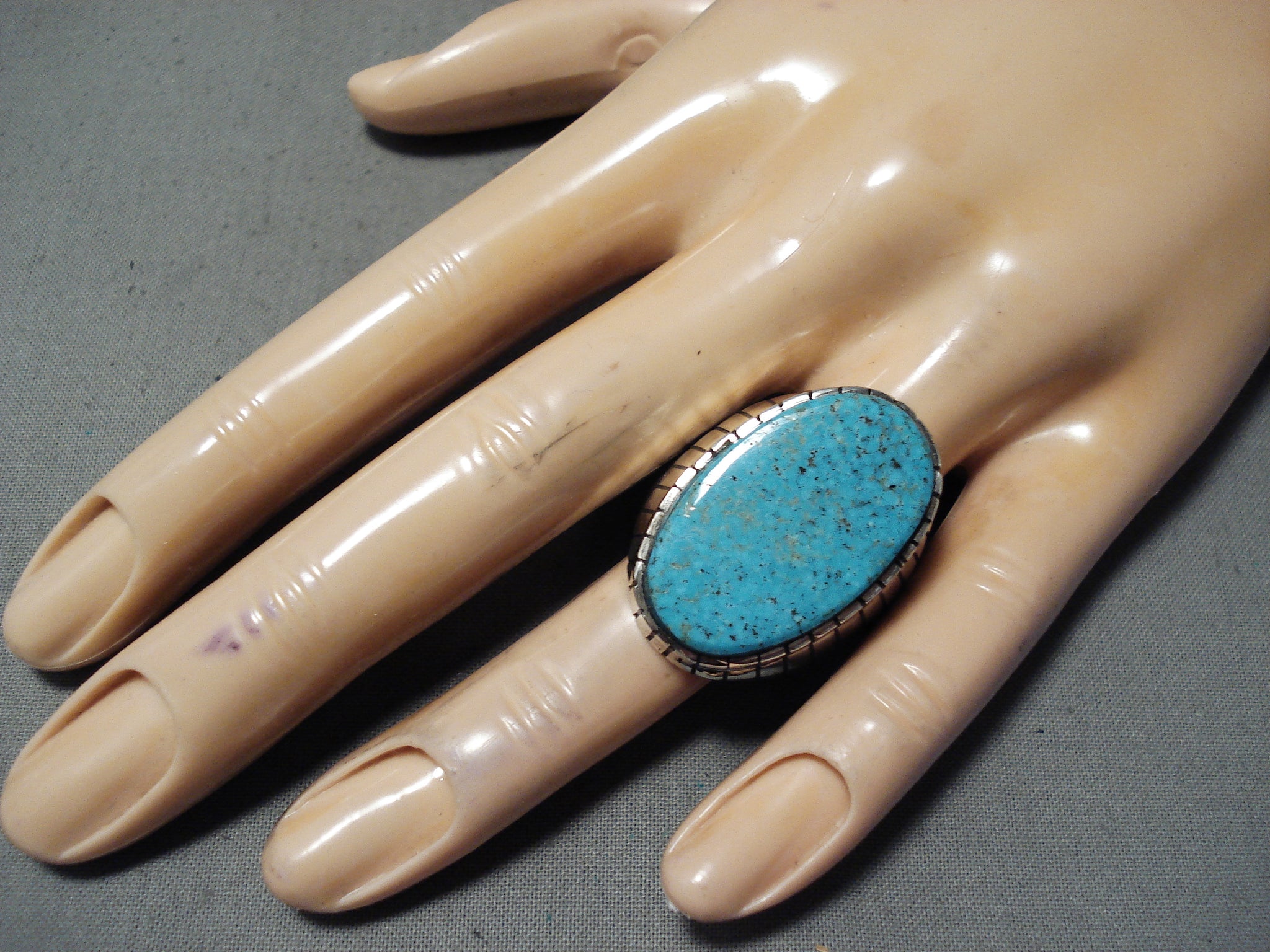 Gigantic Navajo Kingman Turquoise Sterling Silver Ring Native American