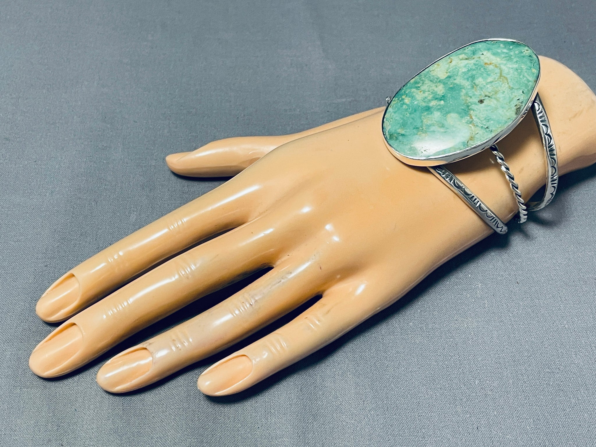 Gigantic San Felipe Green Turquoise Sterling Silver Bracelet