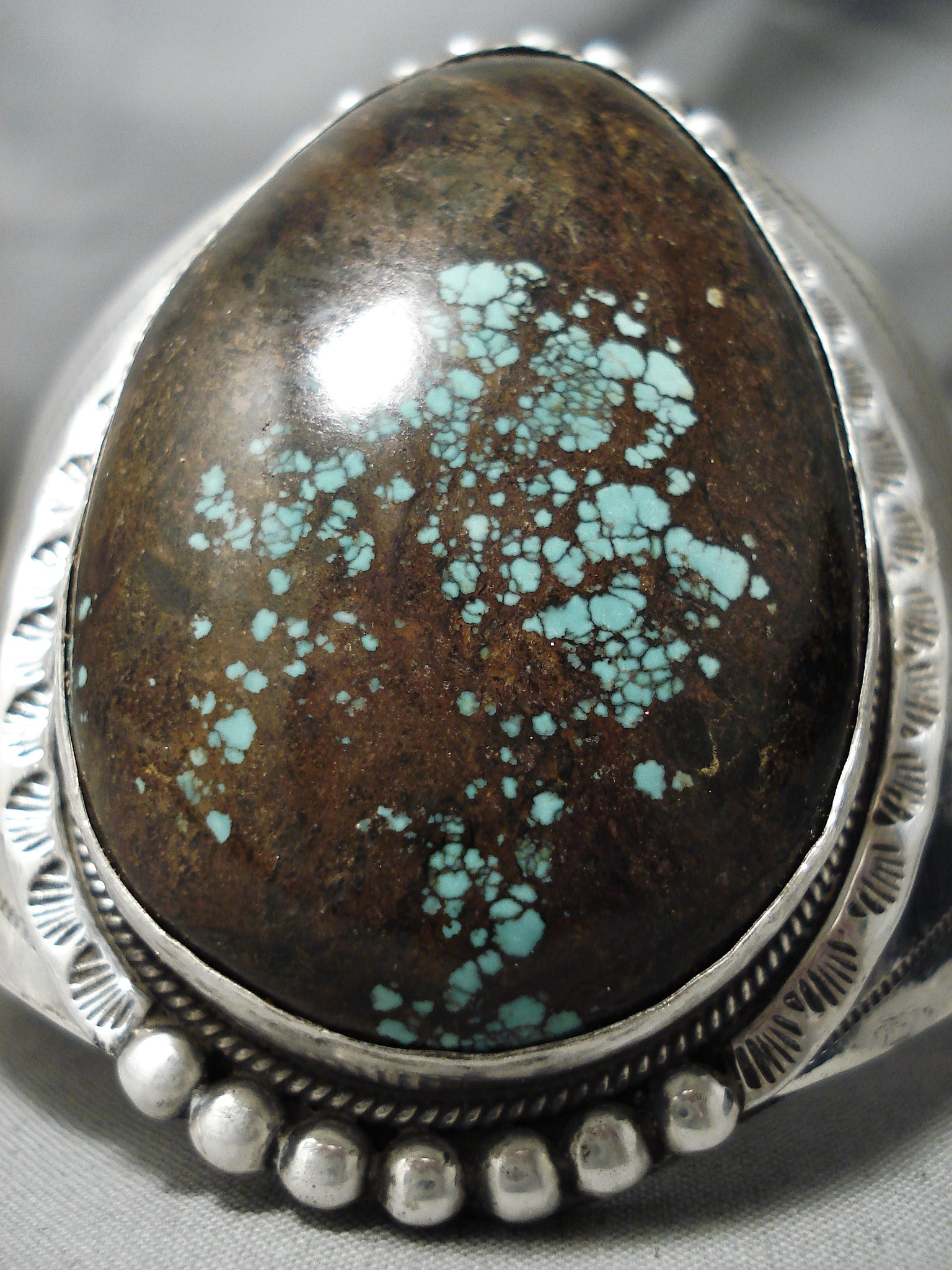 Gigantic Vintage Native American Navajo Green Bisbee Turquoise Sterling Silver Bracelet Cuff