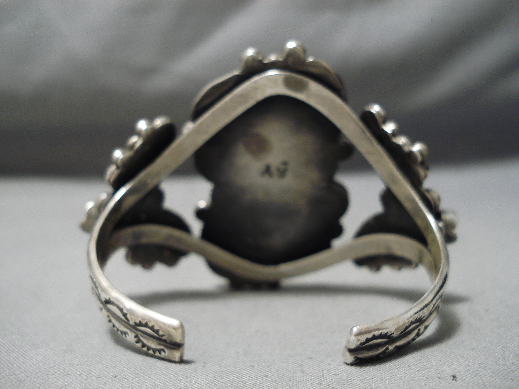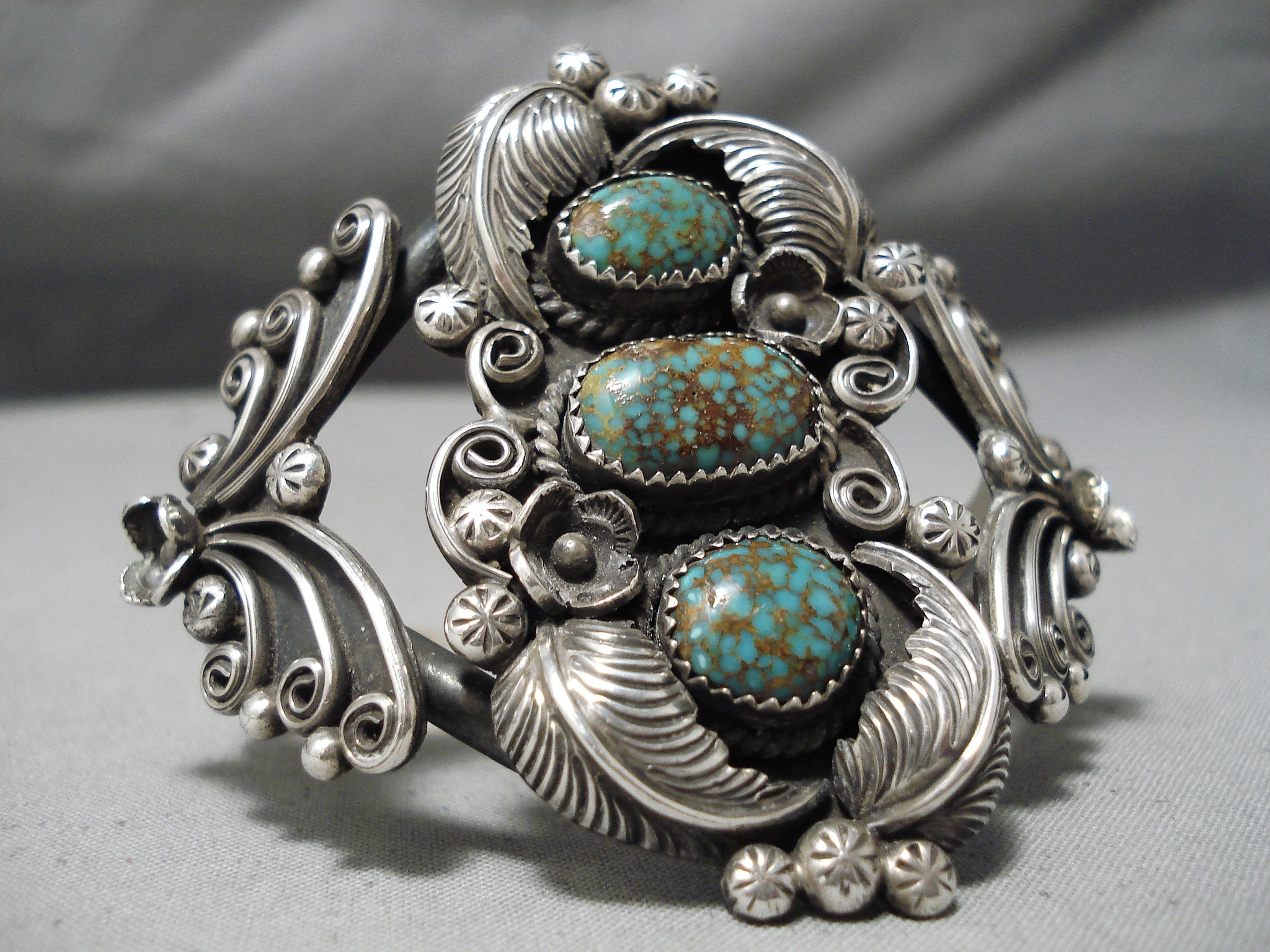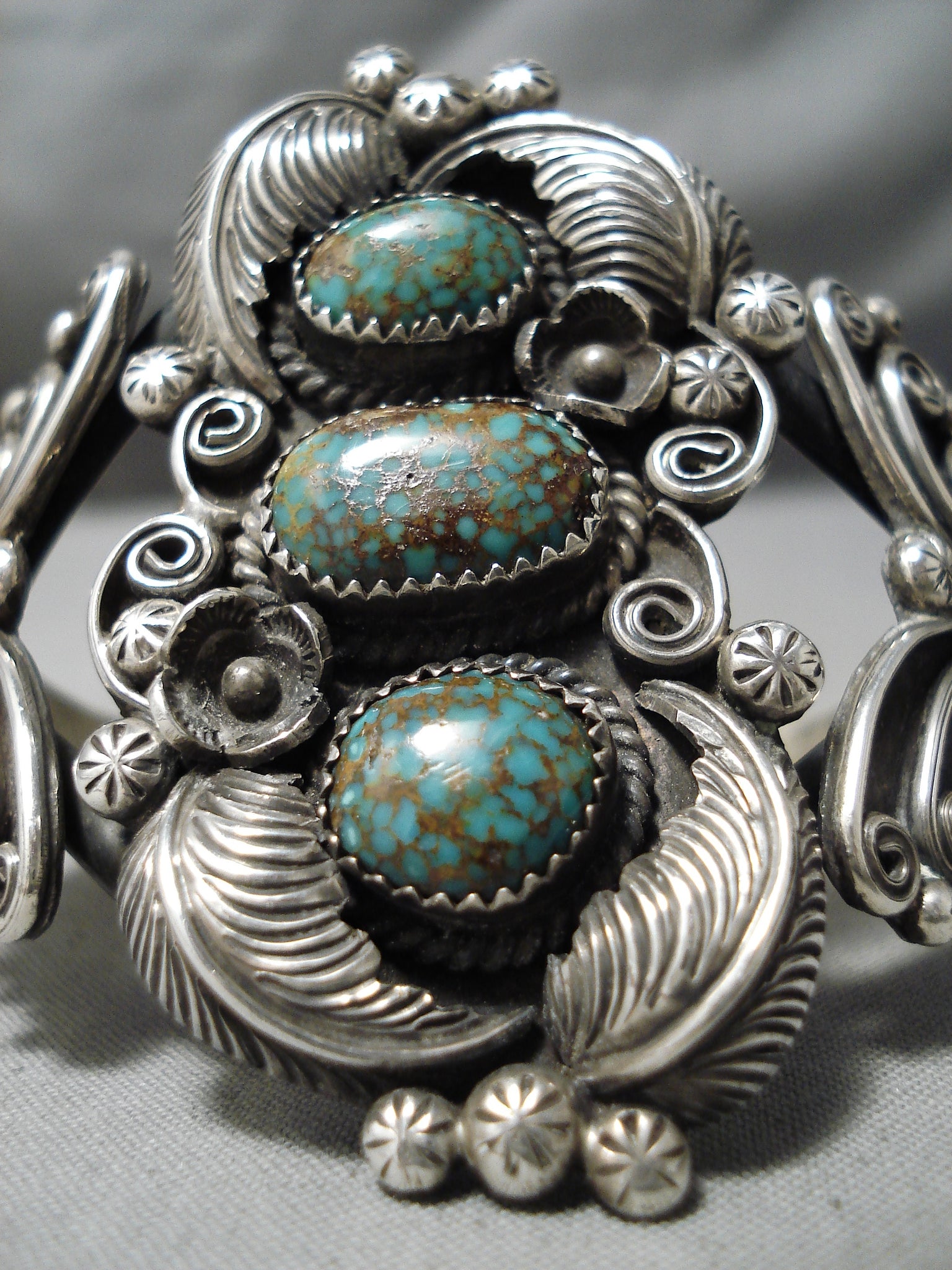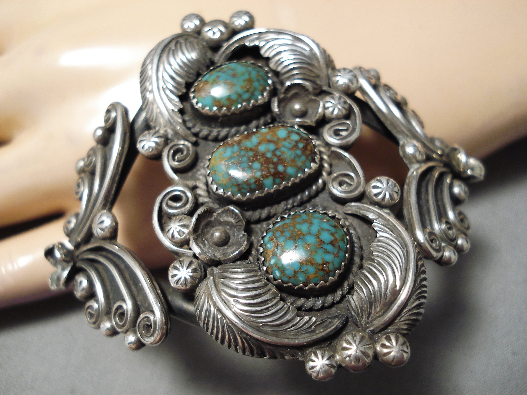Gigantic Vintage Native American Navajo Royston Turquoise Sterling Silver Leaf Bracelet