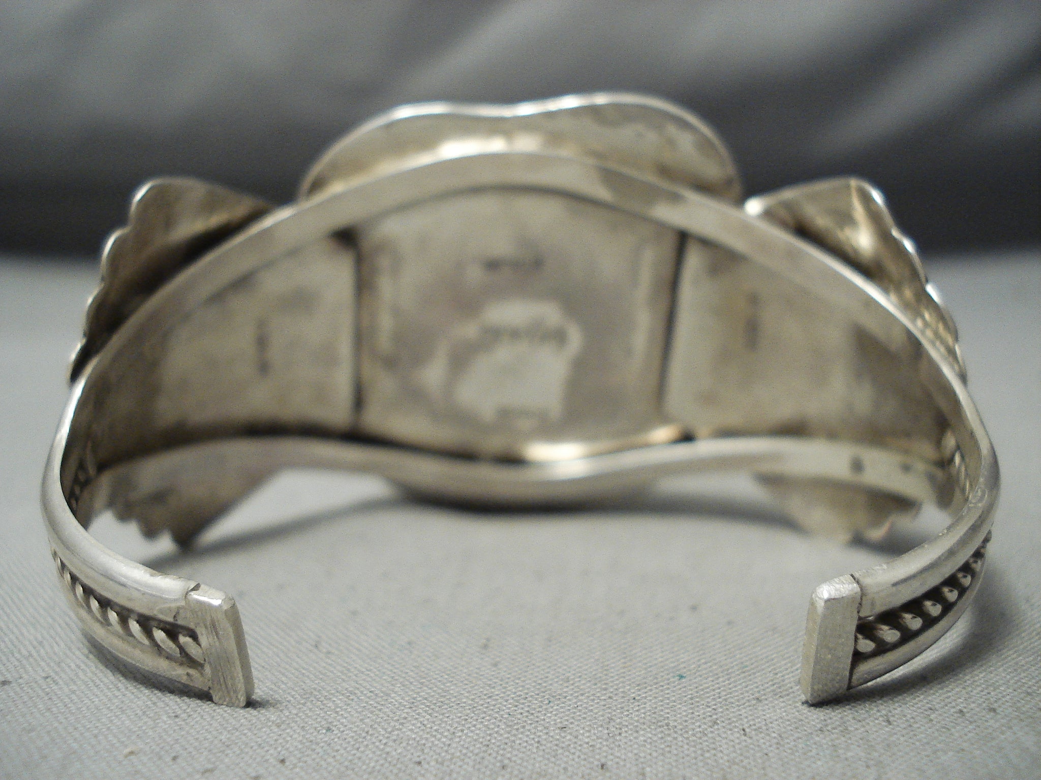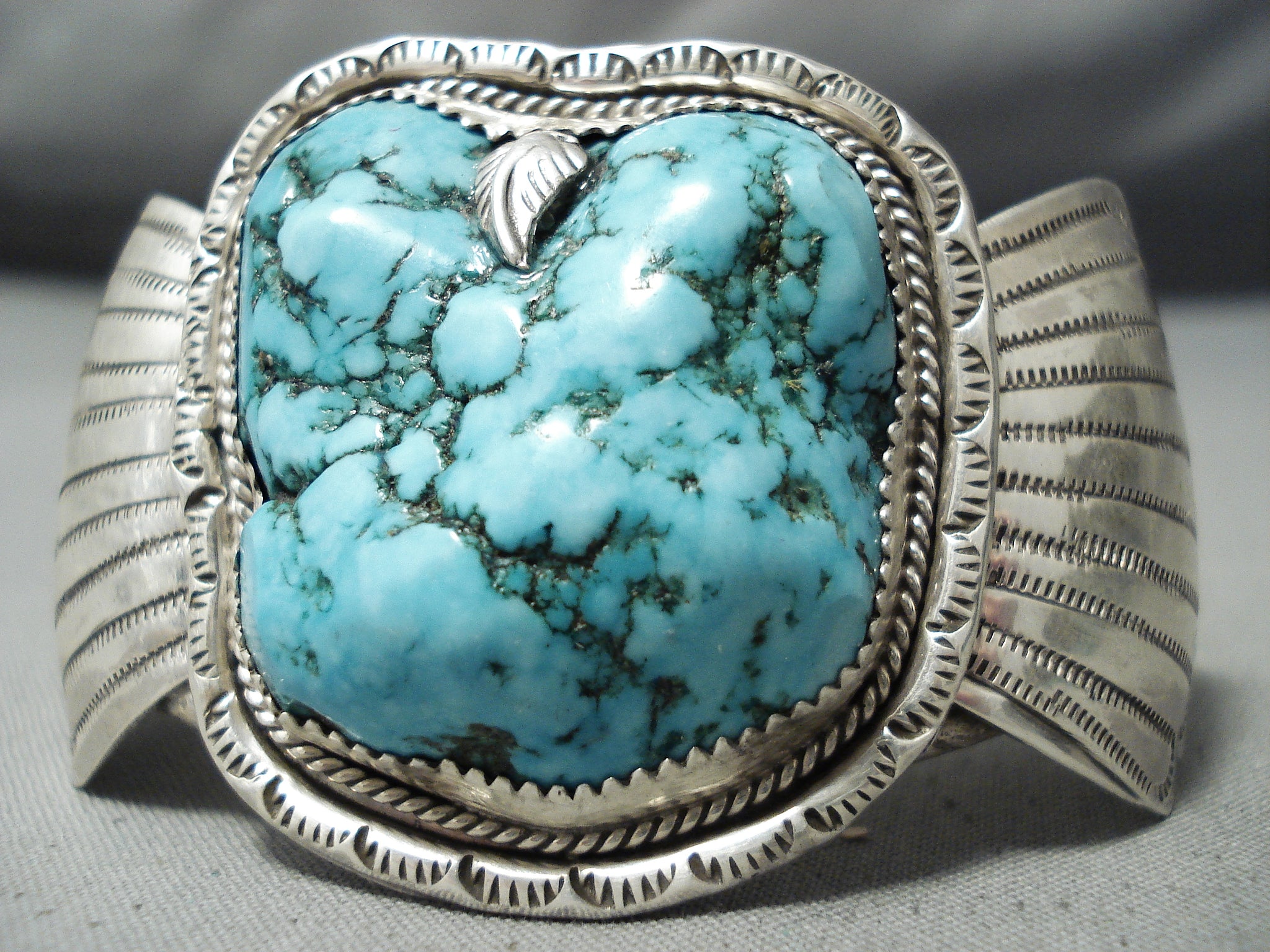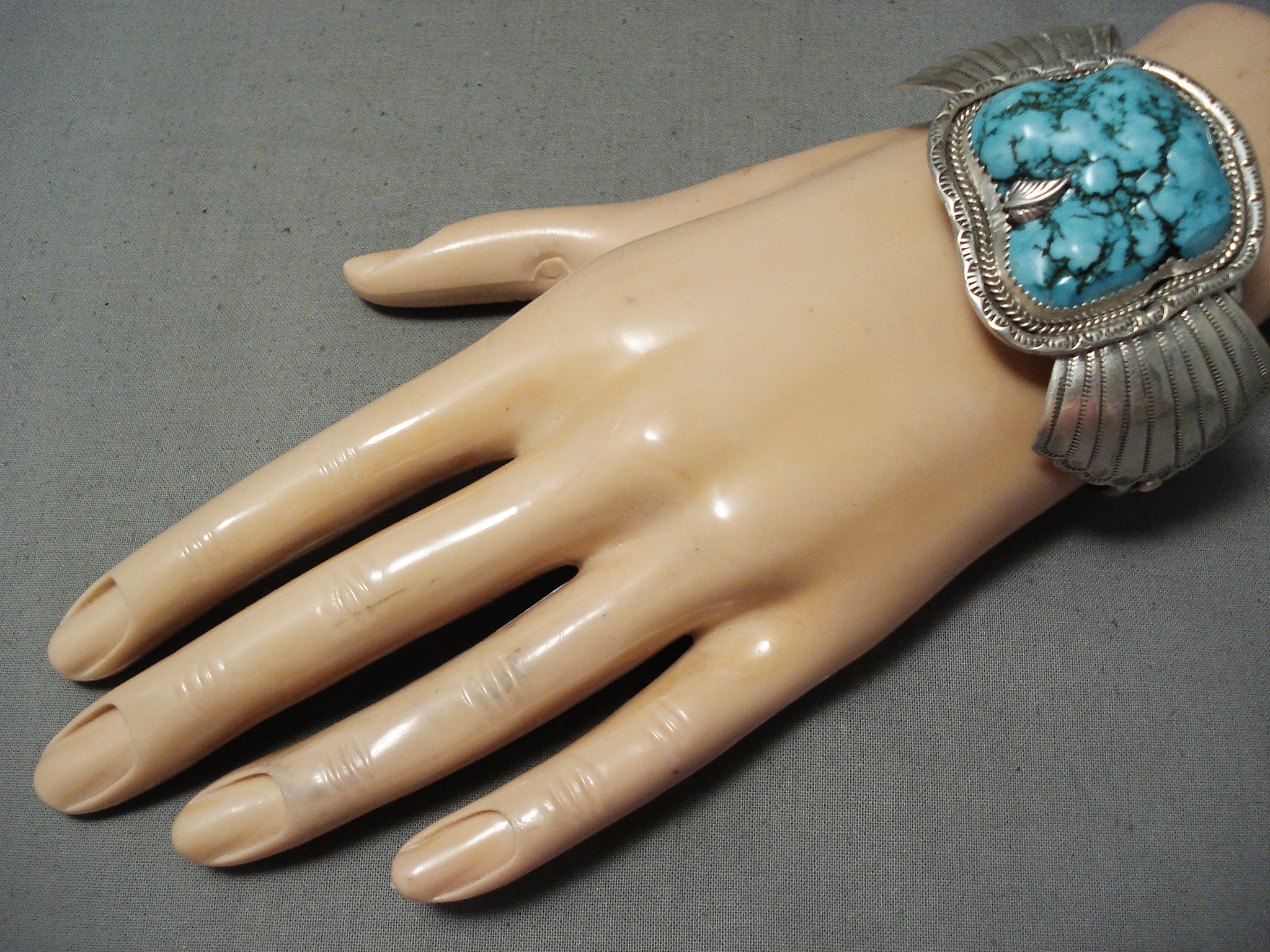 Gigantic Vintage Native American Navajo Spiderweb Turquoise Sterling Silver Bracelet Old