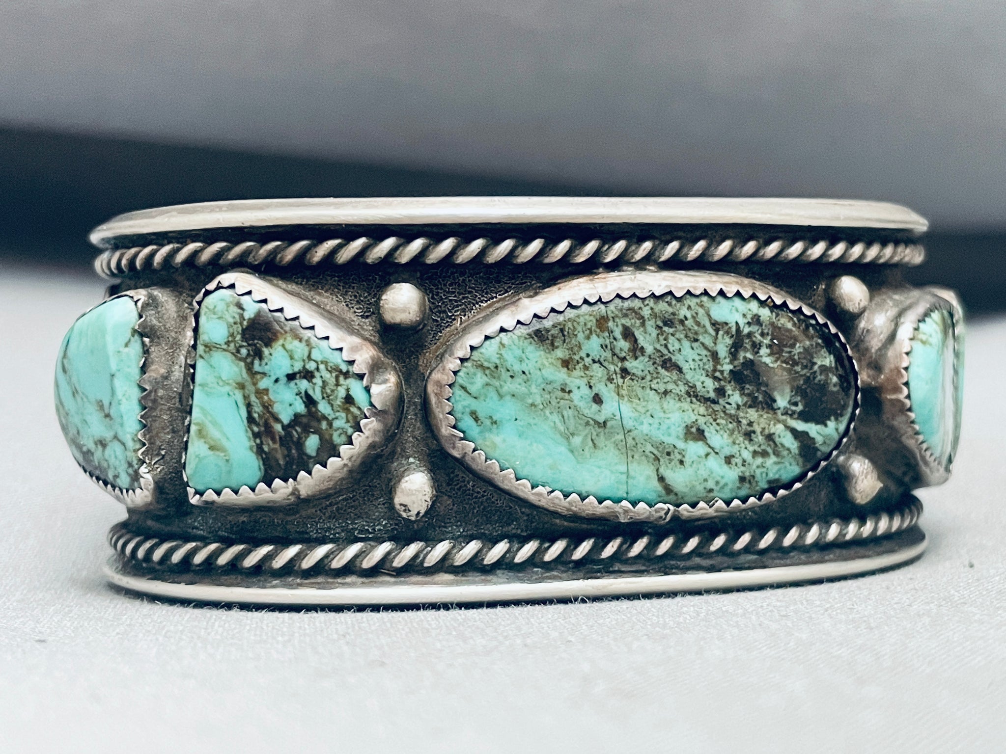 Green Basalt Turquoise!! Vintage Native American Navajo Sterling Silver Bracelet