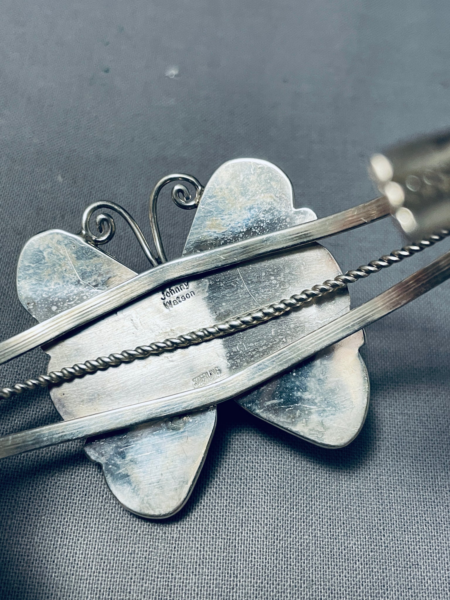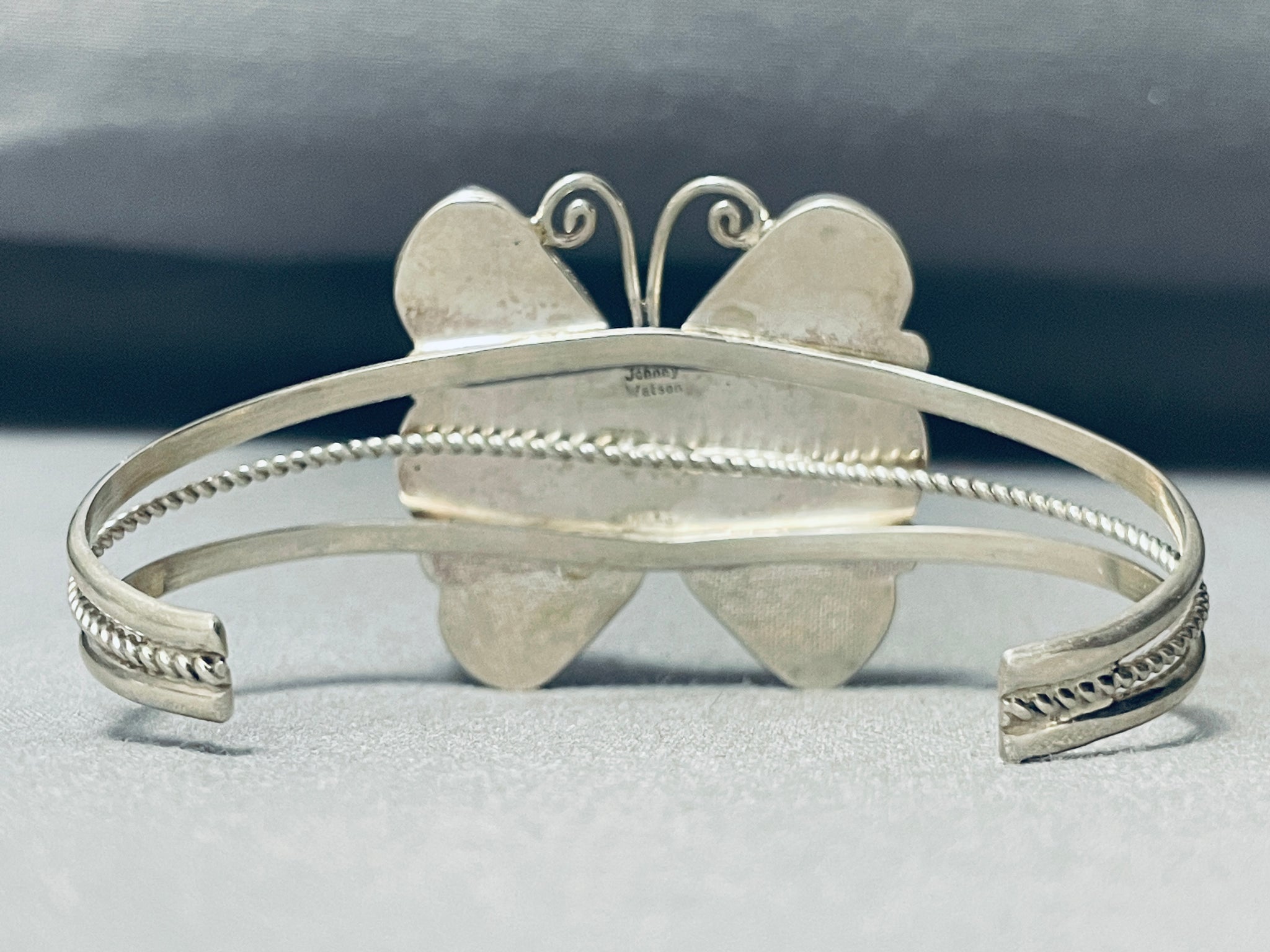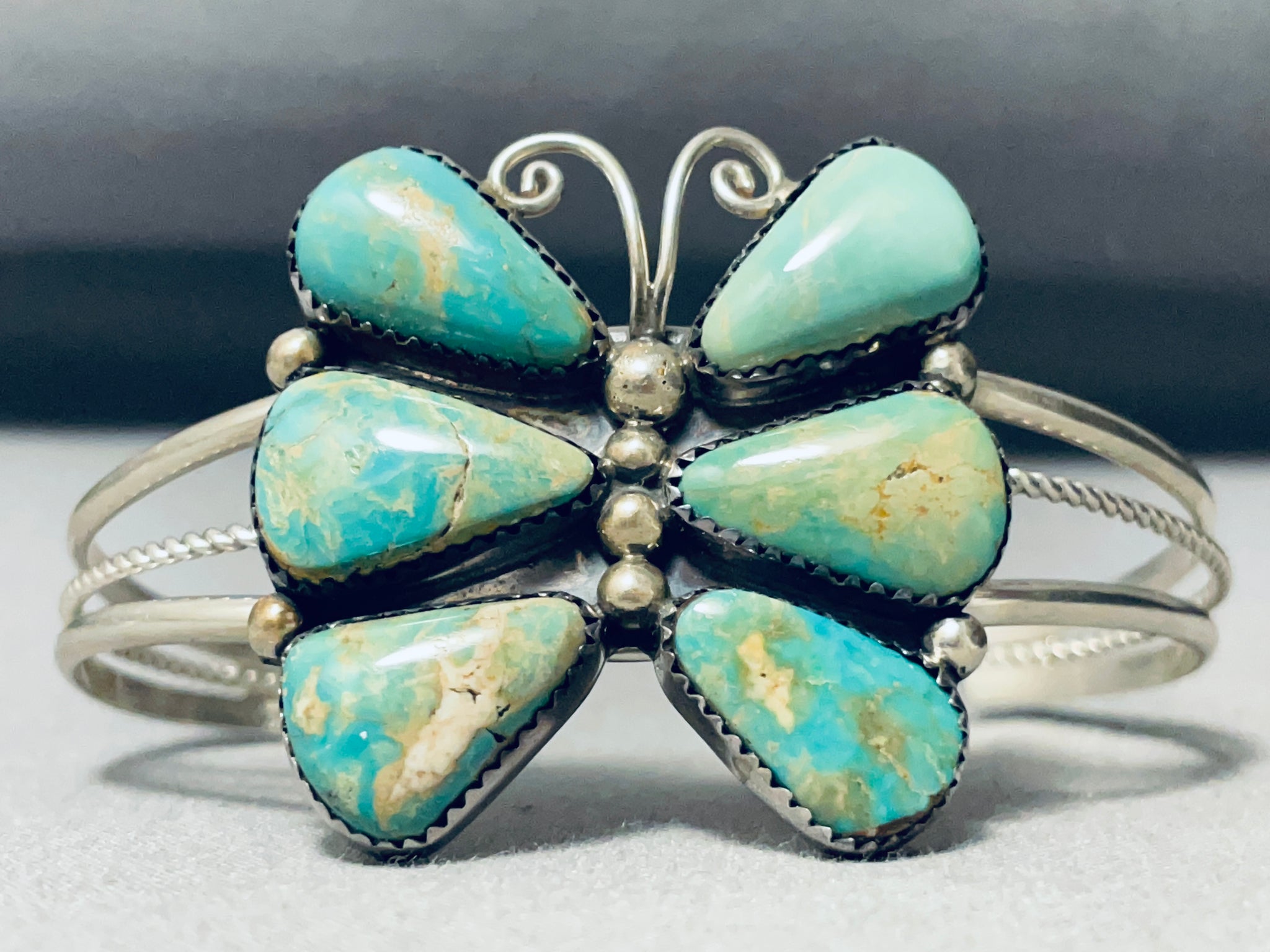 Green Turquoise Butterfly Vintage Native American Navajo Sterling Silver Bracelet