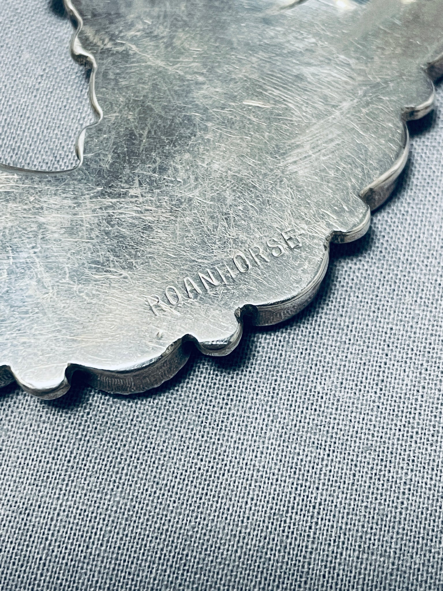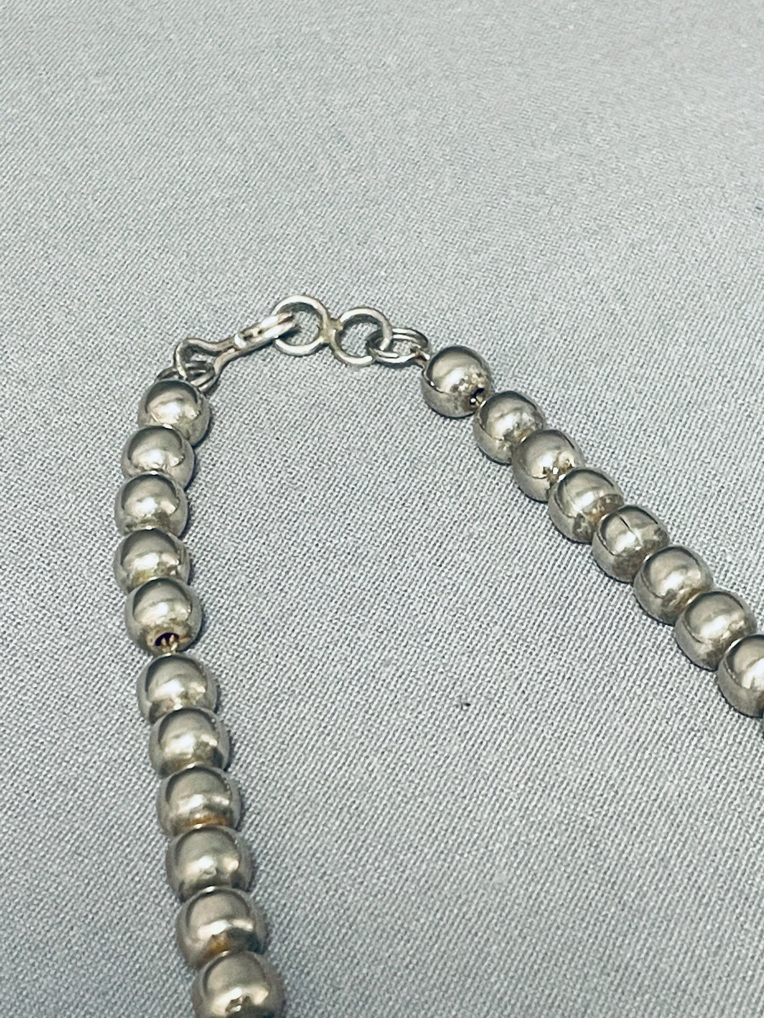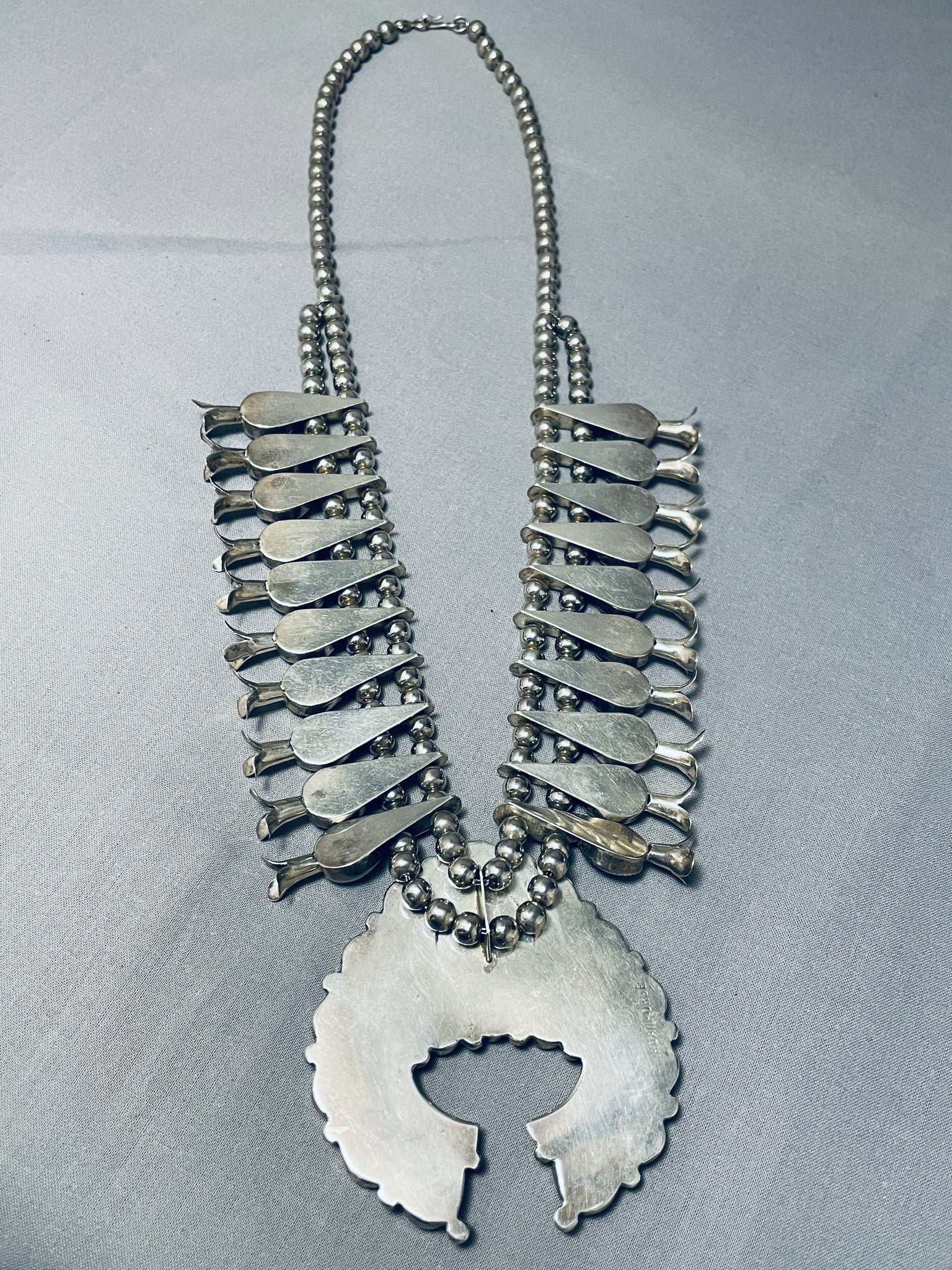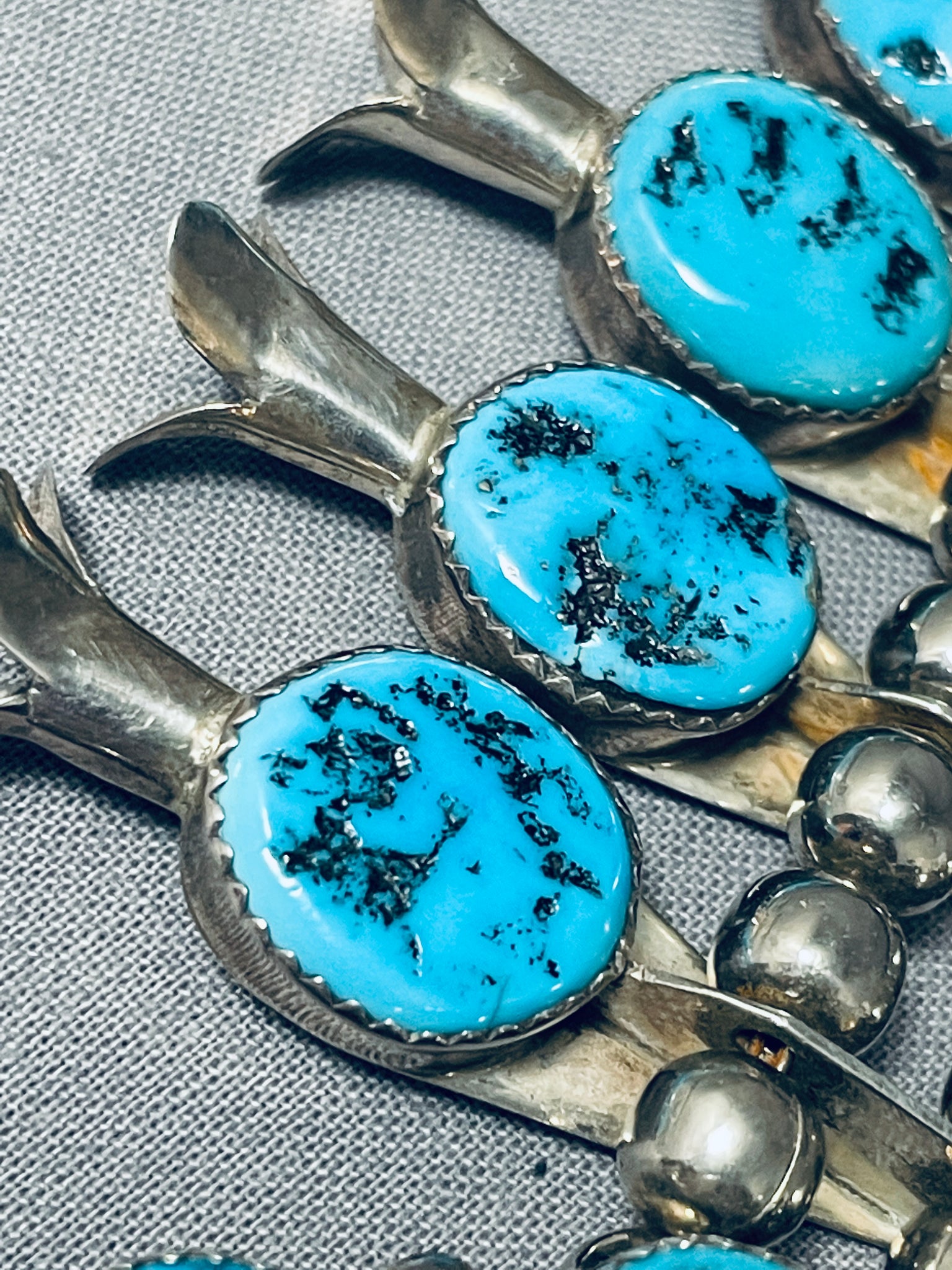 Henry Roanrose Vintage Native American Navajo Turquoise Sterling Silver Squash Blossom Necklace