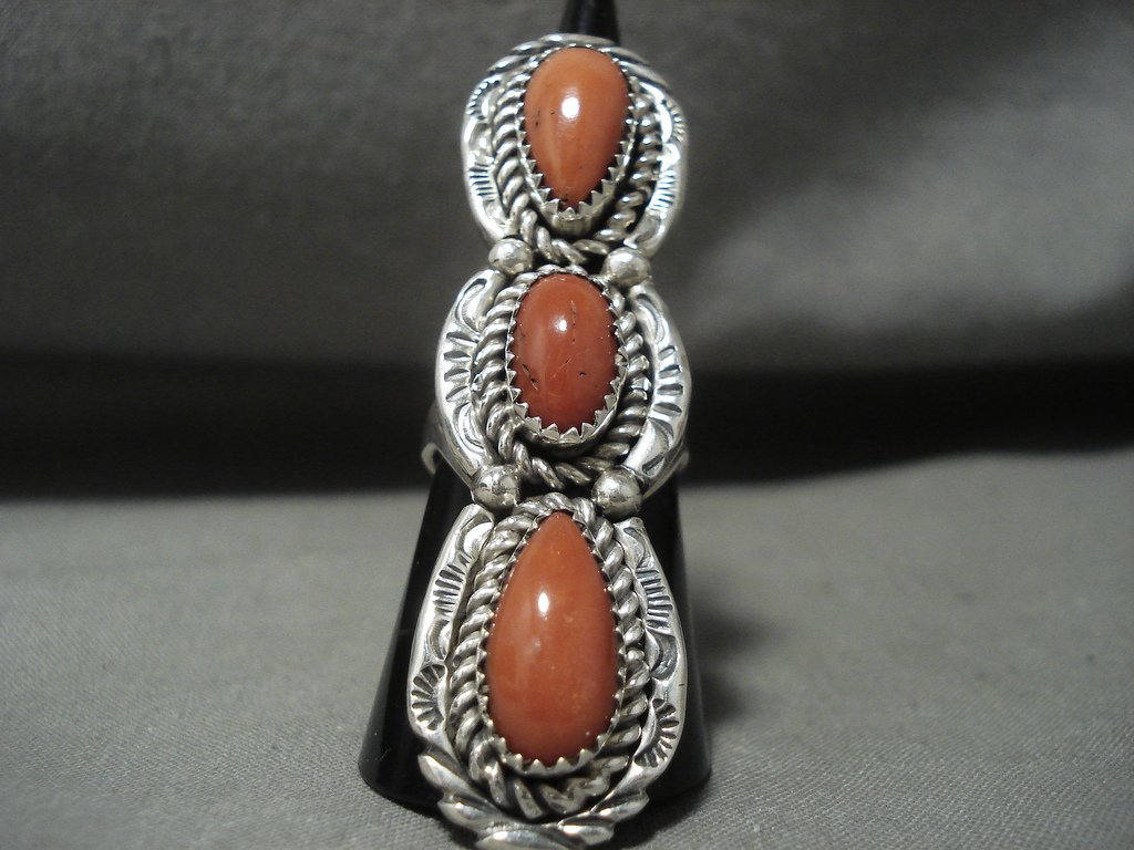 Huge **domed Teardrop Corals** Navajo Native American Jewelry Silver Ring