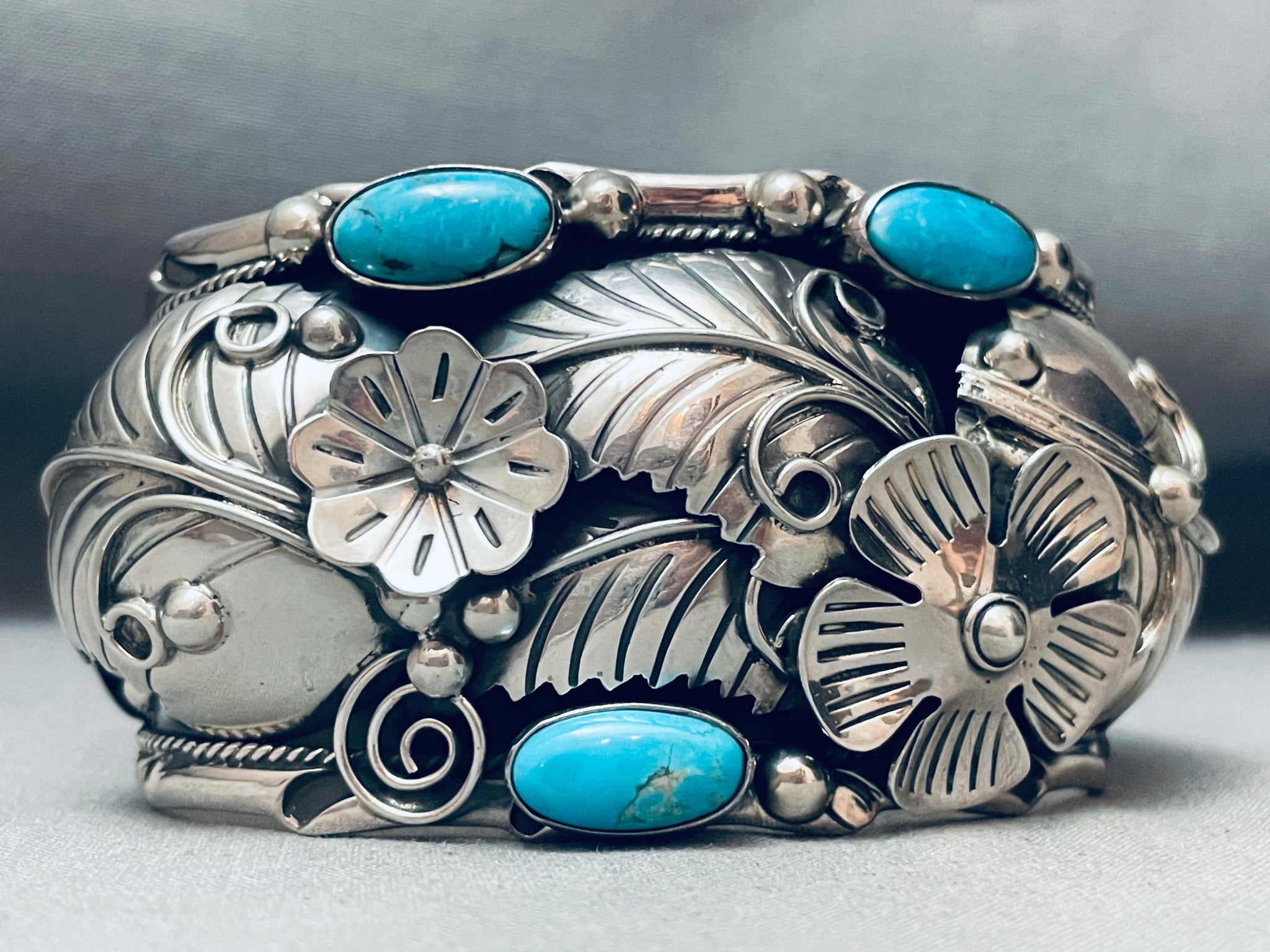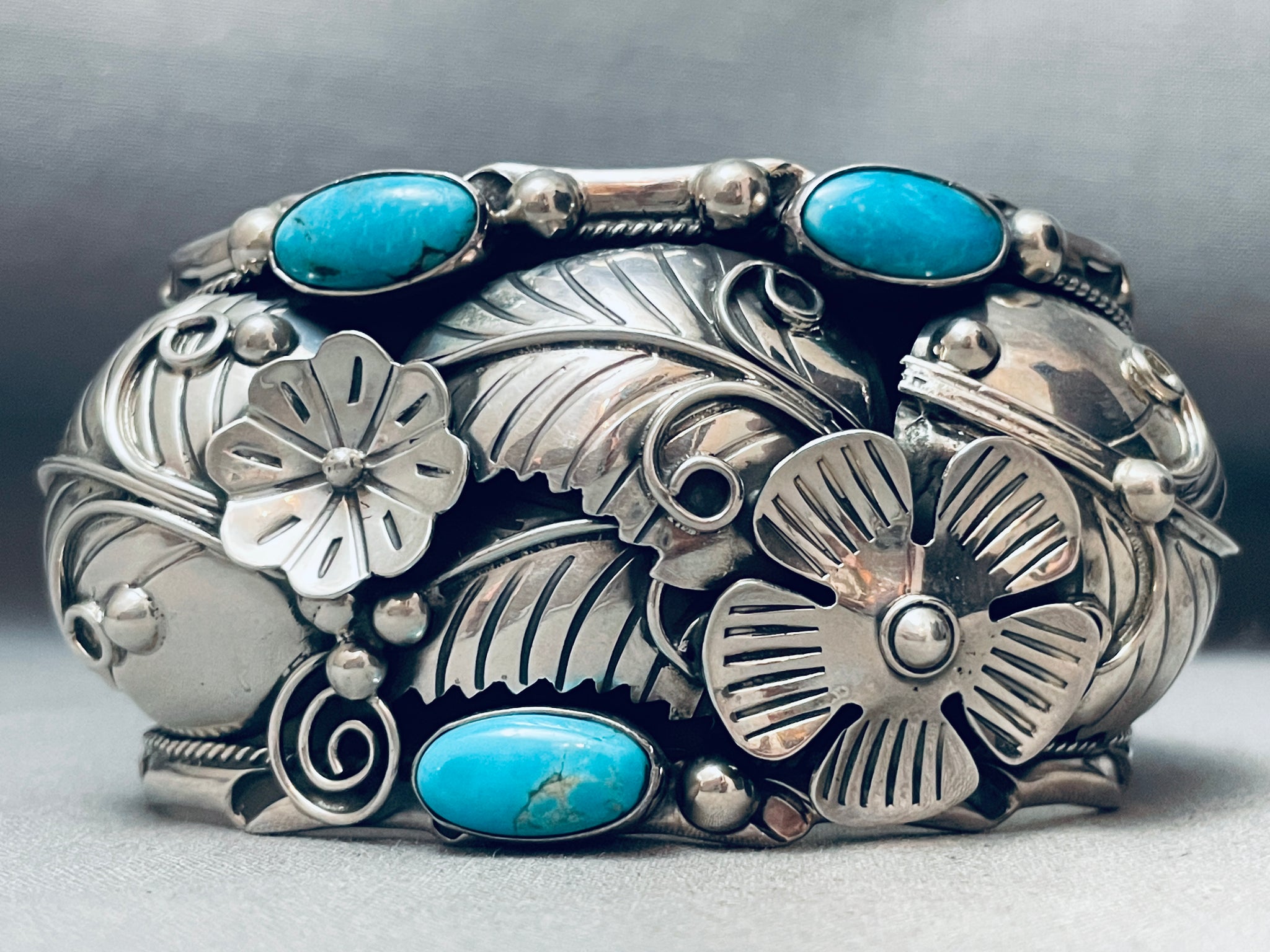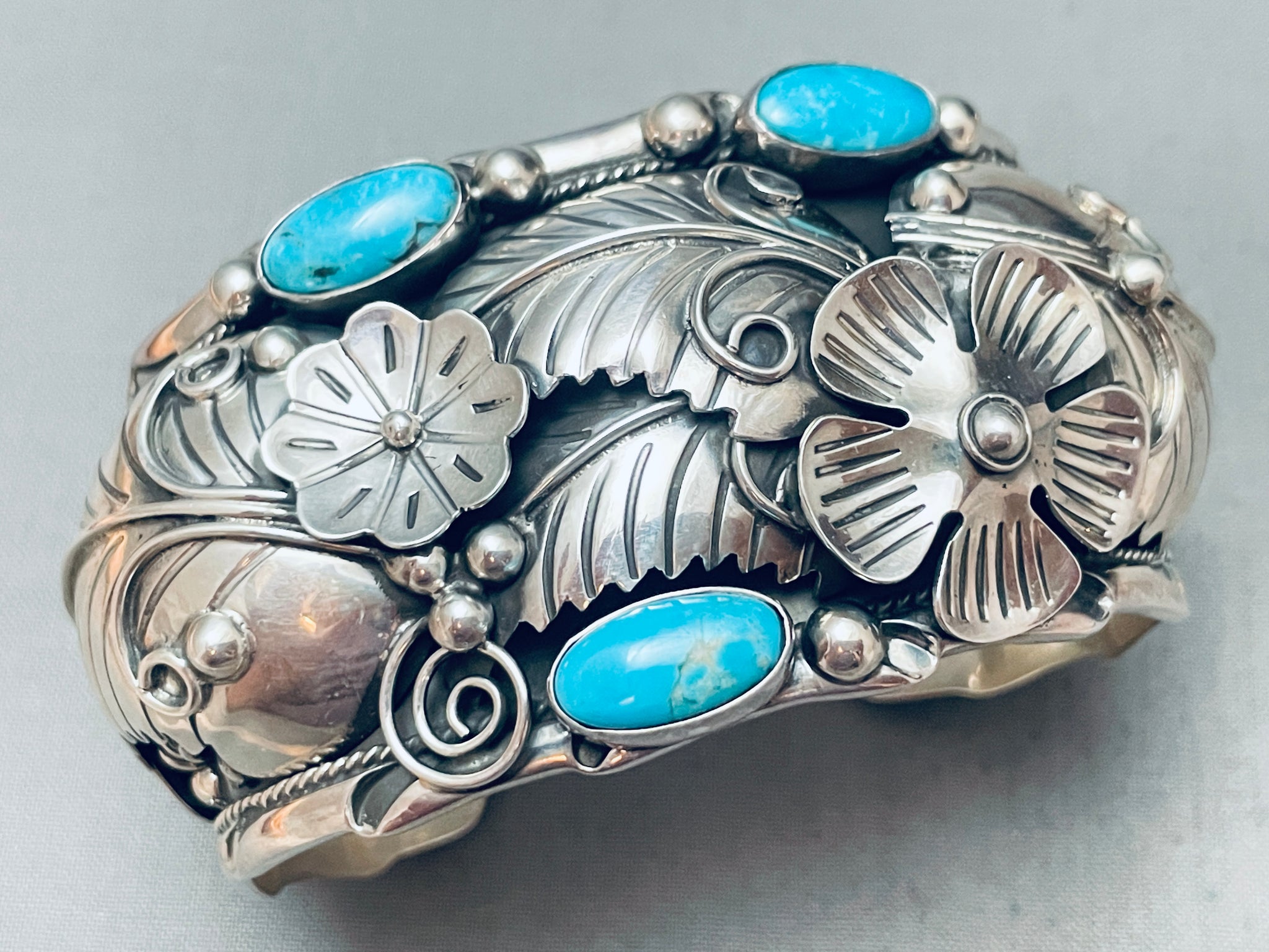 Huge Flower Southwestern Sterling Silver Turquoise Bracelet