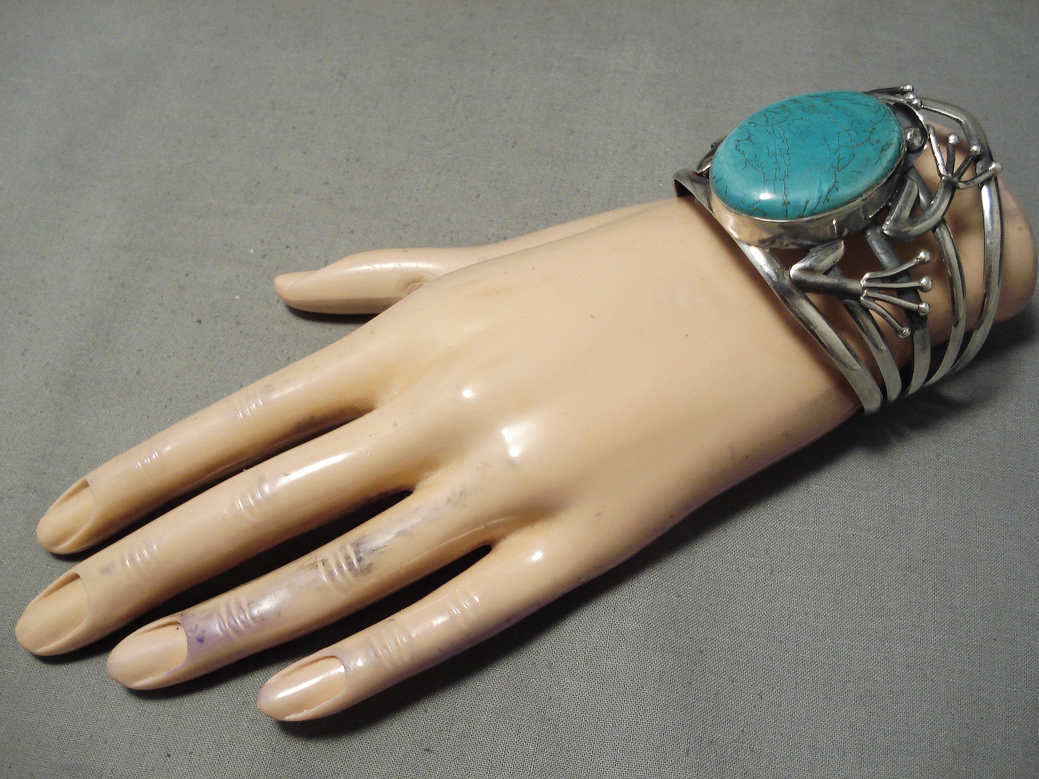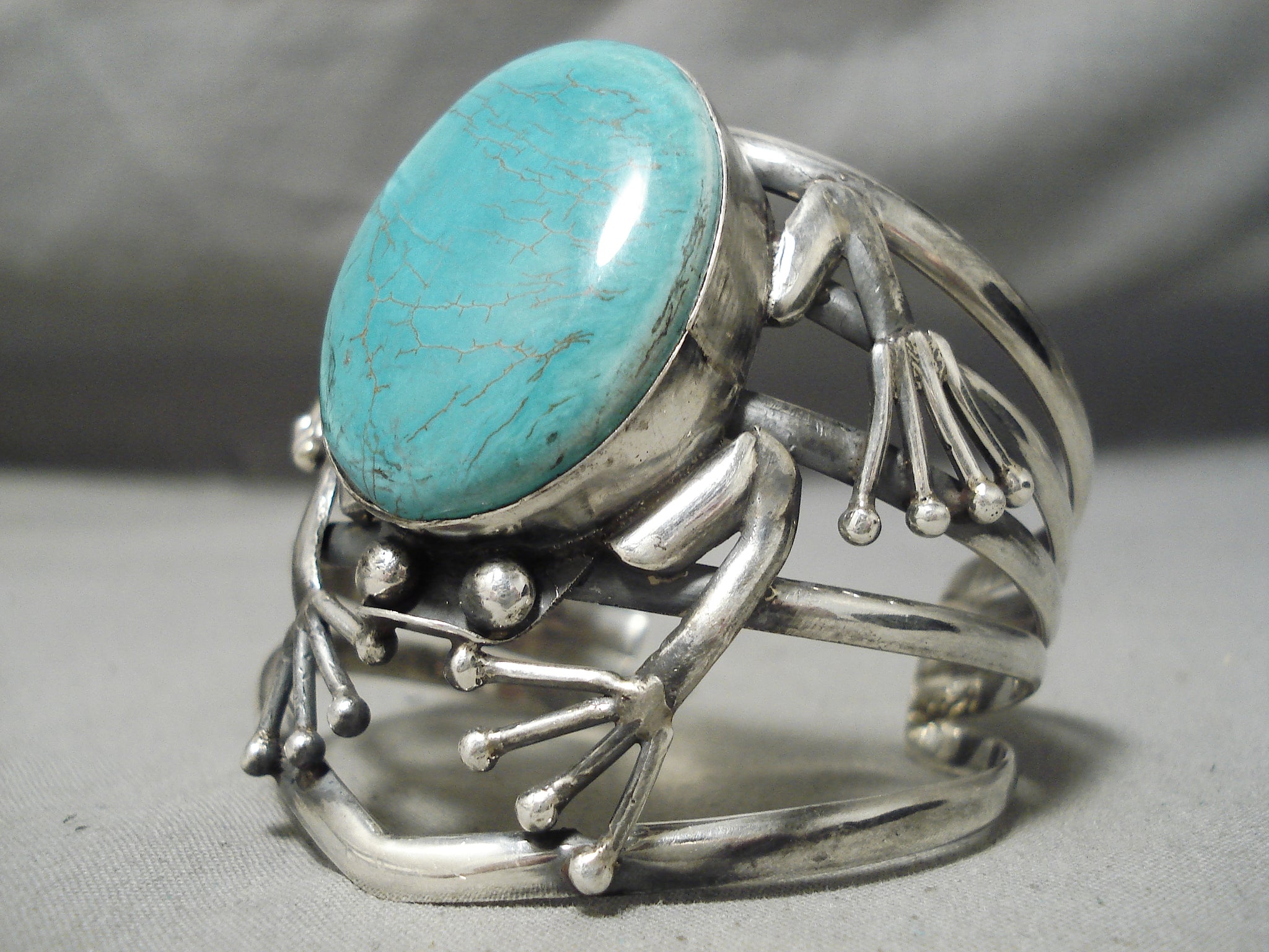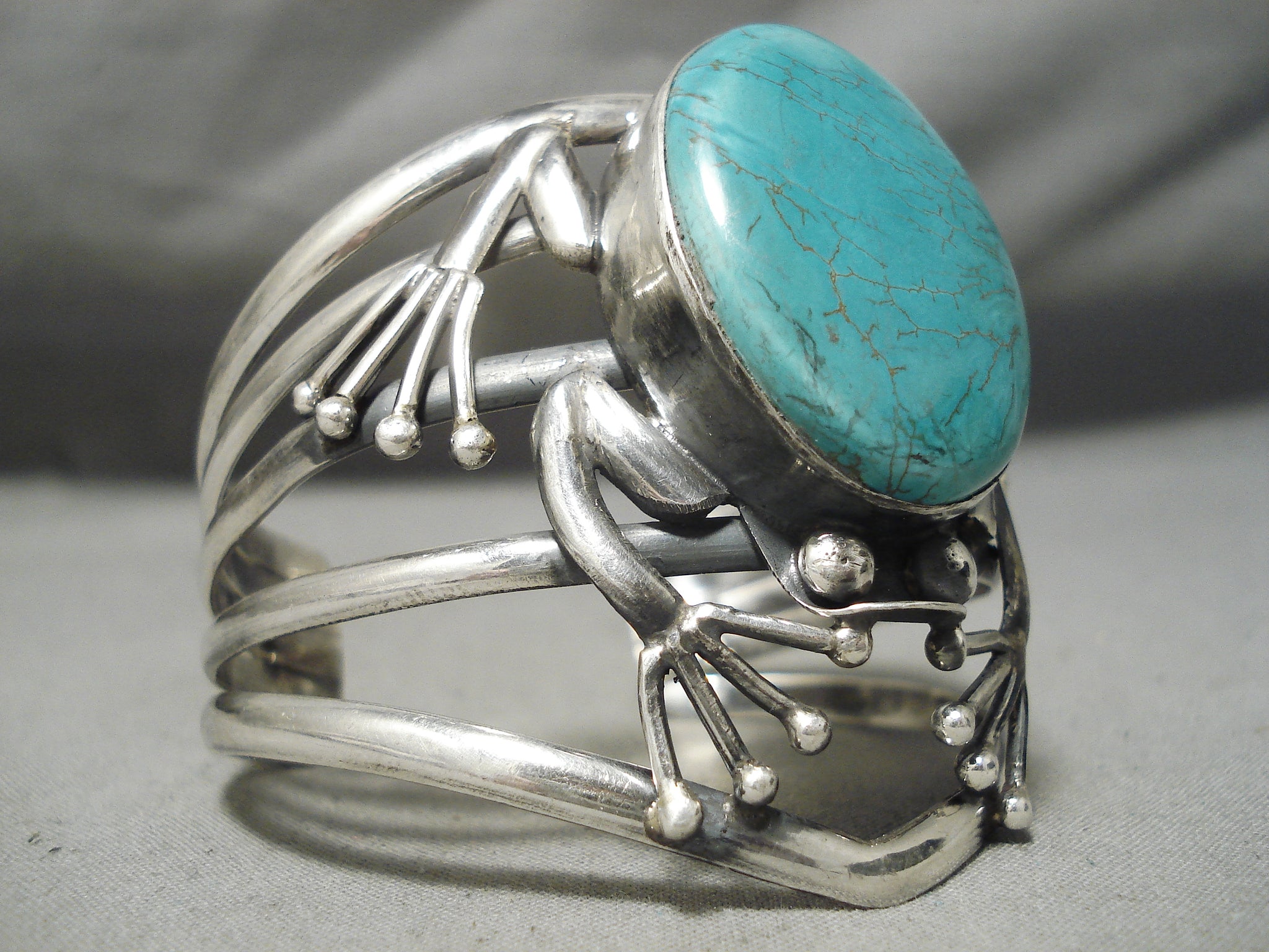 Huge Frog Vintage Native American Navajo Green Turquoise Sterling Silver Bracelet Old