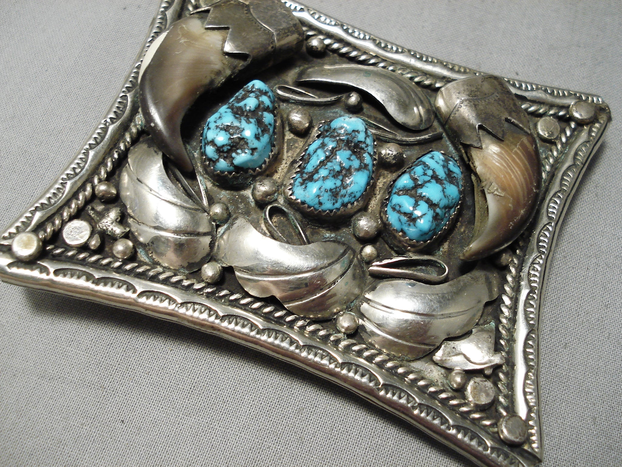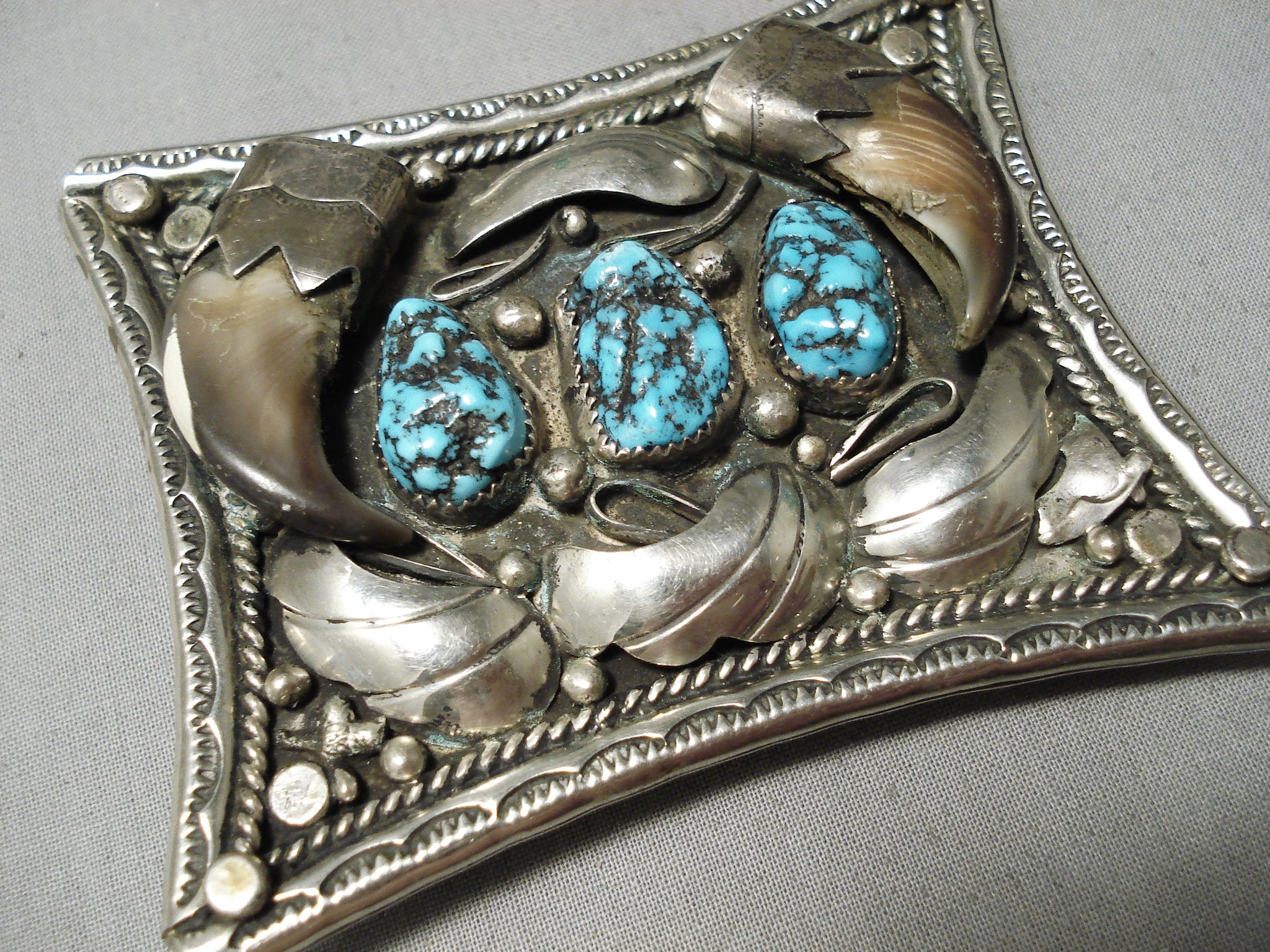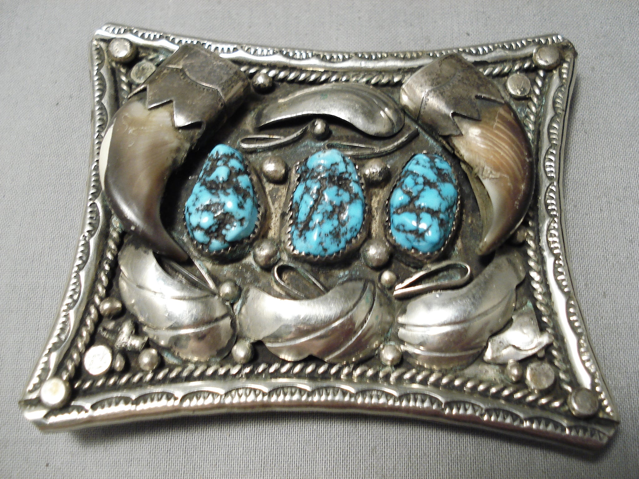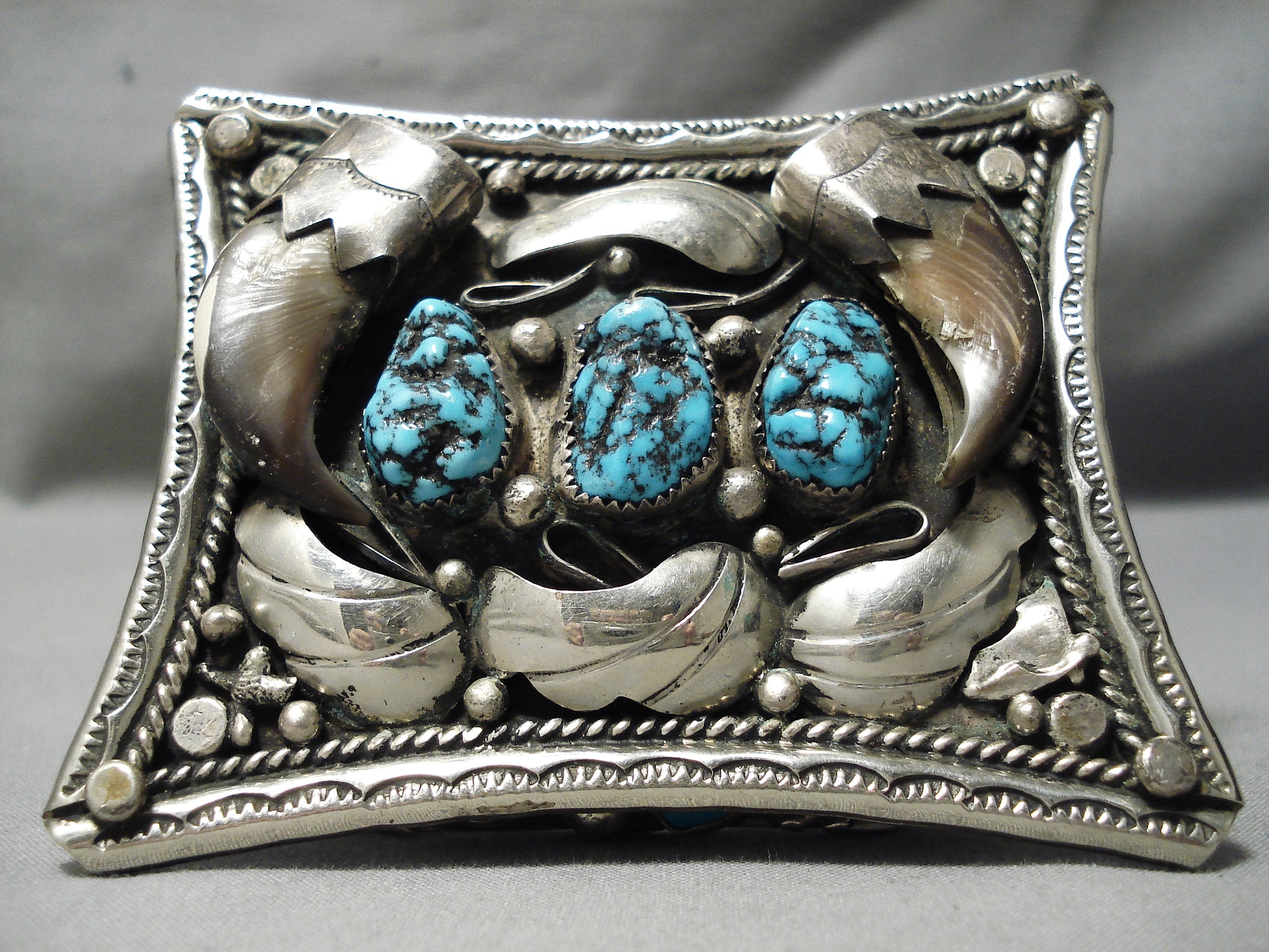 Huge Heavy 100 Gram Vintage Native American Navajo Turquoise Sterling Silver Buckle Old