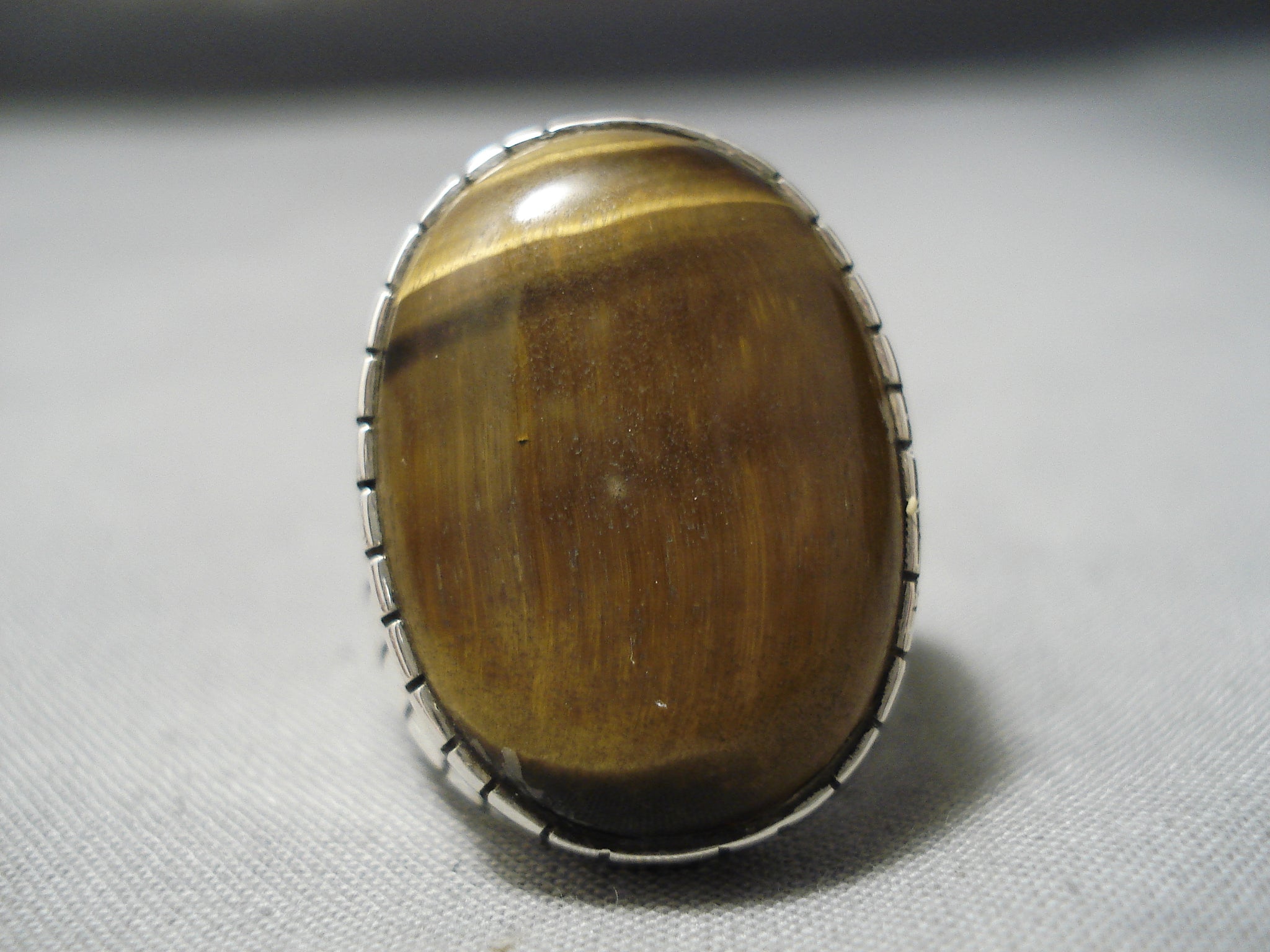 Huge Heavy Native American Navajo Sterling Silver Tigers Eye Ring