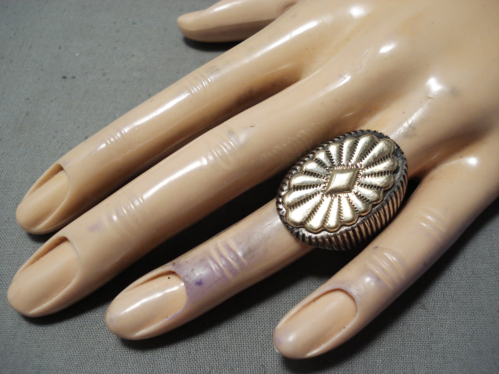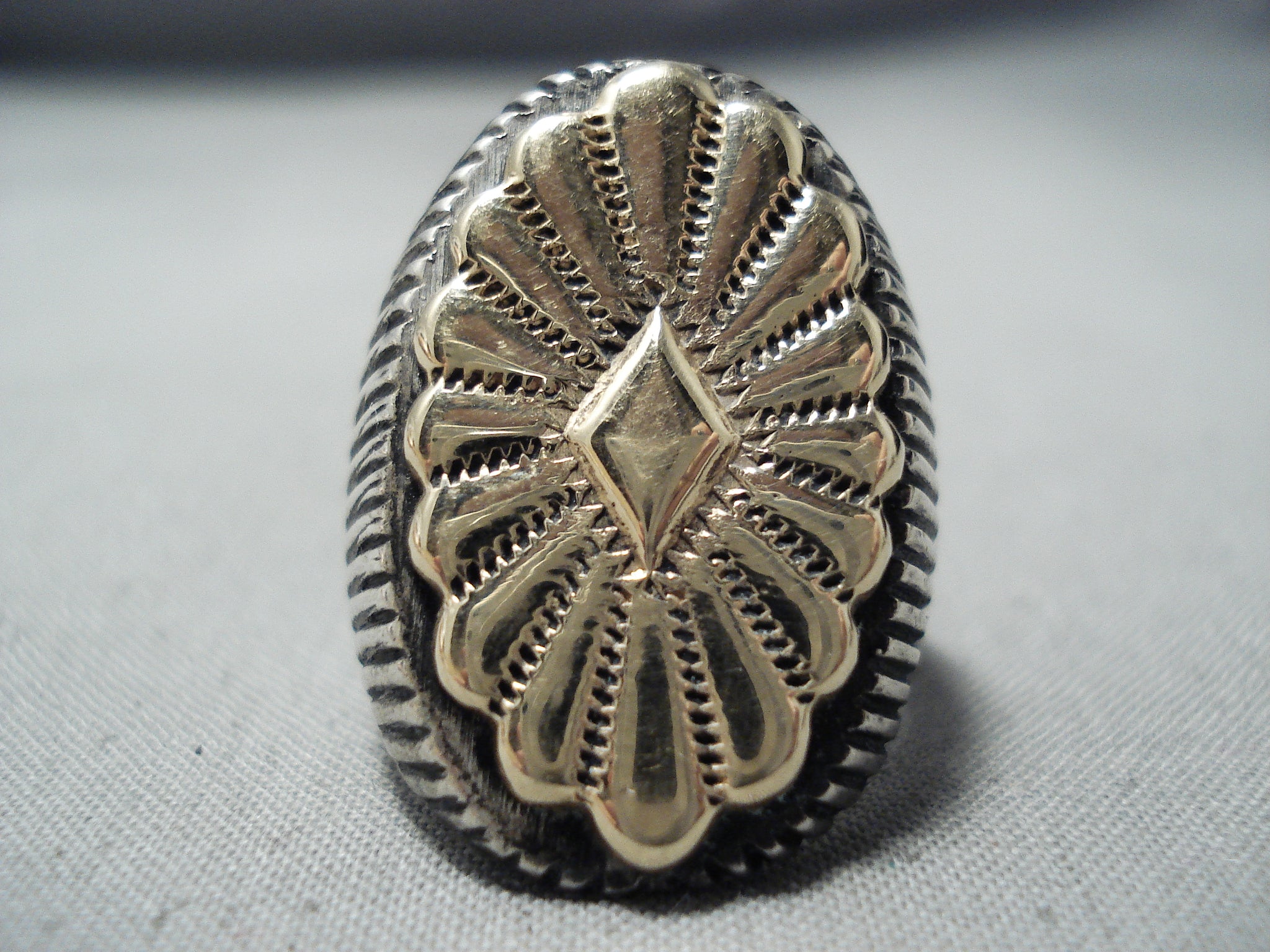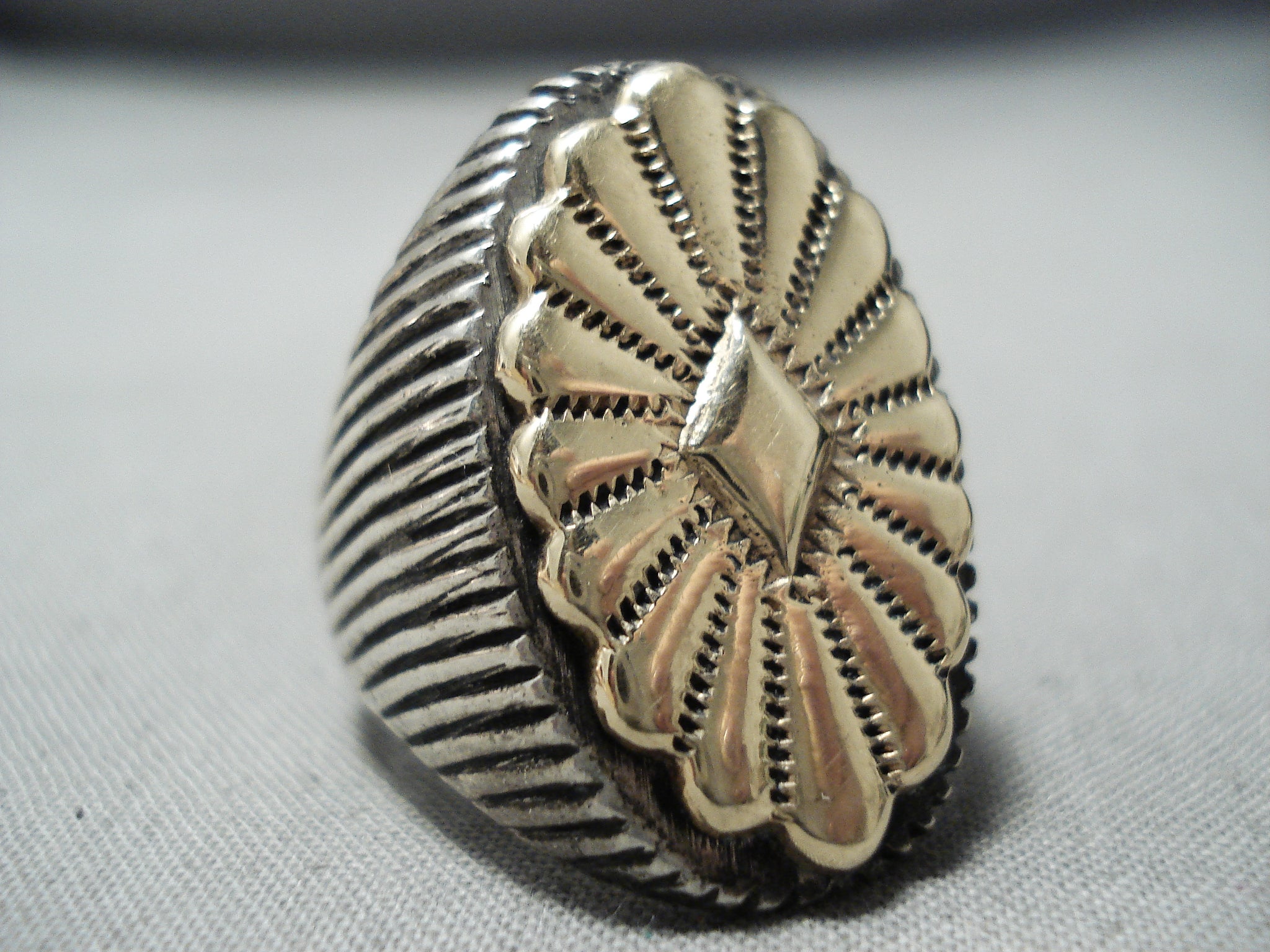 Huge Men's Heavy Vintage Native American Navajo 14k Gold Sterling Silver Ring
