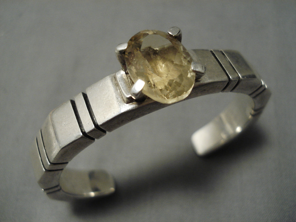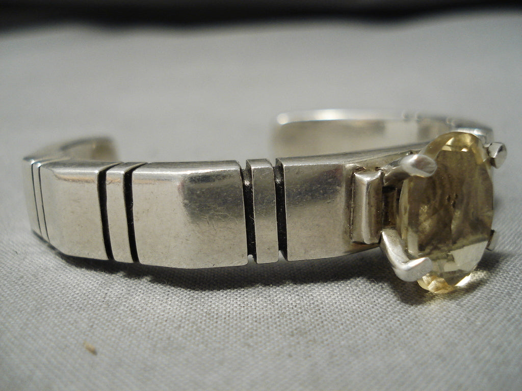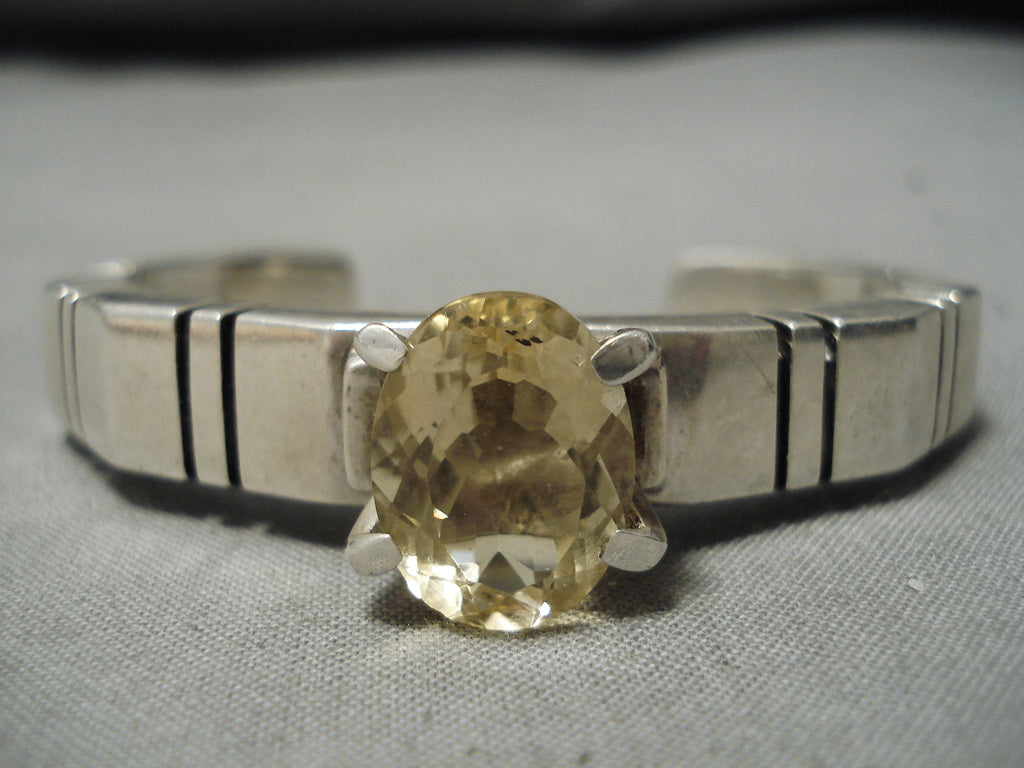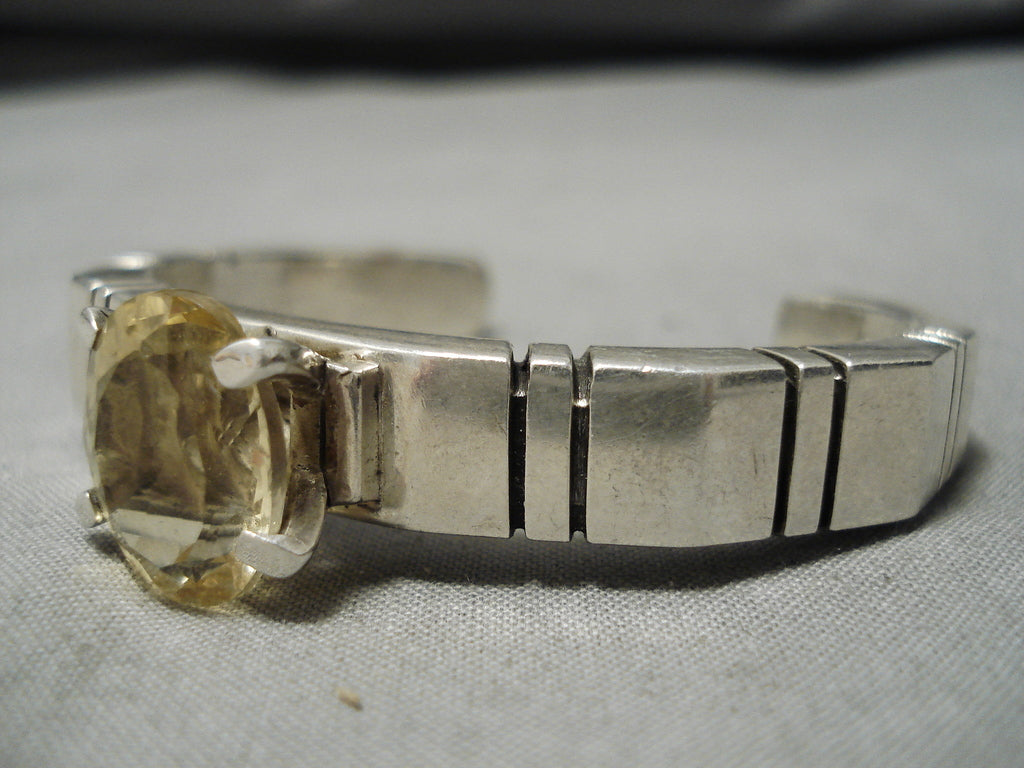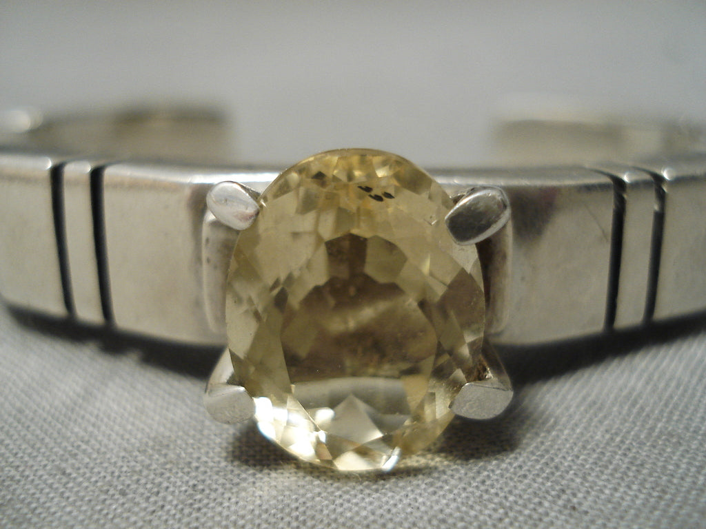 Huge Rare Vintage Native American Navajo Citrine Sterling Silver Bracelet