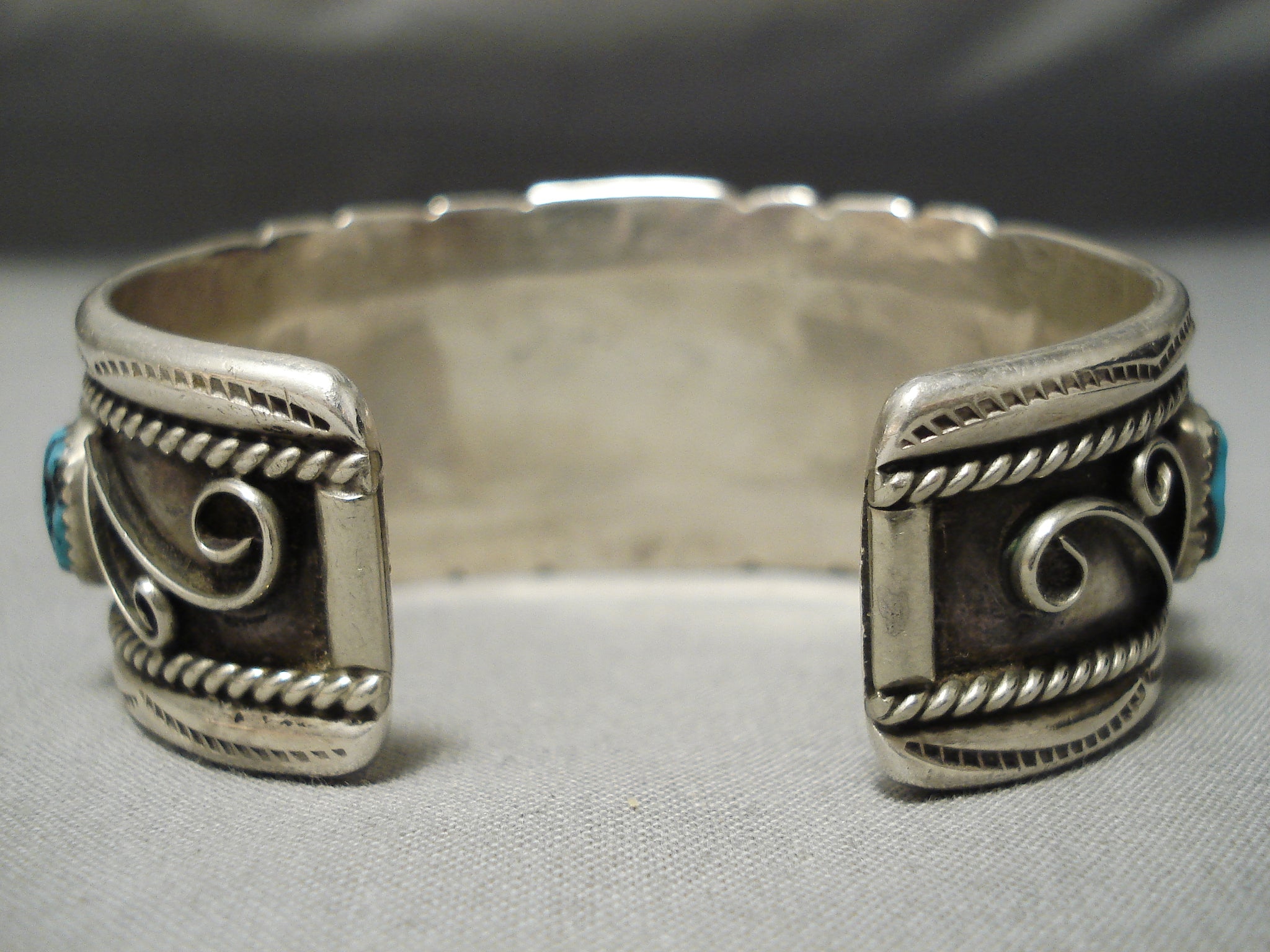 Huge Thick Heavy Vintage Native American Navajo Turquoise Sterling Silver Bracelet Old