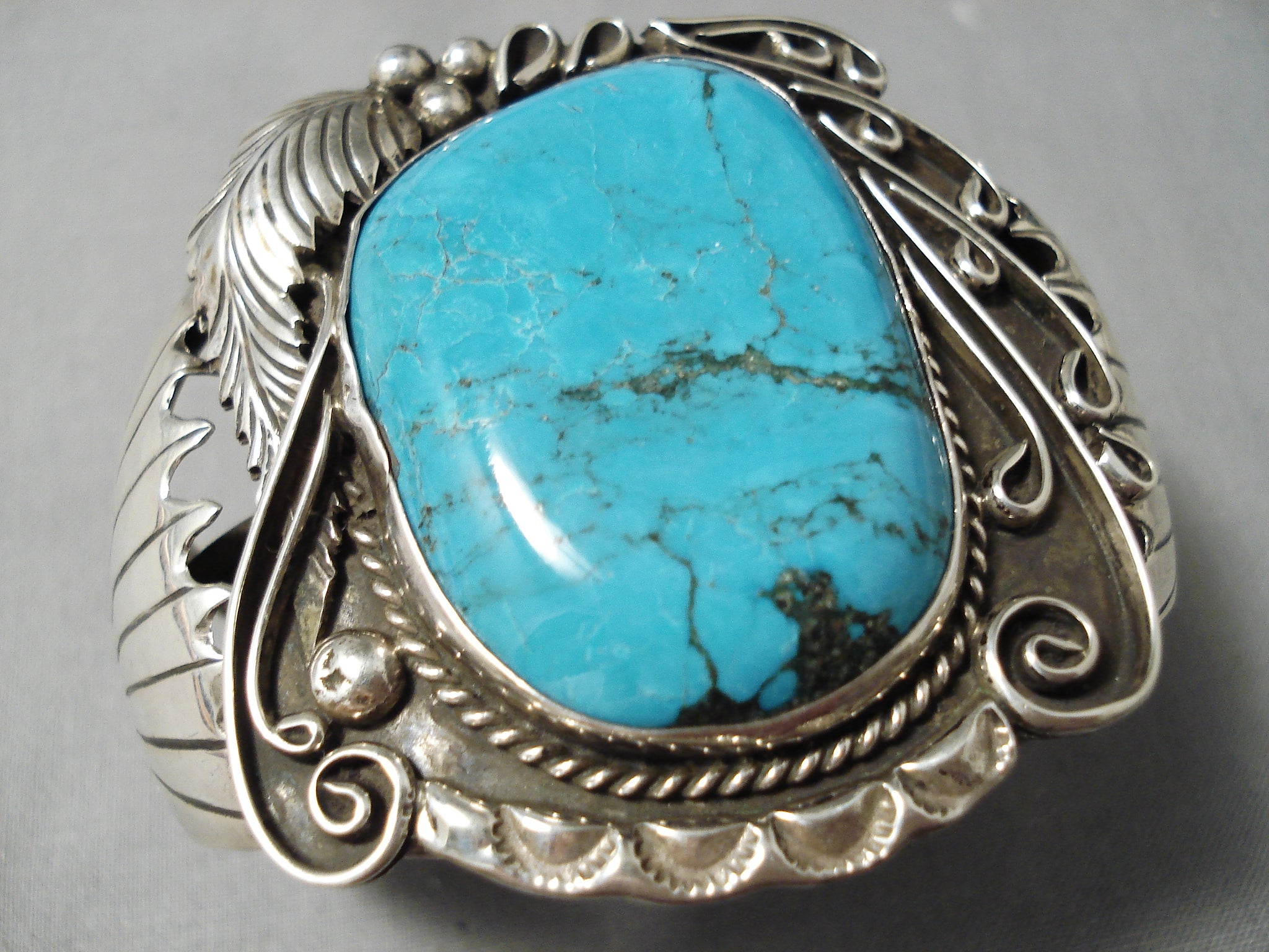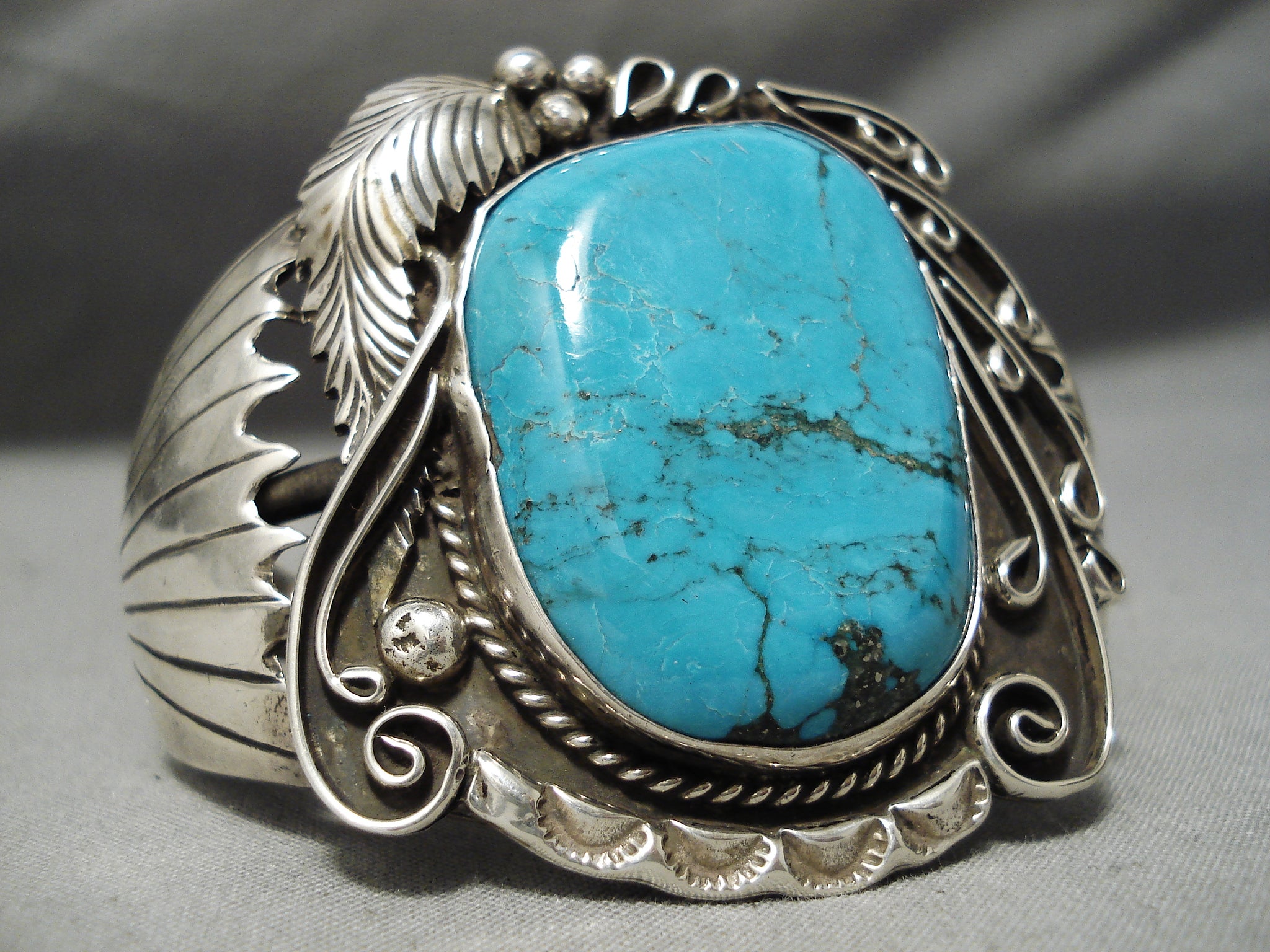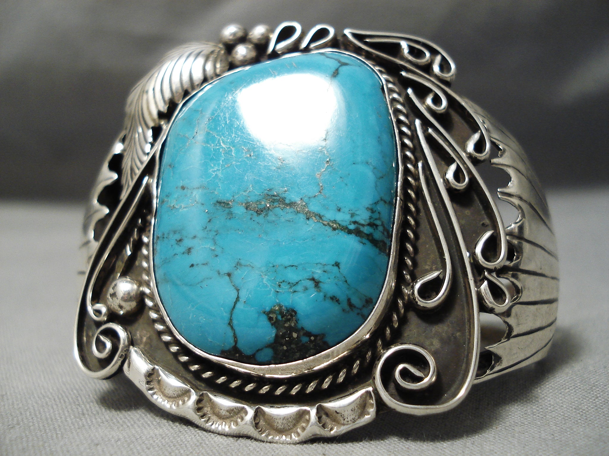 Huge Vintage Native American Navajo Blue Diamond Turquoise Sterling Silver Bracelet Old