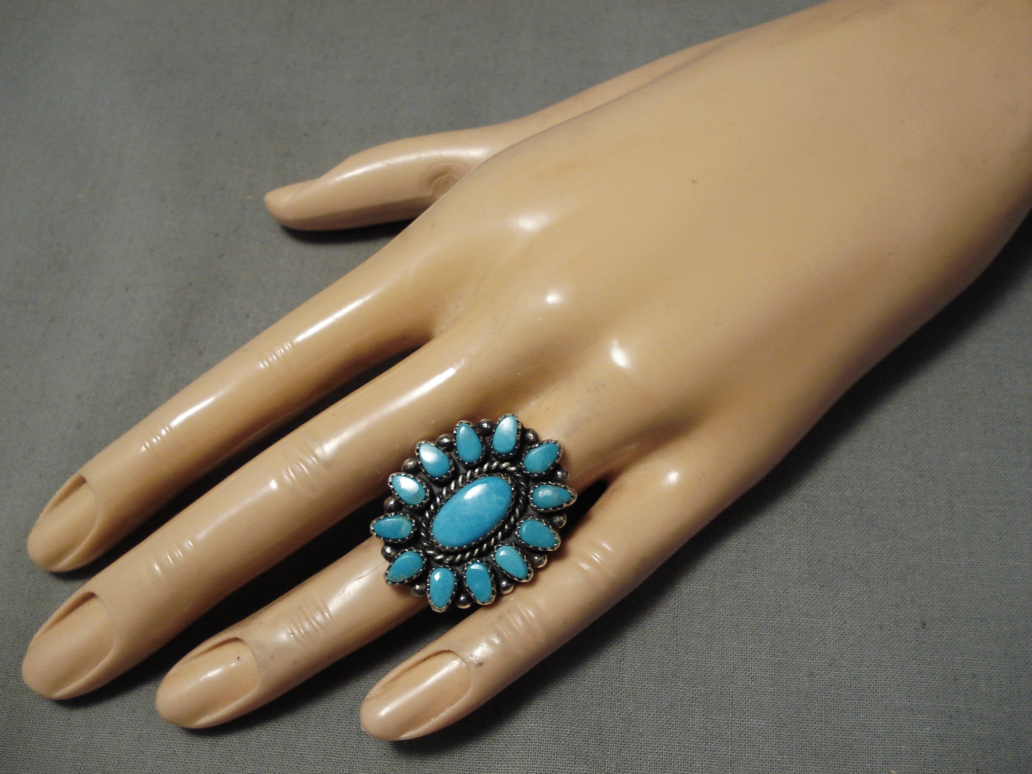 Huge Vintage Native American Navajo Carico Lake Turquoise Sterling Silver Satellite Ring