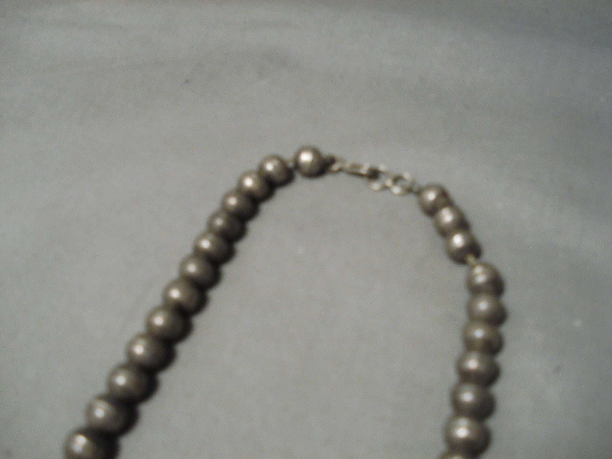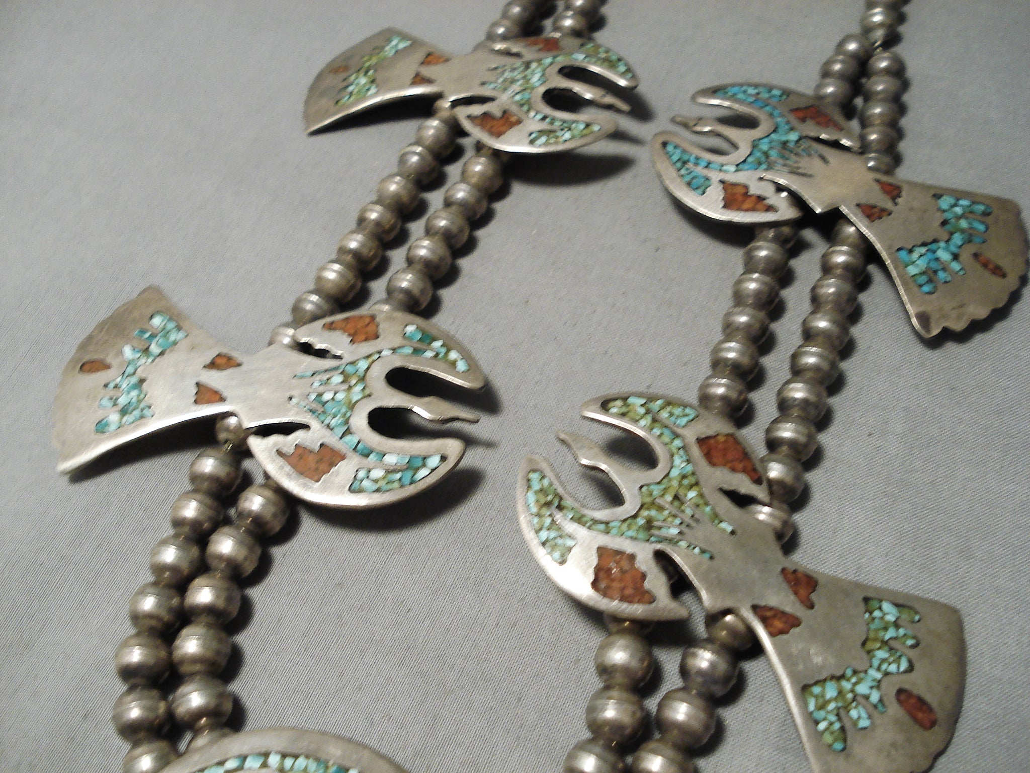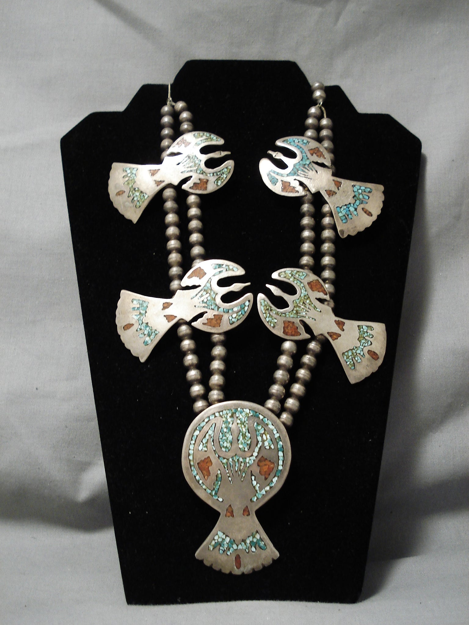 Huge Vintage Native American Navajo Green Turquoise Sterling Silver Squash Blossom Necklace