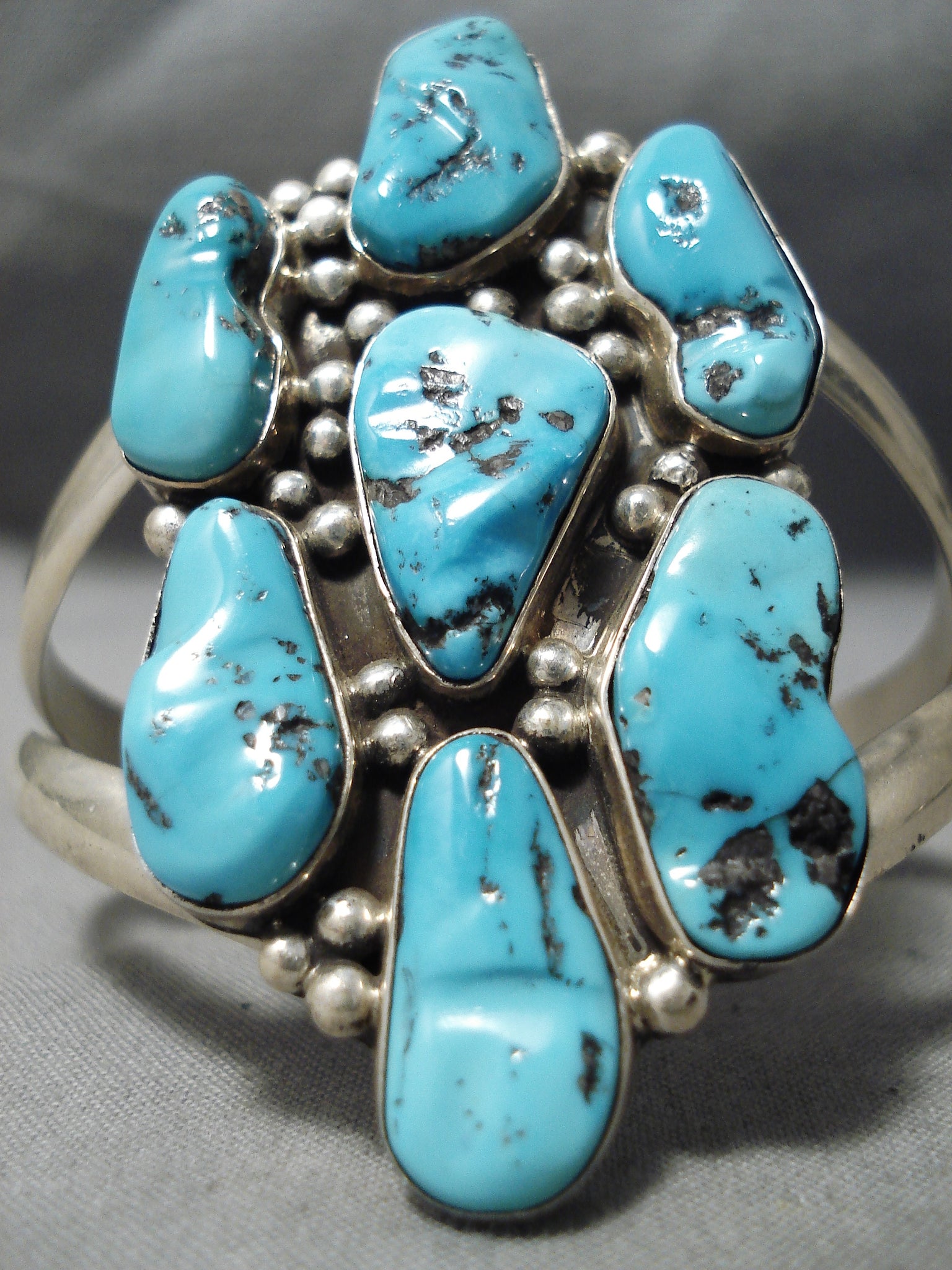 Huge Vintage Native American Navajo Turquoise Nugget Sterling Silver Bracelet Old
