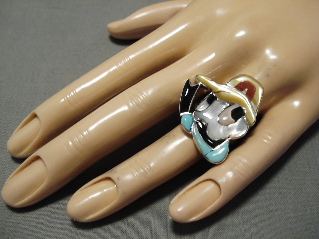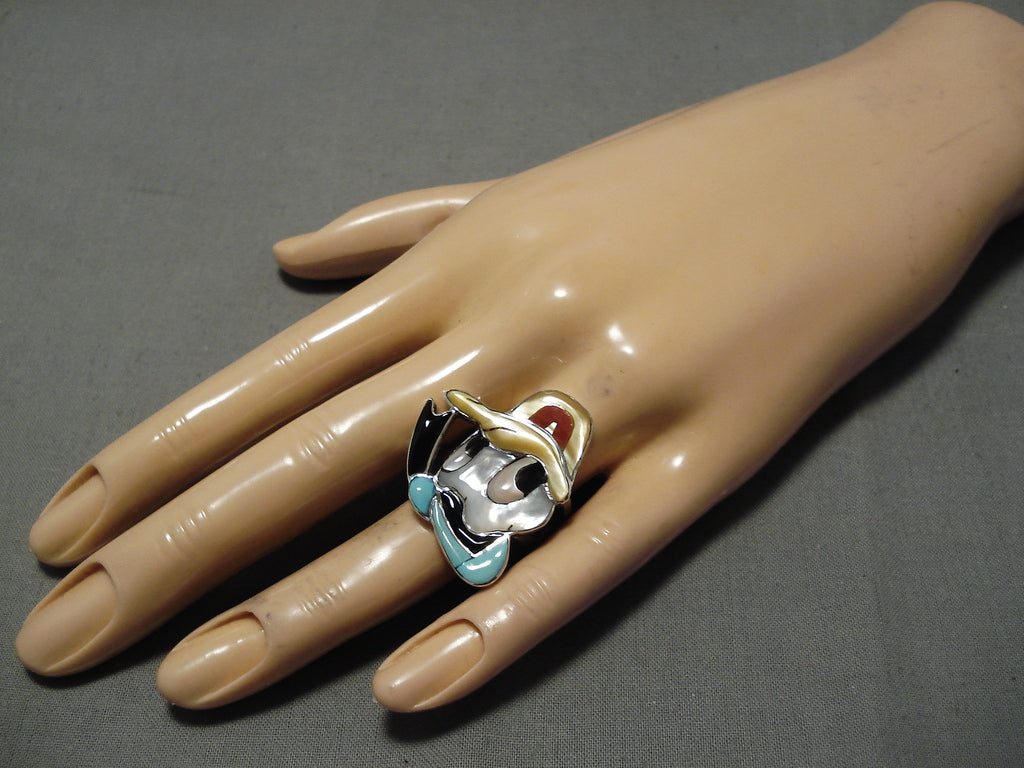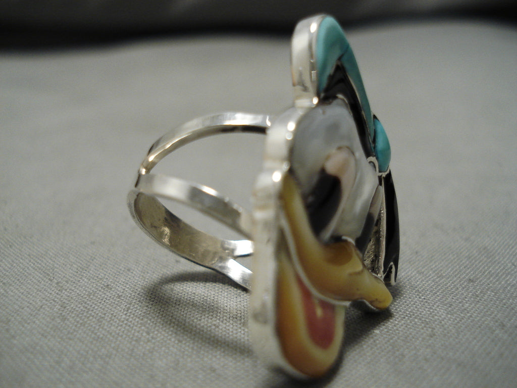 Important Inlay Master Native American Zuni Donald Duck Turquoise Sterling Silver Ring