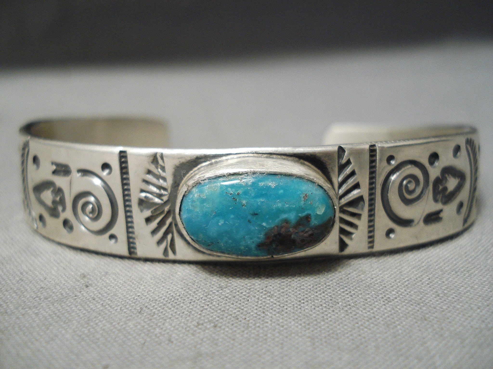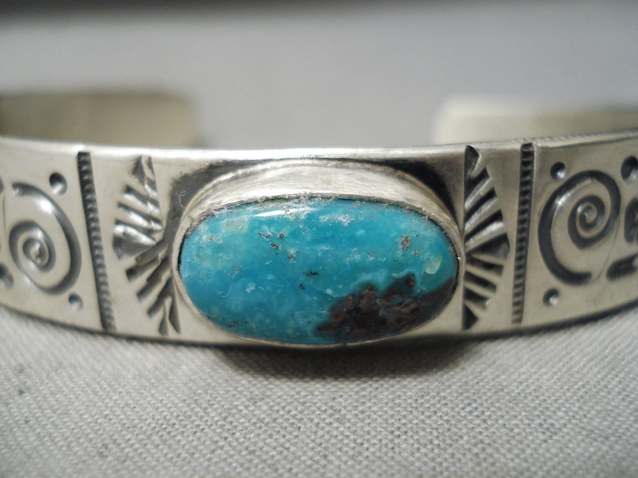 Important Jeanette Dale Native American Navajo Bisbee Turquoise Sterling Silver Bracelet