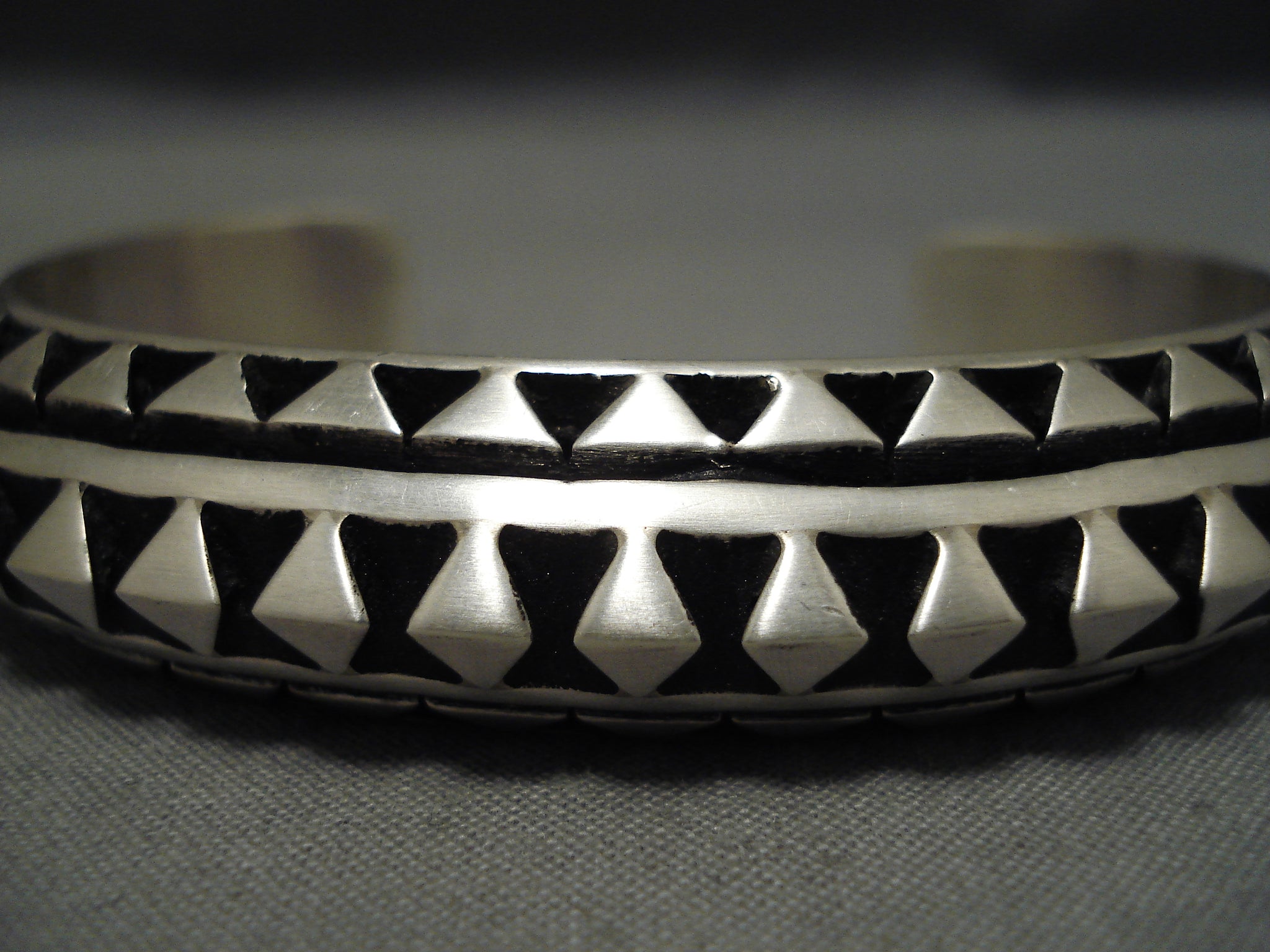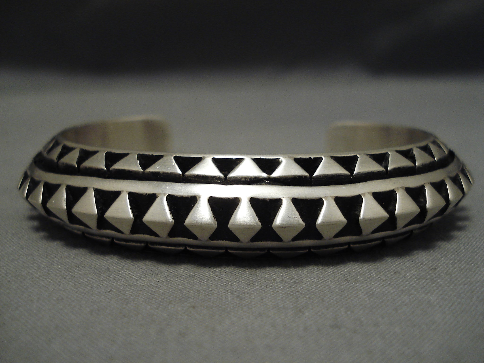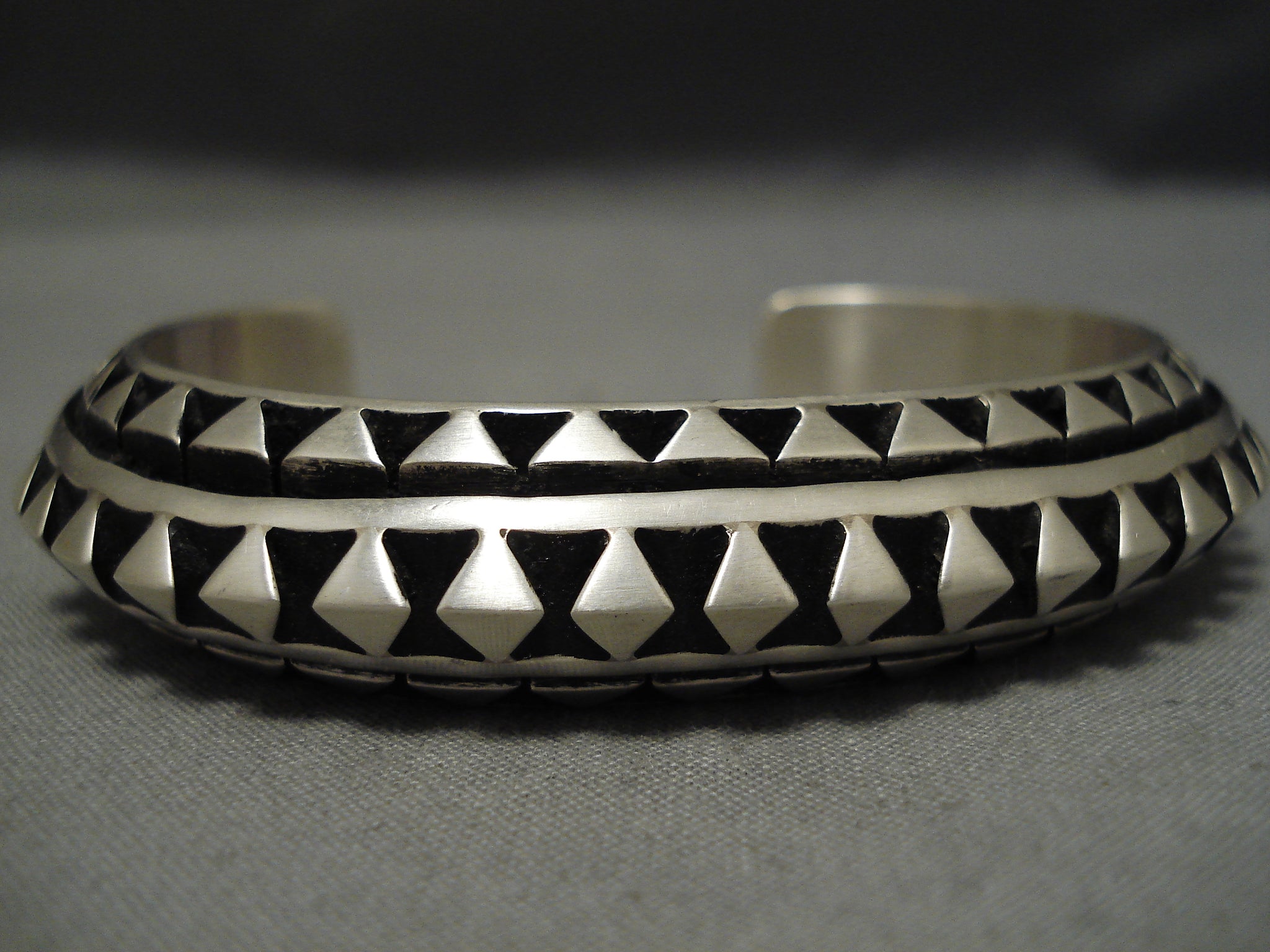Important Layered Native American Navajo Leander Bahe Sterling Silver Bracelet